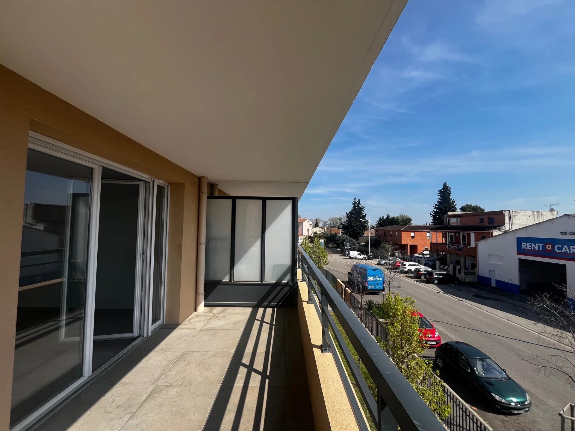 A louer, Arles, programme neuf résidence Couleurs du Sud, Chemin des moines en zone Nord. Appartement de 58 m2, 3 pièces au 2eme étage avec ascenseur. Il se compose d'un hall d'entrée, séjour avec cuisine équipée et aménagée donnant sur une terrasse, deux chambres, une salle de bain et un wc séparé, et une buanderie Place de parking réservé dans la résidence sécurisée. Location soumise à la loi PINEL