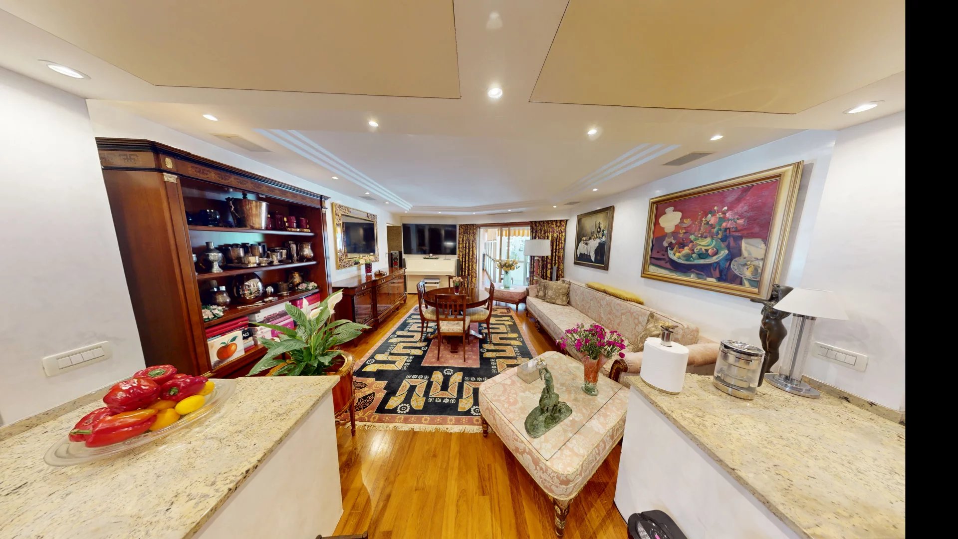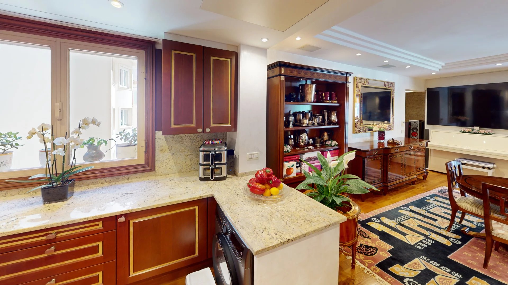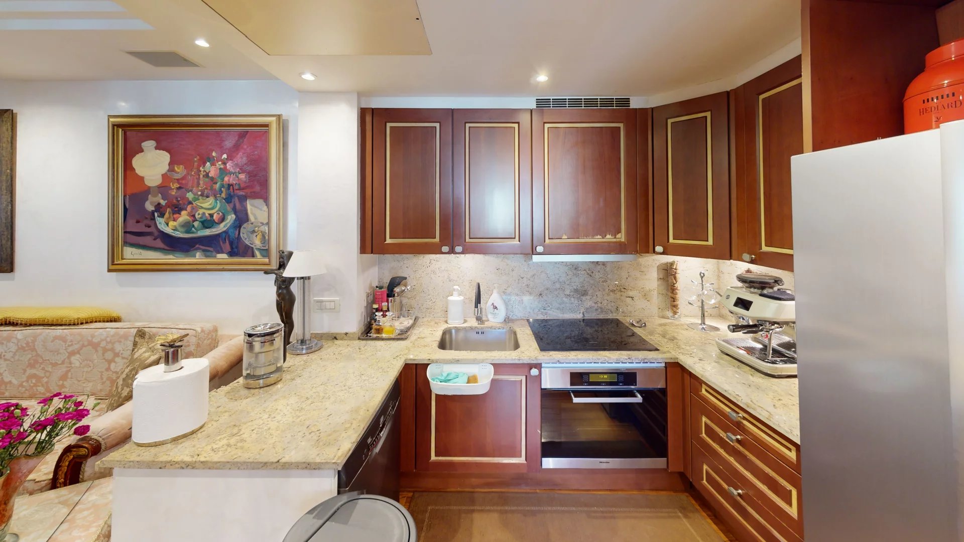 Le bien traversant à la fois coté Beausoleil, ainsi que Mocano dispose d'un grand séjour composé d'une cuisine américaine traversant celui-ci donnant sur une terrasse d'angle lumineuse.