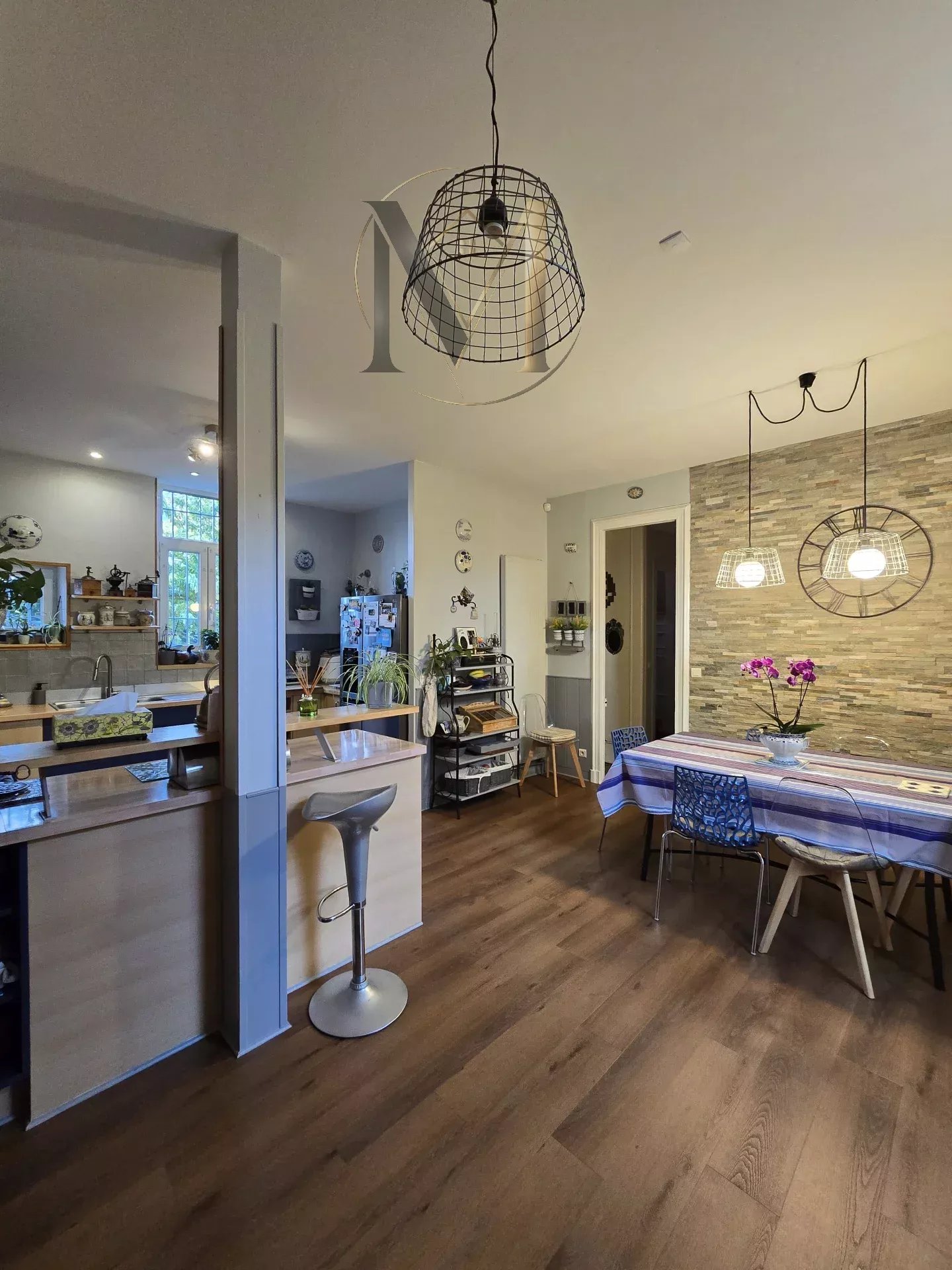 Située sur un parc arboré et piscinable de 1360 m2, elle dispose également d'un garage double et d'une borne de recharge pour véhicules électriques.