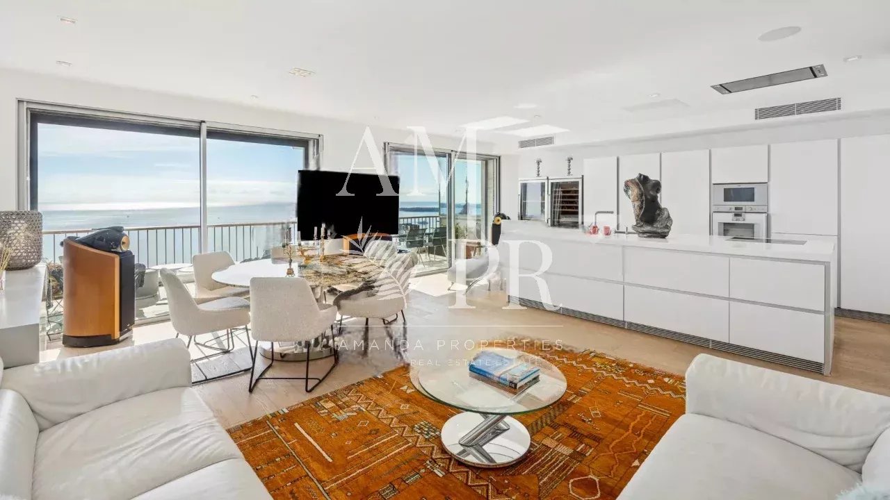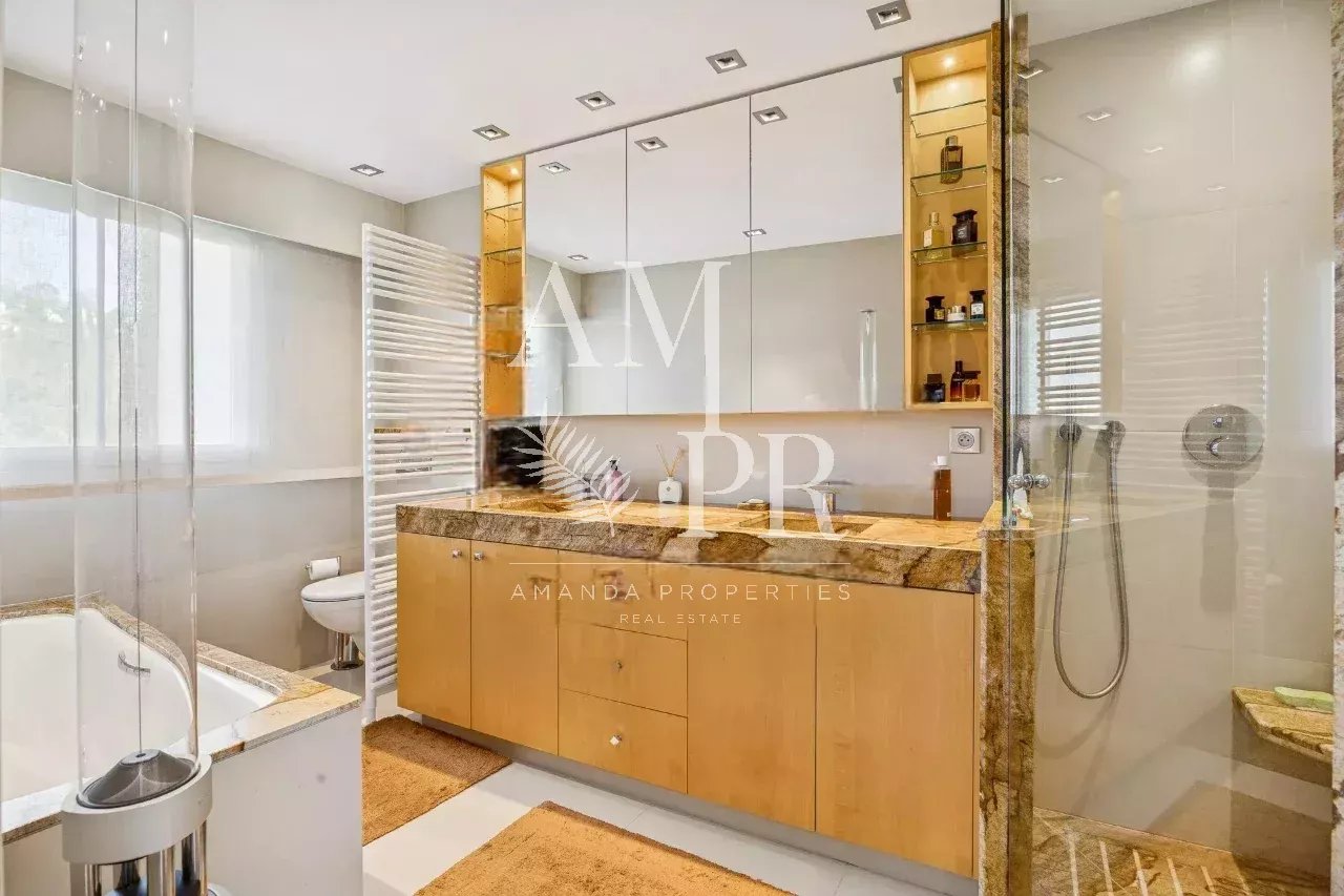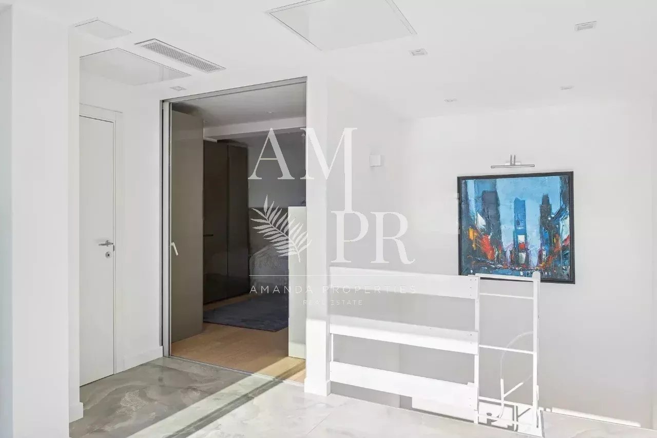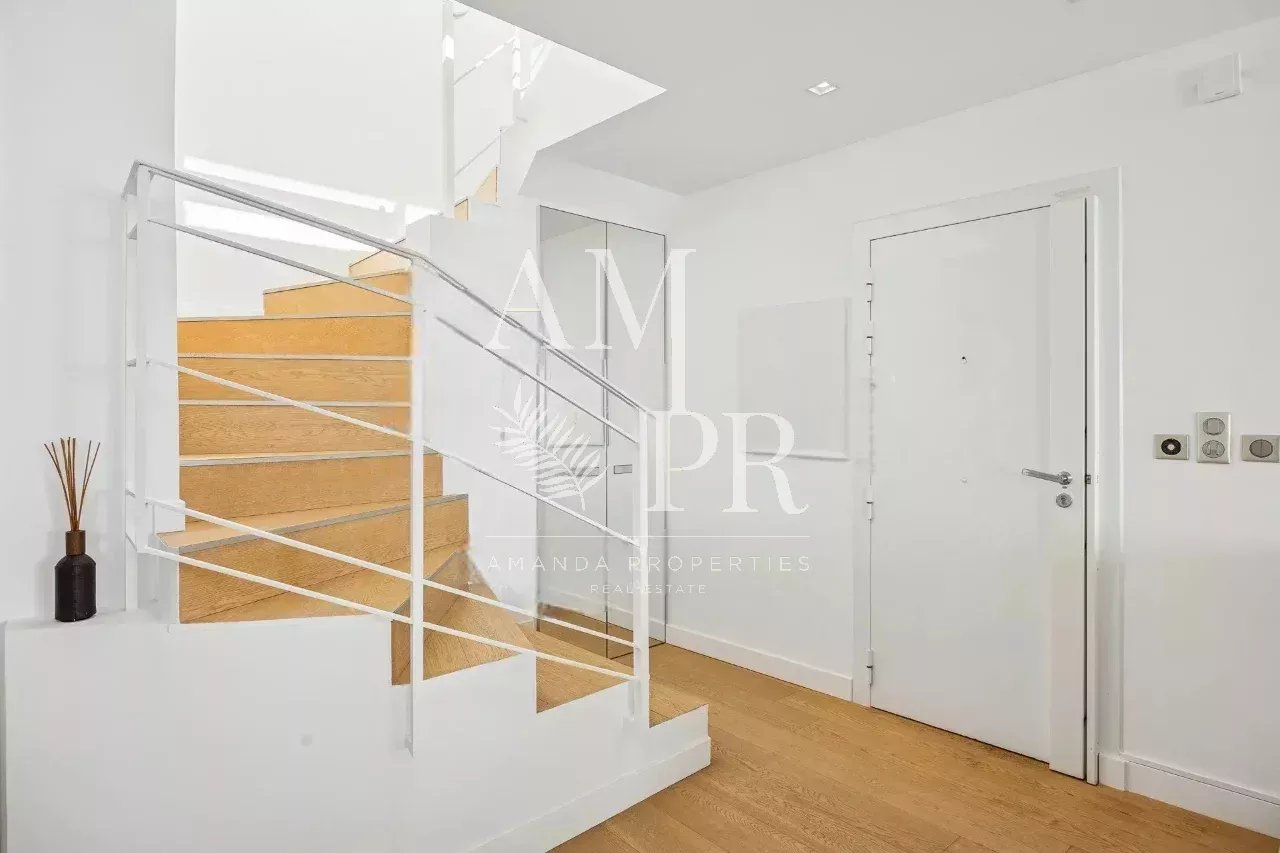 Découvrez ce somptueux appartement en duplex situé dans le quartier recherché de Californie à Cannes, au sein d'une résidence de grand standing. Équipée d'un service de gardien ainsi que d'un concierge, cette propriété offre également des espaces communs raffinés tels qu'un parc et une piscine, sans oublier un accès direct à un golf à proximité. Pour votre confort et sécurité, une navette est à votre disposition pour faciliter vos déplacements. Perché au 10ème et 11ème étage, cet appartement en excellent état se distingue par son salon lumineux et sa cuisine ouverte moderne au design épuré, le tout prolongé par une terrasse offrant une vue mer panoramique à couper le souffle. La première étage comprend une grande chambre ainsi qu'une chambre- bureau, pouvant être transformé en chambre supplémentaire si désiré. À l'étage supérieur, vous découvrirez la suite principale, véritable havre de paix, dotée d'une salle de bains privative. Cette chambre s’ouvre sur une terrasse privée en bois, où vous pourrez vous détendre dans un jacuzzi en toute intimité. Cette propriété d'exception comprend également une buanderie, une cave et un garage. Avec ses prestations haut de gamme, son parquet élégant et sa luminosité omniprésente, cet appartement moderne et contemporain se démarque par son absence de vis-à-vis, garantissant ainsi un cadre de vie paisible et luxueux. Ne manquez pas cette opportunité unique d'acquérir un bien immobilier d'exception à Cannes.