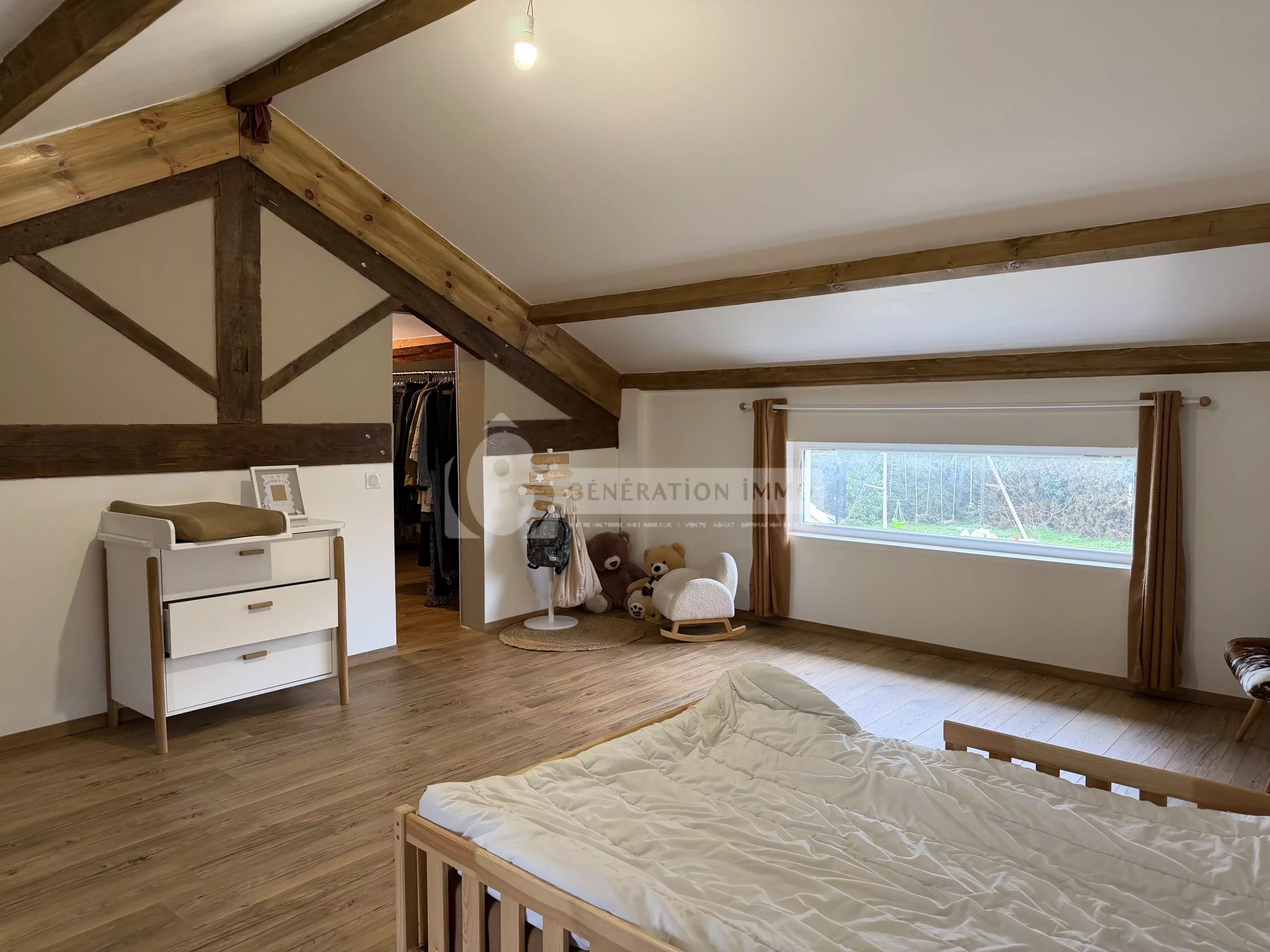 Le jardin arboré à l’abri des regards doit être aménagé. Cette maison est un bien rare qui séduira par l'espace de vie, de tranquillité et de prestations de qualité, tout en restant proche des commodités du village. À visiter sans tarder.