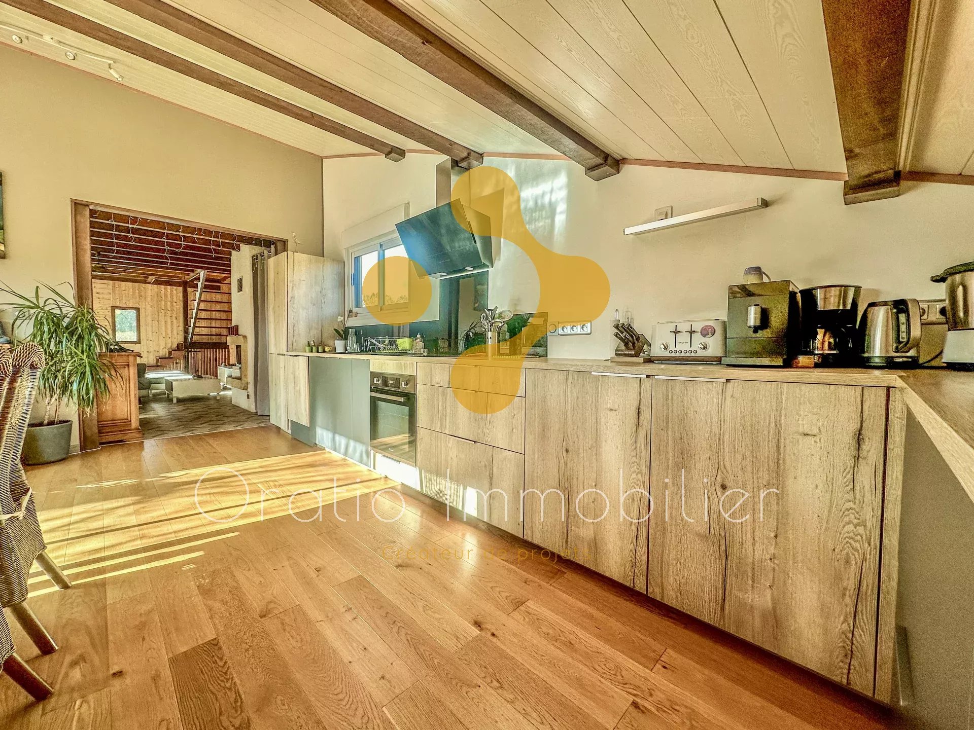 -Une pièce de vie lumineuse avec cuisine ouverte, prolongée par l’extérieur;