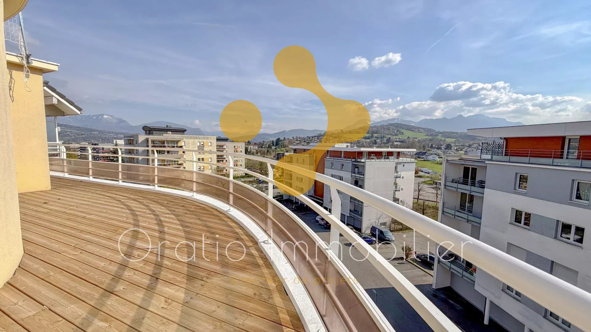 Situé dans une résidence des années 2001, cet appartement T4 développe 108 m² de surface totale, dont 95 m² habitables, et offre un cadre de vie rare avec une vue panoramique à 180° sur les massifs alpins.