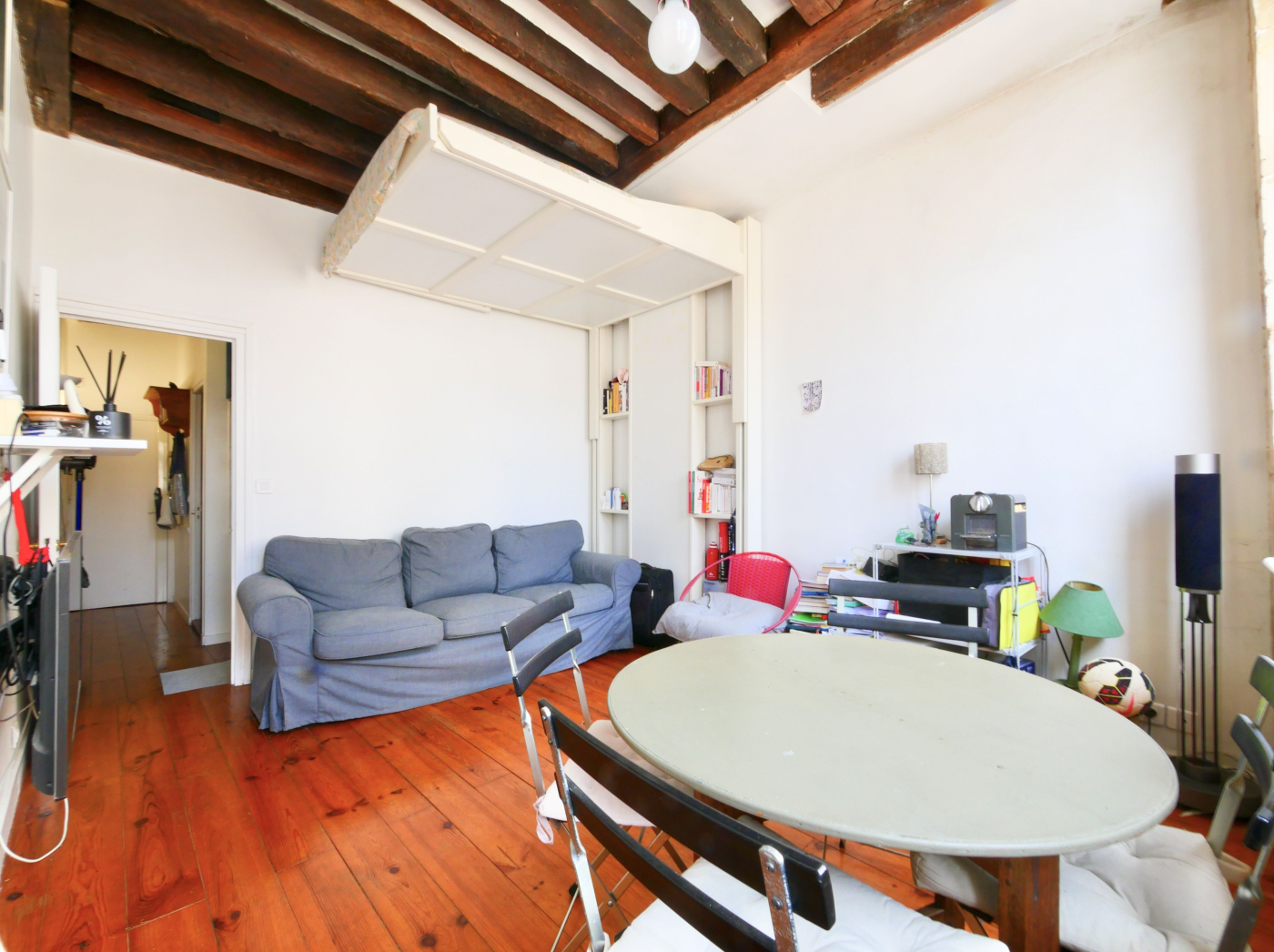 Au cinquième étage avec ascenseur dans un immeuble XVII ème en pierre de taille et seul à l'étage, se trouve un appartement, à deux pas de la Seine.