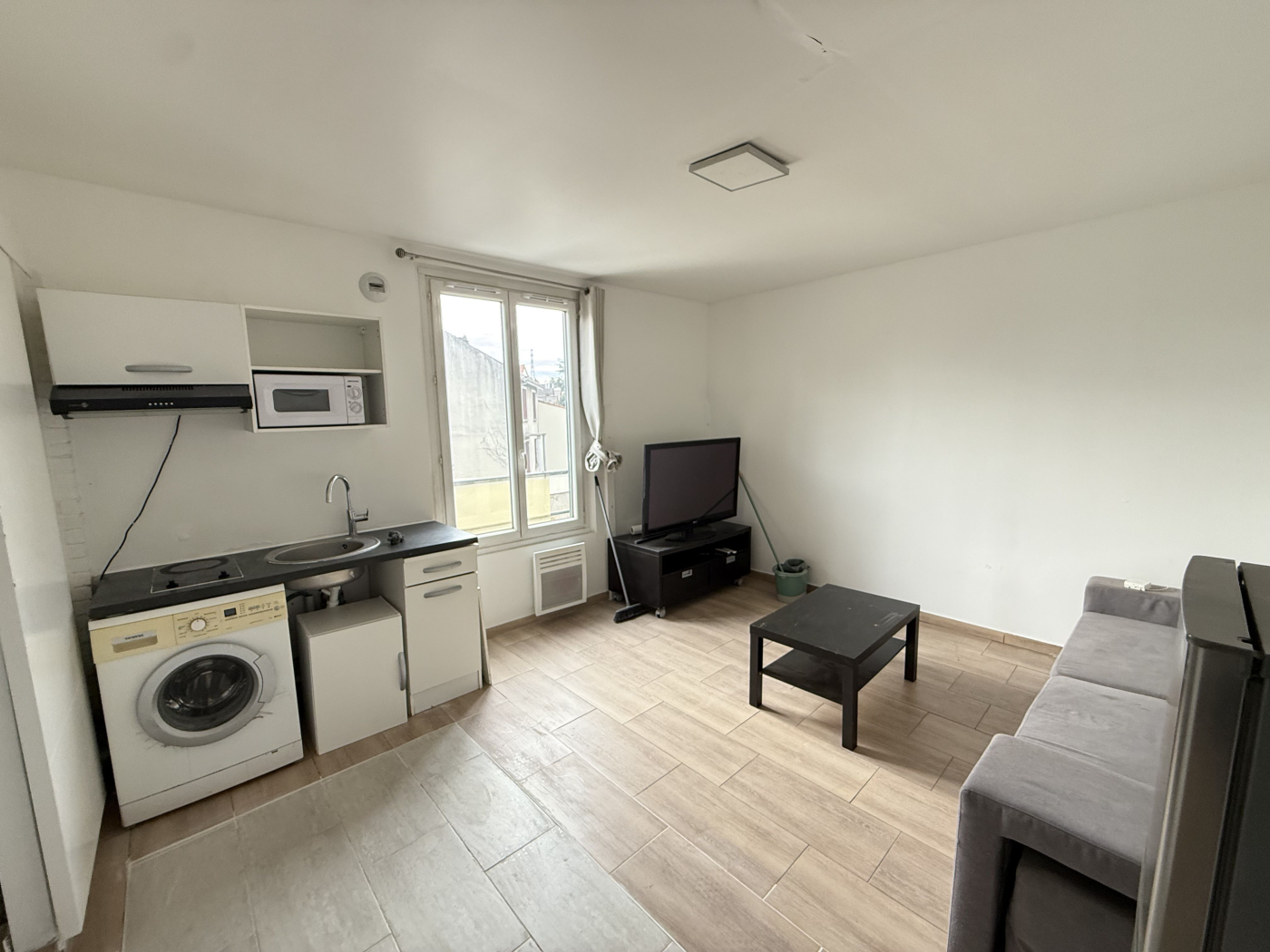 Appartement deux pièces composé d'une pièce principale, avec un séjour, une salle de douche attenante , un coin cuisine, une chambre. porte blindée, petite copropriété calme, au 1 er étage donnat sur une cour calme