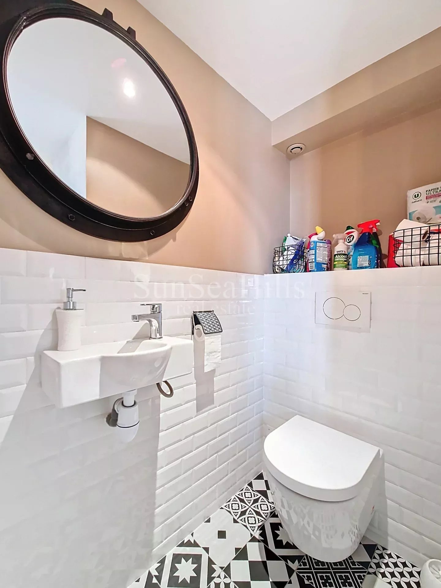 Une salle d’eau moderne complète ce niveau avec douche, lavabo, lave-mains, WC et sèche serviettes.