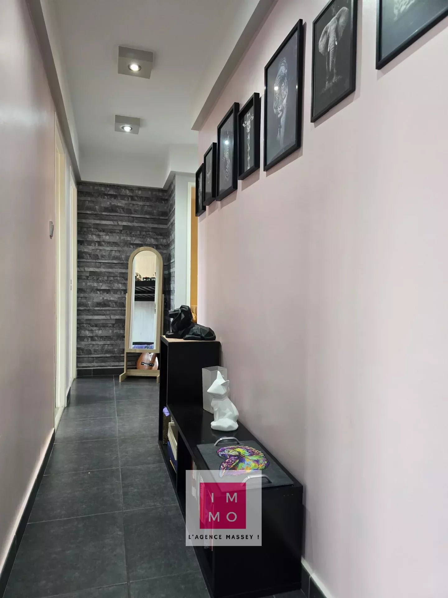 La porte d'entrée s'ouvre sur un espace d'accueil donnant accès aux espaces de jour :