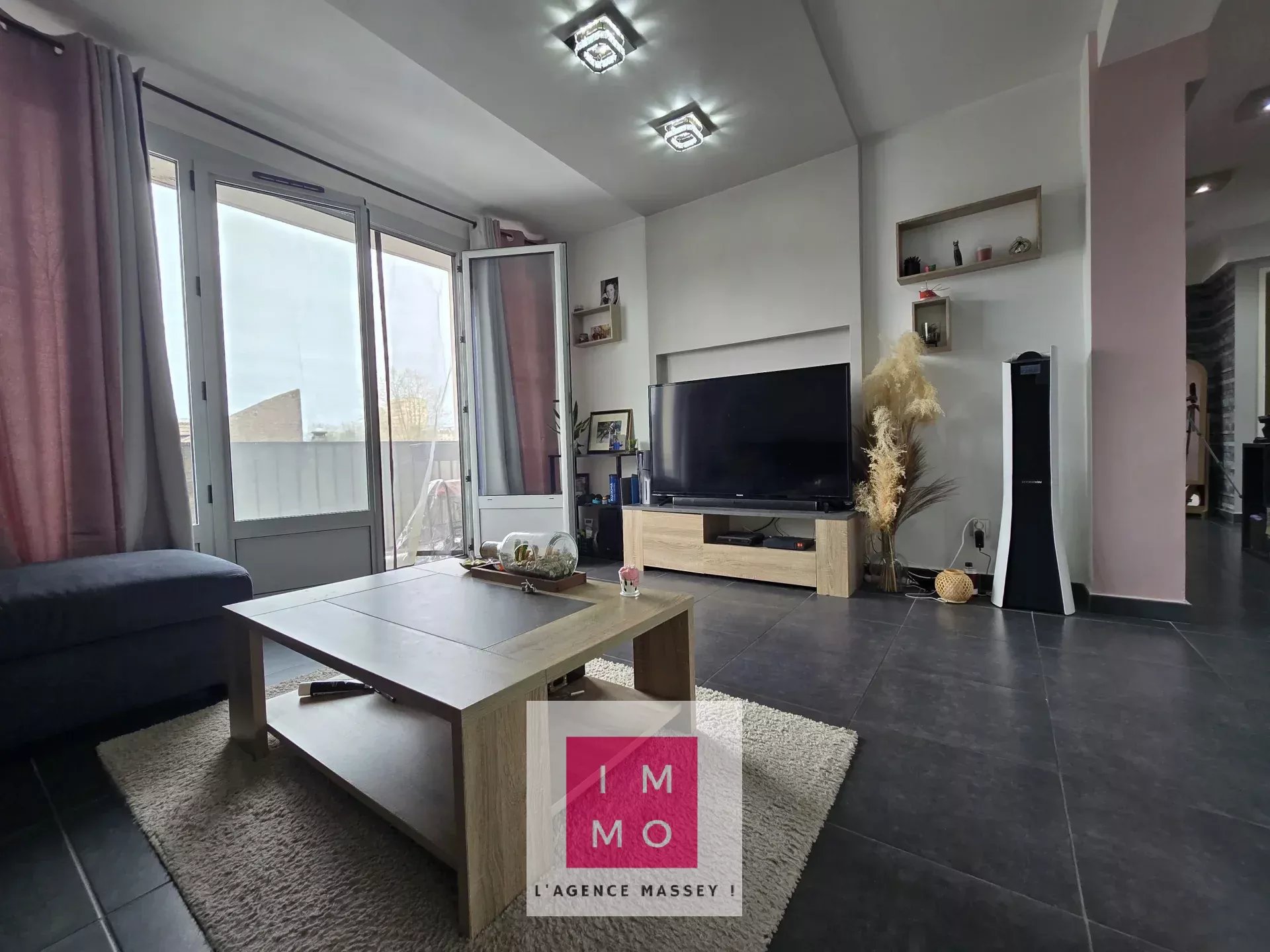 - un séjour très lumineux donnant sur un balcon : pièce bien éclairée par une large ouverture.