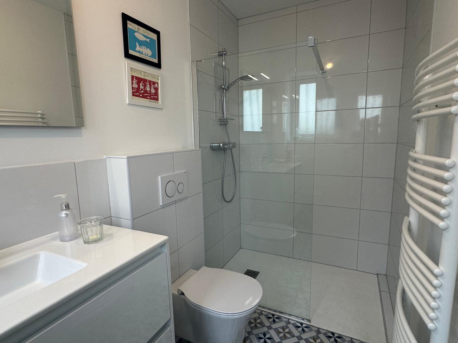 Le rez-de-chaussée propose une véritable suite parentale de plain-pied, composée d'une chambre confortable avec sa salle d'eau privative (douche) et son WC indépendant, offrant intimité et praticité au quotidien. Un second WC est également prévu pour les invités. Les pièces d'eau de ce niveau, comme celles de l'étage, sont récentes et apportent une touche actuelle et soignée à l'ensemble.