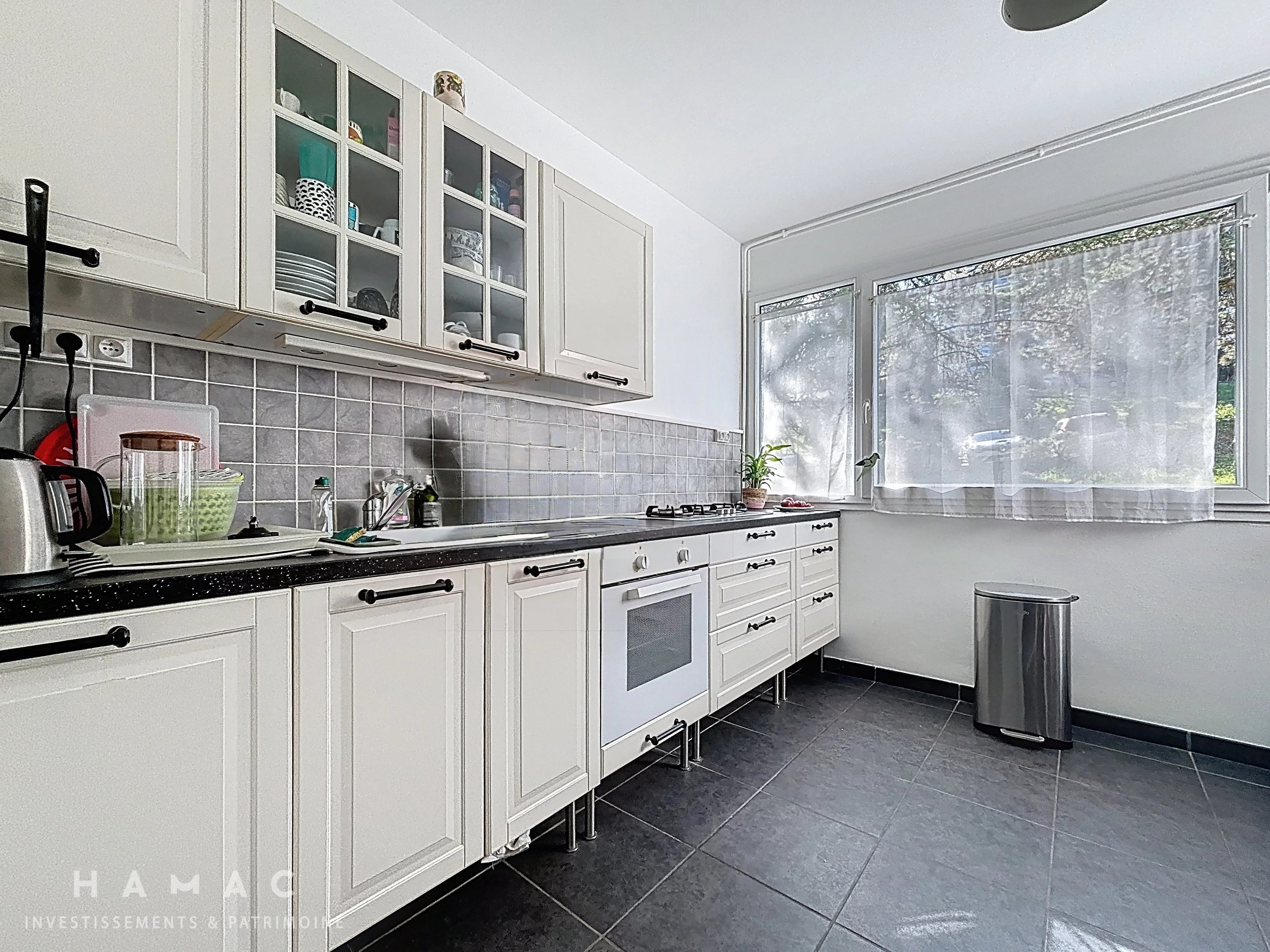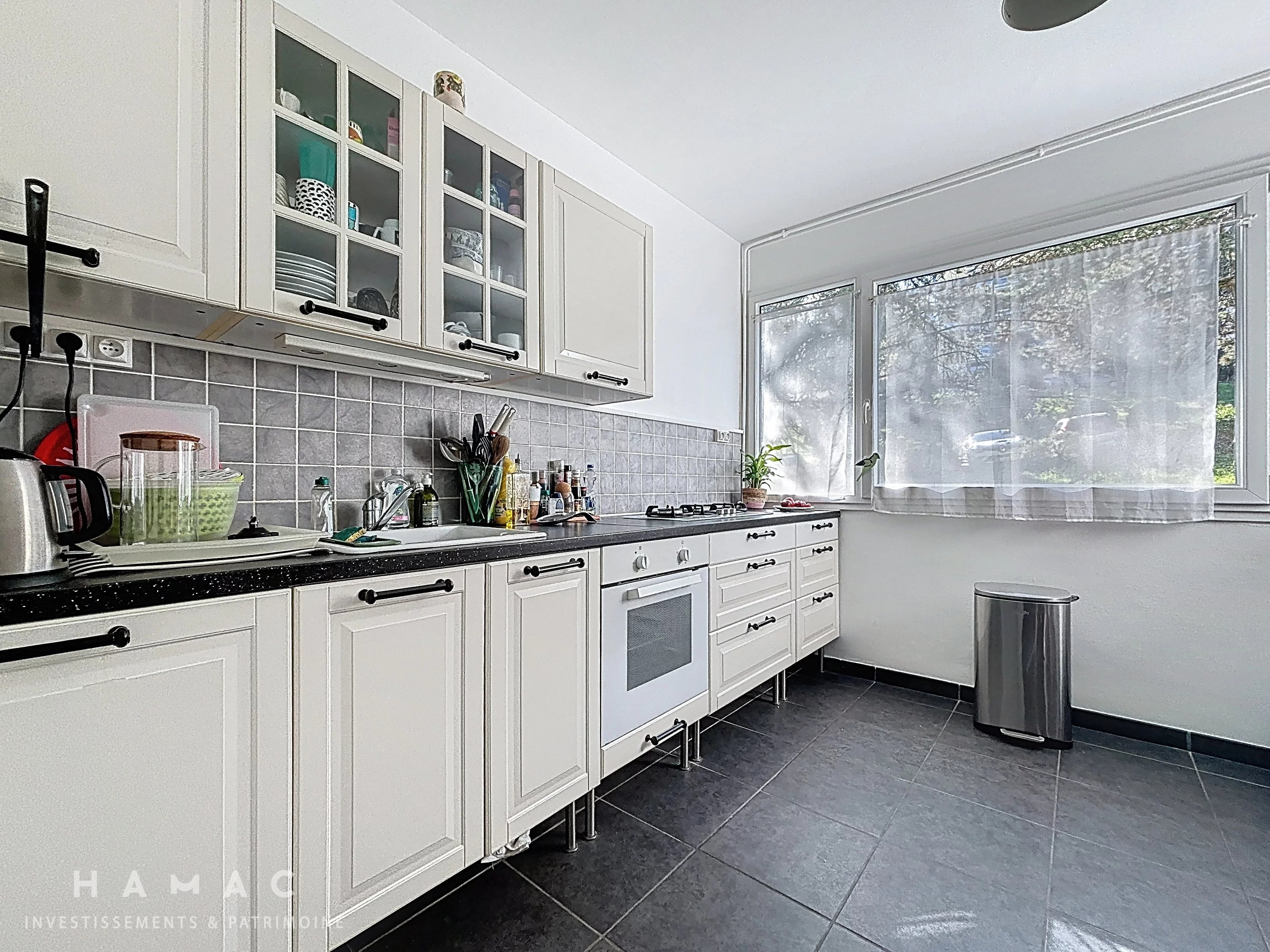 En excellent état général, cet appartement est vendu avec une cave en sous-sol et une place de stationnement.