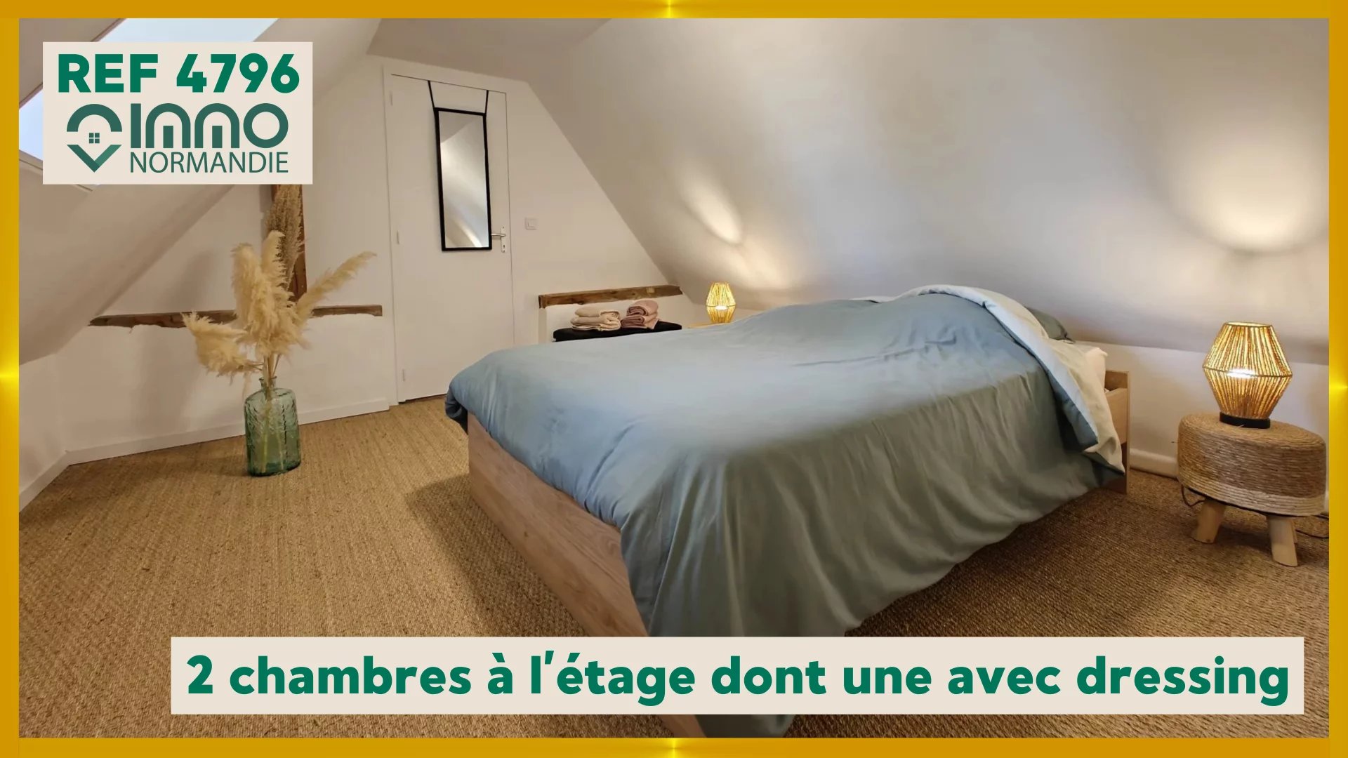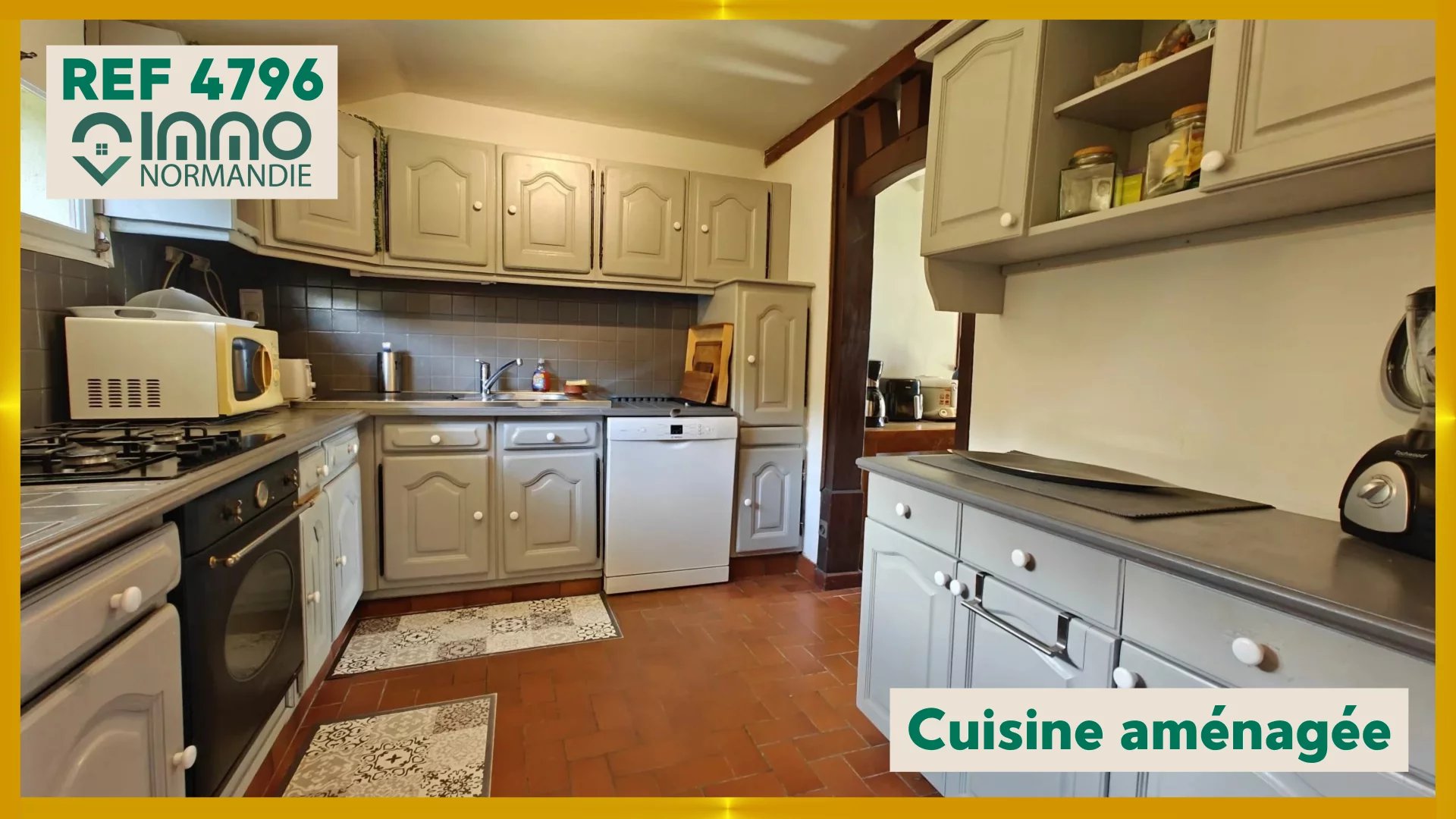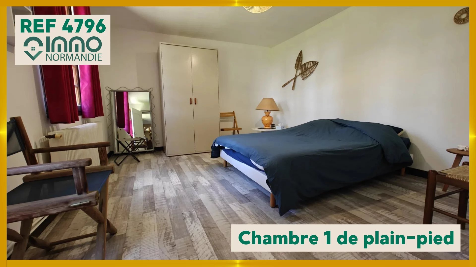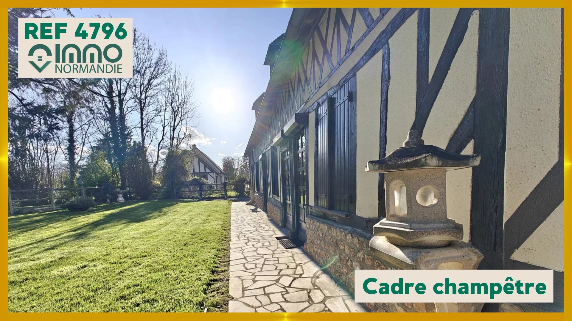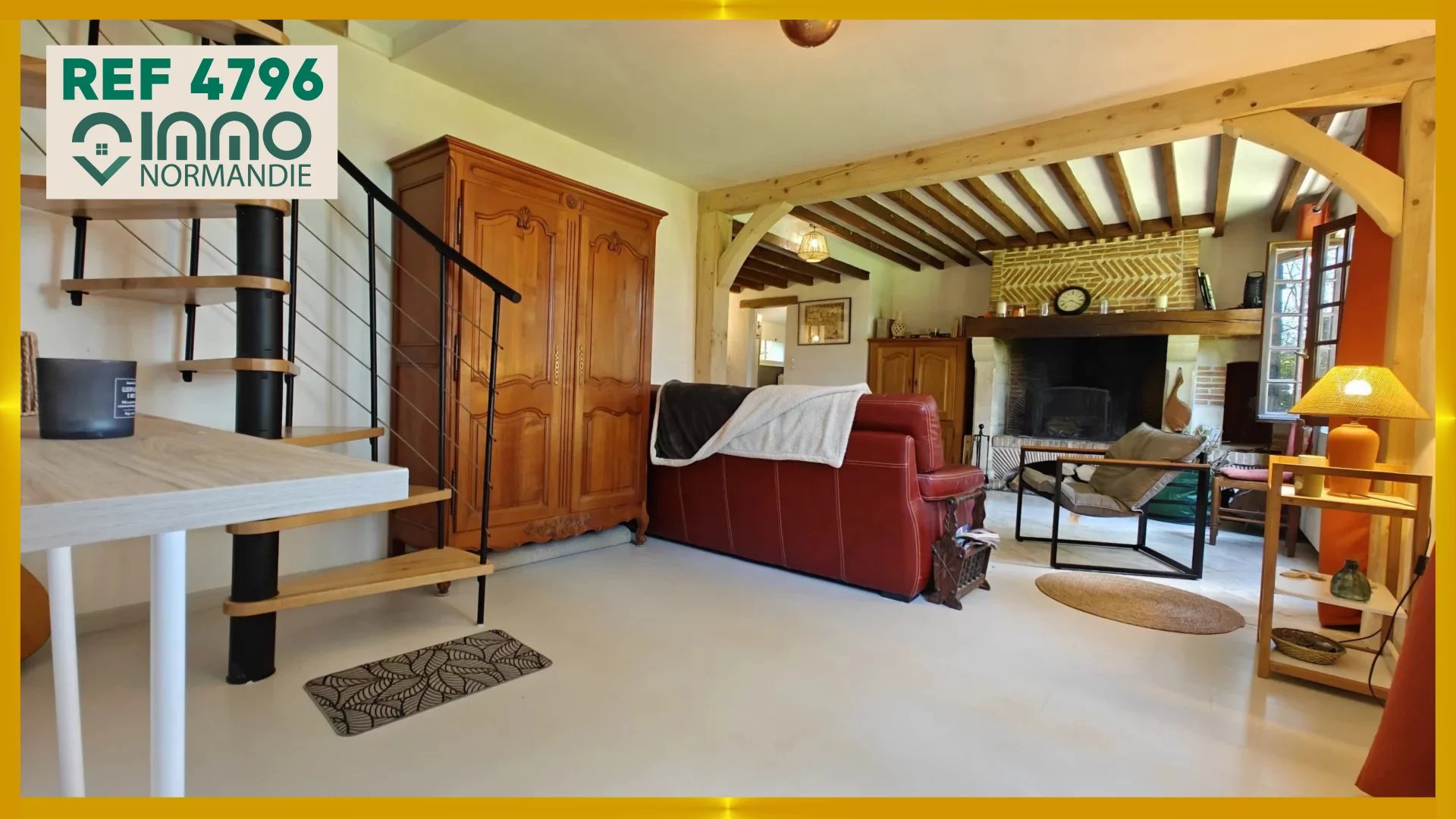 Belle maison normande vivable de plain-pied dans un secteur calme au cadre champêtre. Venez découvrir une entrée, cuisine aménagée, grand salon/séjour avec cheminée, 2 chambres, salle de bains et WC indépendant. A l'étage, palier desservant 2 chambres dont une avec dressing. 2 atelier. Terrain de 1.700m² avec dépendance. Chauffage gaz propane. Fosse septique. Simple vitrage bois.