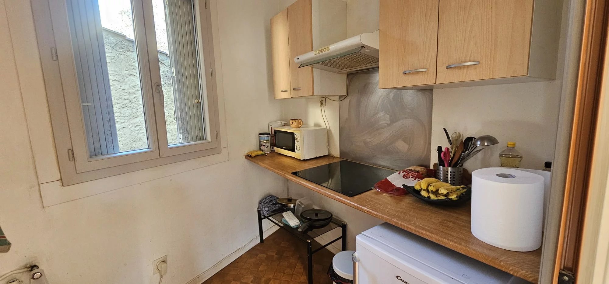 Ce bien comprend une chambre confortable, un séjour convivial, une cuisine ouverte et une salle d'eau moderne. Les espaces sont optimisés pour garantir praticité et confort au quotidien, tandis qu'un couloir dessert harmonieusement l'ensemble de l'appartement.
