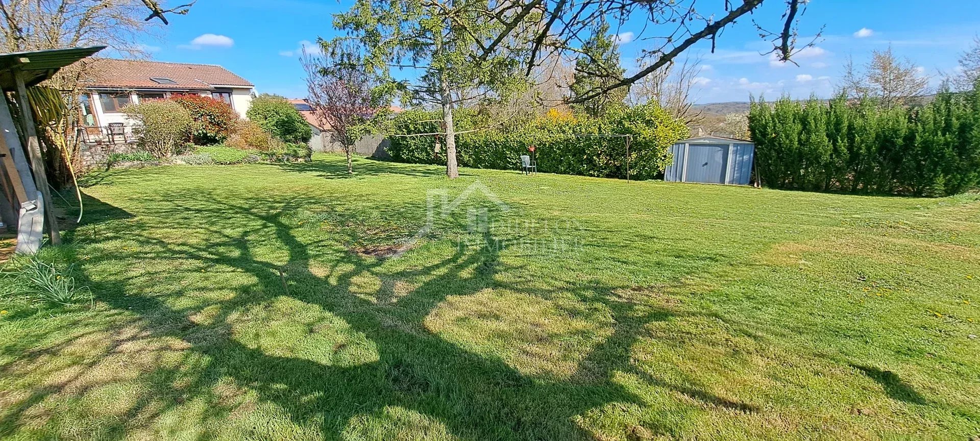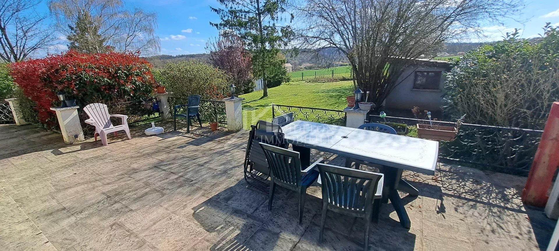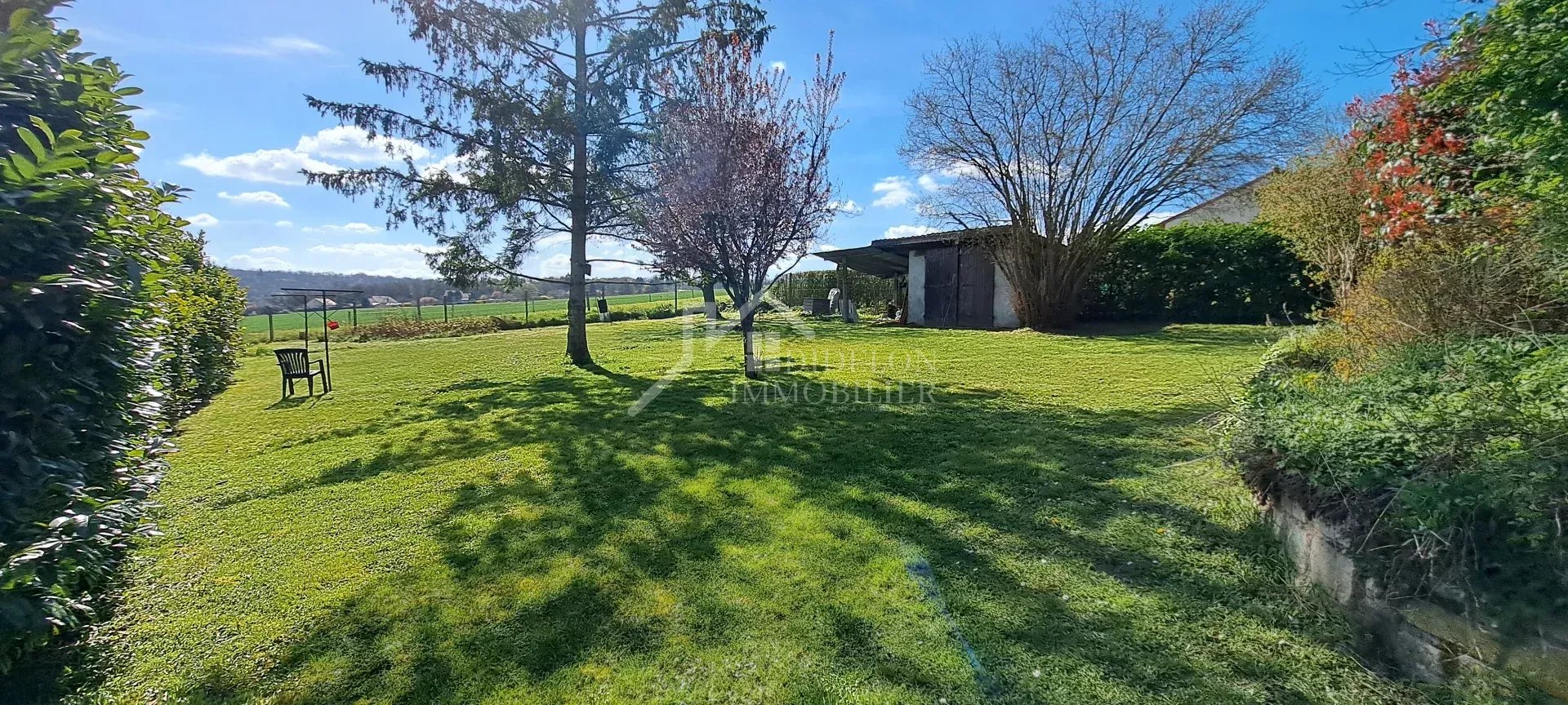 Beau pavillon sur sous-sol complet, érigé sur un beau et grand terrain d'env 1200m² avec vue sur les champs, composé de :
