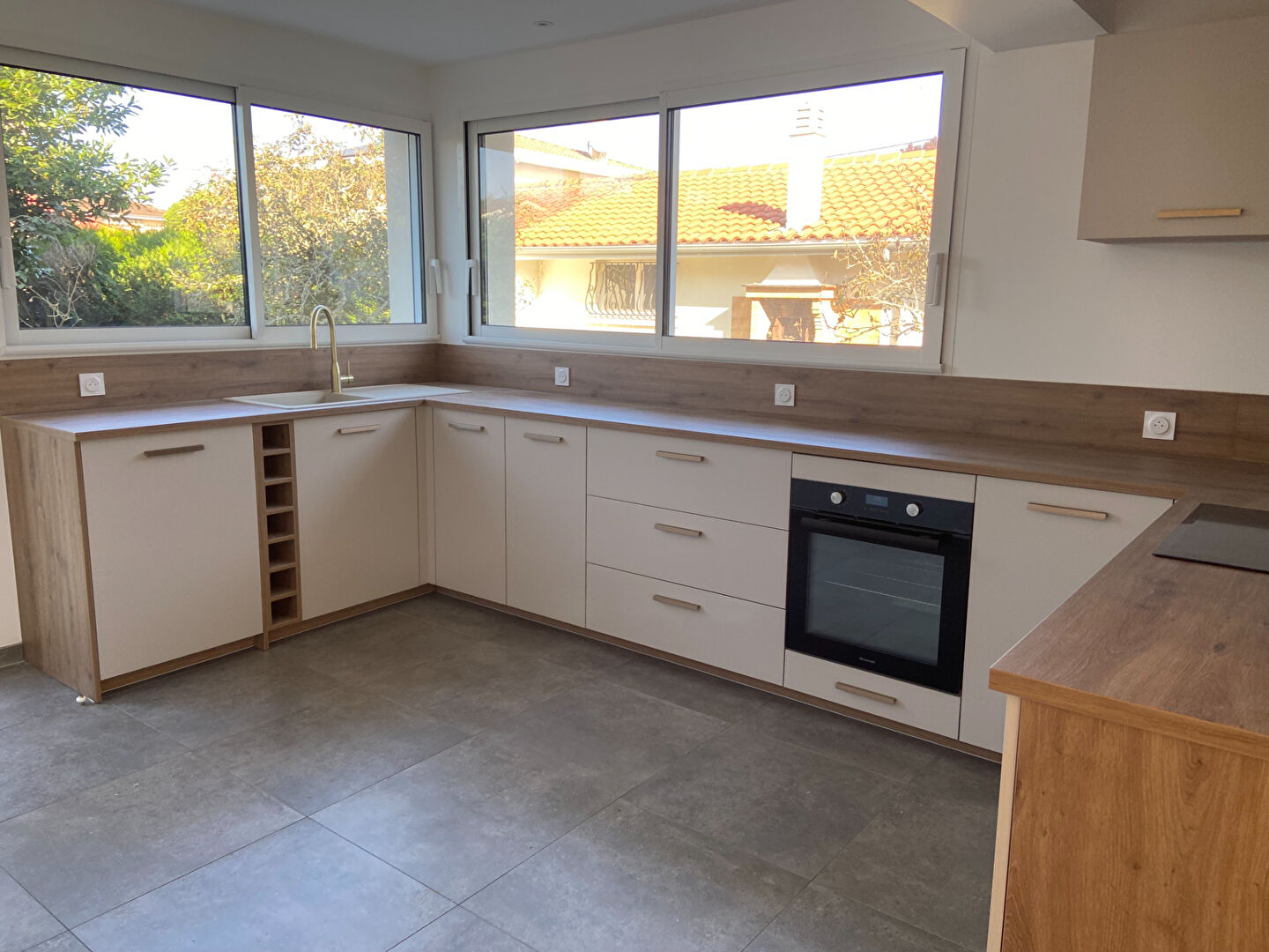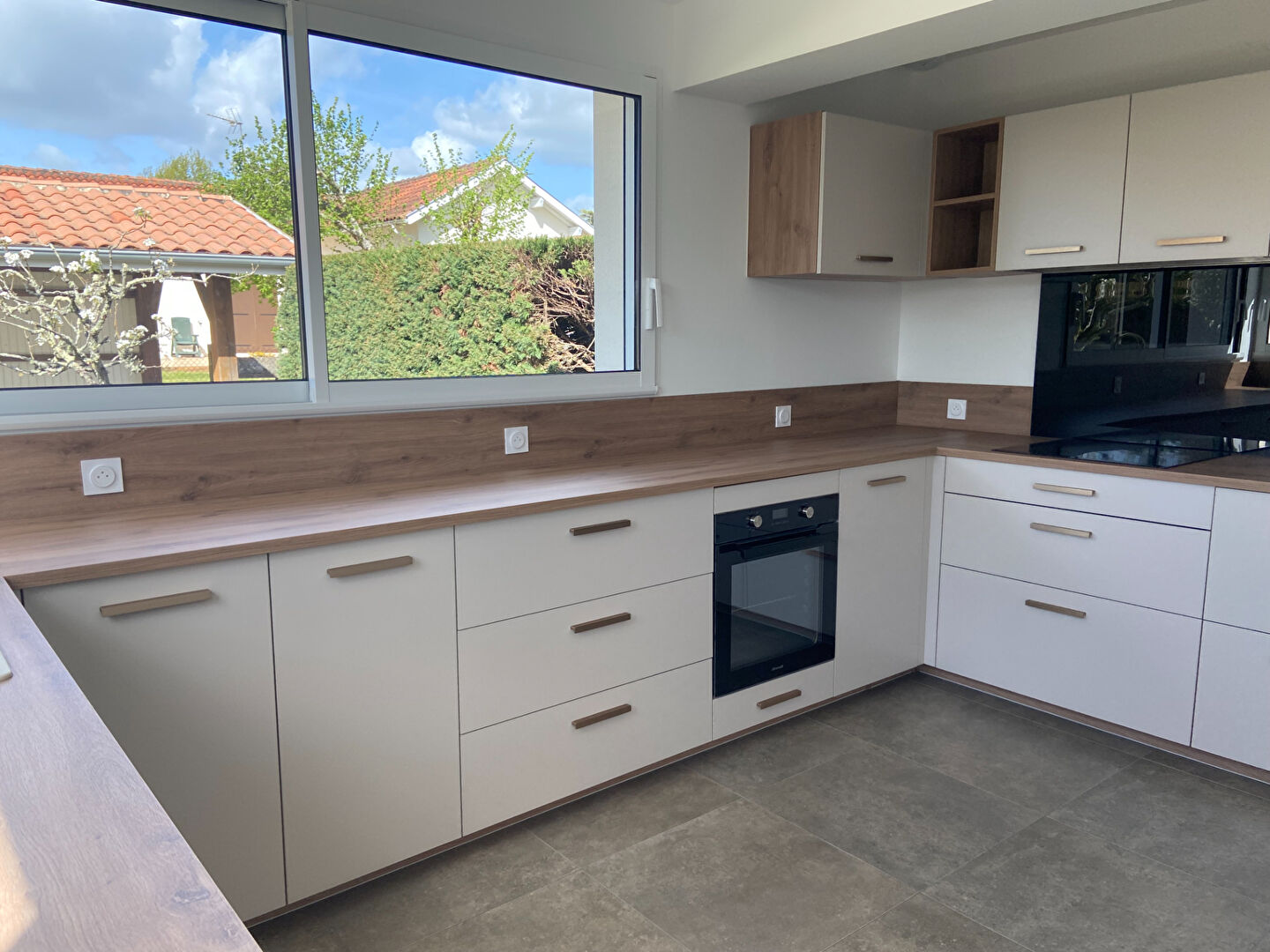 Maison de plain-pied , située à proximité de toutes les commodités de Saint-Paul-lès-Dax. Ce bien se compose de 4 pièces dont 3 chambres avec placard aménagé et 2 salles d'eau. La propriété a entièrement été rénovée avec des matériaux de qualité alliant confort et standing. Avec une triple exposition, toutes les pièces bénéficient d'une belle luminosité. Le terrain clôturé s'étend sur 770 m², avec une terrasse de 20 m² , idéale pour des moments de détente. Un garage fermé et un carport offrent du stationnement. Située dans un quartier calme, la maison est proche des commerces, écoles et transports, facilitant ainsi la vie quotidienne. Cette maison représente un cadre de vie agréable et pratique. Réf M3711 (3.46 % honoraires TTC à la charge de l'acquéreur.)