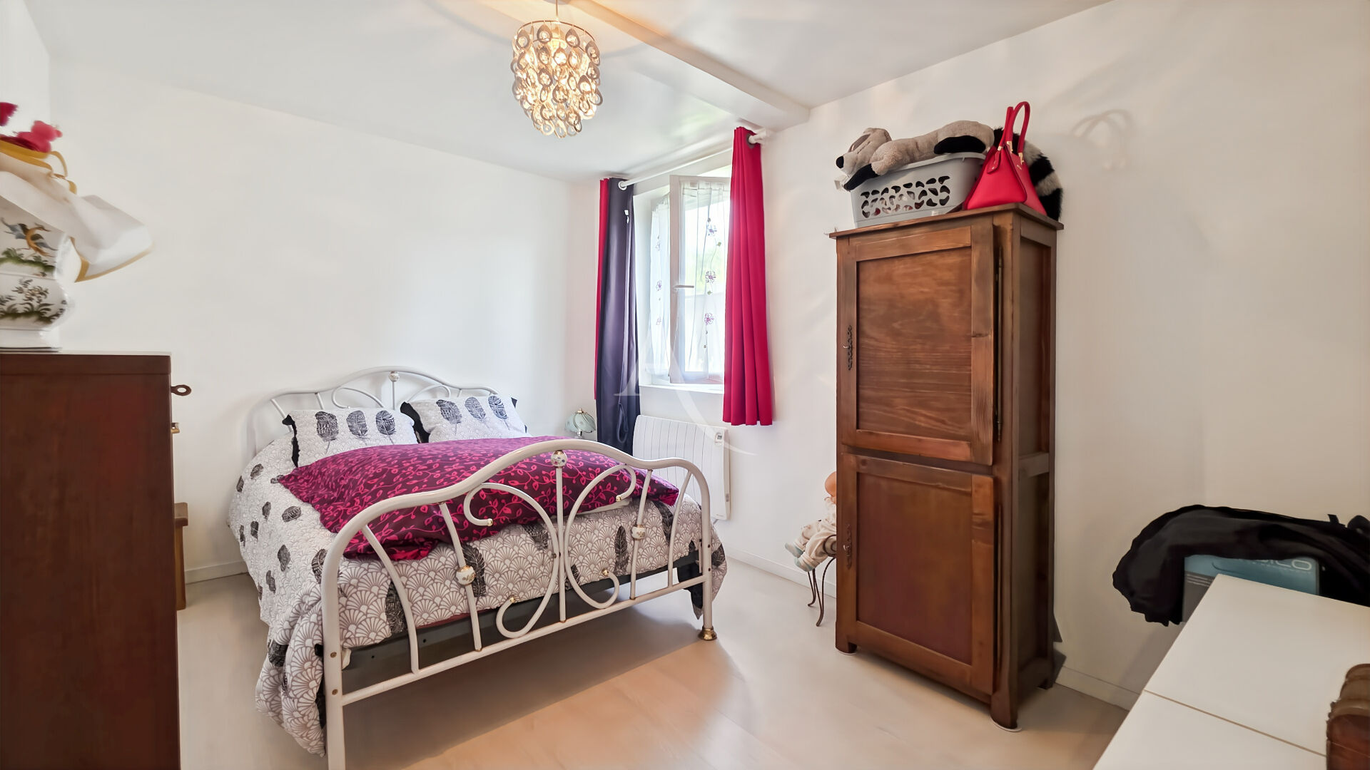 A 5' de Gisors dans bourg avec commerces, écoles et bibliothèque. Maison de plain pied avec cave comprenant une pièce de vie avec cuisine, deux chambres, salle d'eau et WC. Terrain de 409 m². Dépendances.