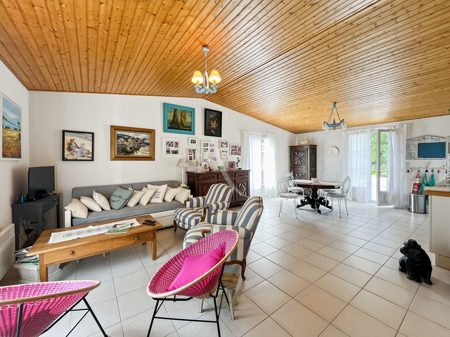 EXCLUSIVITÉ - SAINT JEAN DE MONTS - A VENDRE Charmante maison construite en 2005, idéalement située dans un environnement calme face à la forêt. Vous serez immédiatement séduit par son bel espace de vie lumineux de plus de 40m², composé d'un séjour avec cuisine ouverte bénéficiant d'une triple exposition, offrant une clarté naturelle tout au long de la journée. La maison dispose d'un dégagement desservant deux chambres confortables ainsi qu'une suite parentale. Une salle d'eau et deux WC complètent l'agencement intérieur. A l'extérieur, vous profiterez d'une agréable terrasse donnant sur une grande piscine, avec une vue dégagée sur la forêt, parfaite pour des moments de détente en toute tranquillité. Un garage de 14 m² vient compléter ce bien. Une maison idéale pour profiter du calme et de la nature. A découvrir sans tarder ! Réf : 11066 Pour toute information complémentaire ou visite, contactez-nous au 02.51.58.01.74 ou par mail stjean261@ladresse.com (5.49 % honoraires TTC à la charge de l'acquéreur.)
