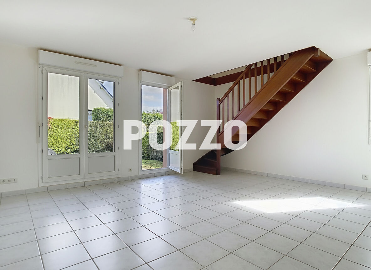 Dans une résidence sécurisée à 2km des commerces et gare de PONTORSON Maison de type T3 avec jardin privatif composée de : Au rez-de-chaussée : Entrée avec placard, cuisine semi-équipée, salon donnant sur terrasse et jardin. A l'étage : 2 belles chambres et une salle de bains, dégagement avec placard. Deux places de stationnements privées. Faisant partie d'une copropriété - eau collective avec décompteur / jardinier / portail électrique avec interphone.