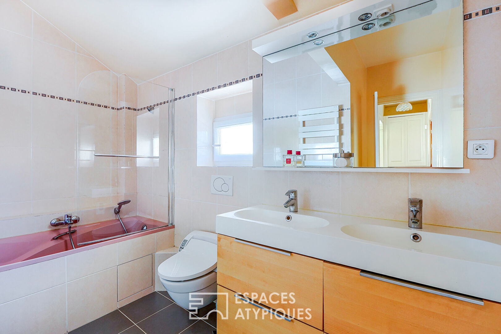 Sur les hauteurs paisibles des Bords de Marne à Créteil, cette maison de maître du XIXe siècle surplombe la marne dans un écrin de verdure confidentiel. Habité depuis plusieurs décennies par une famille attachée à l'art de vivre et à l'authenticité, ce lieu singulier conjugue le charme d'une bâtisse ancienne à des aménagements contemporains choisis avec justesse. Derrière ses murs en pierre, un monde à part s'ouvre, bercé par la lumière et le calme, à seulement quelques pas de Créteil Village. Déployée sur trois niveaux, la maison offre une superficie habitable de 186 m², articulée autour de volumes généreux et de perspectives ouvertes vers l'extérieur. Au rez-de-chaussée, le coeur de la maison bat au rythme d'un espace de vie fluide et lumineux. Le salon, traversé par la lumière naturelle, s'ouvre avec douceur sur une salle à manger propice aux instants partagés. L'ensemble se prolonge harmonieusement vers une terrasse discrète, comme une pièce en plein air, idéale pour les matinées calmes ou les fins de journée prolongées. Au même niveau, une spacieuse cuisine où l'extérieur s'invite à chaque instant, offre une perspective saisissante sur les paysages environnants. Un espace de relaxation singulier, aménagé avec un sauna, vient ponctuer le rez-de-chaussée d'une touche de confort exclusif, véritable parenthèse de douceur au coeur de la maison. Une chambre avec salle d'eau privative ainsi qu'un WC indépendant complètent ce niveau. A l'étage, deux chambres supplémentaires face aux berges de la Marne, un bureau baigné de lumière et une salle de bains structurent un espace nuit propice au calme et à la contemplation. Le rez-de-jardin offre un espace plus intime, presque autonome. Un espace pouvant faire office de bureau ou chambre paisible côtoie une lingerie pratique, donnant un accès direct au jardin, invitant à une vie dedans-dehors en toute simplicité. Ce niveau, pensé comme un lieu à part, pourrait aisément accueillir un adolescent en quête d'indépendance, un atelier d'artiste ou des invités de passage. Une cave à vin complète les espaces annexes, idéals pour les amateurs d'art de vivre ainsi qu'un atelier. Les matériaux nobles, la hauteur sous plafond, les détails architecturaux d'époque et la sérénité ambiante donnent à l'ensemble un caractère hors du temps. Le jardin, en restanque, mêle massifs fleuris et grands arbres protecteurs, formant un cocon végétal rare en zone urbaine. Un extérieur suspendu entre ville et nature. Commerces de proximité, établissements scolaires réputés et transports accessibles à pied complètent un cadre de vie à la fois pratique et préservé. Cette maison, à la personnalité marquée et à l'empreinte patrimoniale forte, séduira les esprits en quête d'un lieu de vie atypique, harmonieux et profondément enraciné dans son histoire. Accès et commodités : Métro ligne 8 : 20 min à pied, 7 min en vélo Commerces de Créteil Village : 3 min à pied Île Sainte-Catherine : accès direct Écoles : 3 min à pied CLASSE ÉNERGIE : D CLASSE CLIMAT : D Montant moyen estimé des dépenses annuelles d'énergie pour un usage standard, indexées au 1er janvier 2021 : entre 2 240 euros et 3 080 euros (abonnement compris). Les informations sur les risques auxquels ce bien est exposé sont disponibles sur le site Géorisques : https://www.georisques.gouv.fr Contact : Angélique PEREZ 06 81 39 98 26 - Agent commercial- Numéro RSAC : 933 421 042 Créteil Angélique Perez (EI) Agent Commercial - Numéro RSAC : 933 421 042 - Créteil.