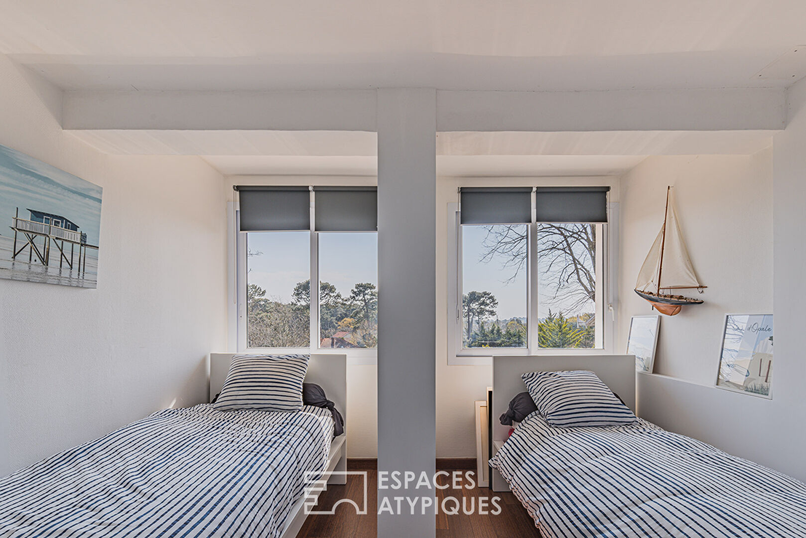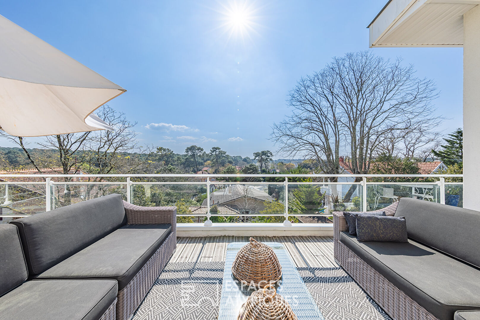 Nichée au coeur du prisé quartier de la Ville d'Hiver, dans une rue paisible et confidentielle, cette maison contemporaine de 195 m² déploie ses volumes avec élégance au sein d'un environnement naturel privilégié, offrant une vue imprenable sur la canopée environnante. Dès l'entrée, le niveau principal révèle un espace de réception aux lignes épurées, baigné de lumière. La cuisine américaine, entièrement aménagée et équipée, s'ouvre harmonieusement sur un salon chaleureux et convivial. L'ensemble, résolument tourné vers l'extérieur, profite d'une exposition plein sud. Une chambre, une salle d'eau, une buanderie ainsi qu'un WC indépendant complètent ce niveau pensé pour un quotidien fluide et confortable. A l'étage, l'espace nuit se compose de deux chambres aux volumes agréables. Chacune bénéficie de son intimité avec, pour l'une, une salle de bains, et pour l'autre, une salle d'eau. Un WC indépendant vient parfaire cet étage. Le niveau inférieur, véritable espace multifonction, accueille deux chambres supplémentaires, une salle d'eau, ainsi qu'une salle de sport avec sa propre salle d'eau, offrant un potentiel rare pour une vie familiale ou pour recevoir en toute indépendance. Un WC complète cet ensemble. Un garage ainsi qu'un monte-personne viennent parfaire les prestations de ce bien singulier, alliant confort moderne et architecture contemporaine dans un cadre naturel d'exception. Un lieu de vie unique, suspendu entre ciel et nature, idéal pour les amateurs de biens rares en quête d'inspiration et de sérénité. CLASSE ENERGIE : D/ CLASSE CLIMAT : D. Montant moyen estimé des dépenses annuelles d'énergie pour un usage standard, établi à partir des prix de l'énergie de l'année 2021 : entre 3 480 euros et 4 750 euros. Contact : Mathilde Antoine 07 50 21 02 14