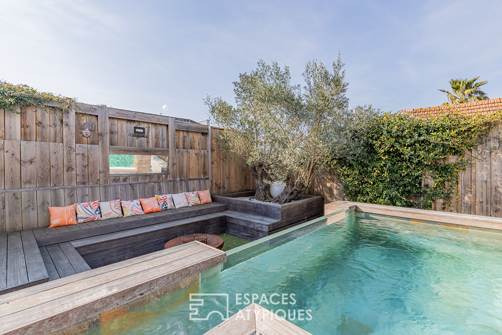 Nichée au coeur du quartier authentique de l'Aiguillon à Arcachon, cette maison édifiée en 2022 conjugue avec subtilité l'élégance contemporaine et le charme des façades arcachonnaises. Déployant 145 m² habitables sur deux niveaux, elle offre un cadre de vie raffiné, pensé pour un confort absolu en résidence principale comme en pied-à-terre familial. Dès l'entrée, les volumes généreux et la luminosité naturelle séduisent. La pièce de vie, aux lignes épurées, révèle une atmosphère contemporaine, sublimée par des matériaux soigneusement sélectionnés et des finitions soignées. La cuisine ouverte, entièrement aménagée et équipée, s'intègre harmonieusement à l'espace dinatoire, créant un lieu de convivialité tourné vers l'extérieur. Les larges ouvertures prolongent les espaces de vie vers une terrasse accueillante, agrémentée d'une piscine chauffée, véritable invitation à la détente. Le rez-de-chaussée accueille une suite parentale avec salle d'eau et hammam, offrant un espace bien-être intimiste, ainsi qu'une buanderie et des WC indépendants, pensés pour le quotidien. A l'étage, trois chambres confortables disposent chacune de leur propre salle d'eau, garantissant à chaque occupant indépendance et sérénité. Un WC indépendant complète ce niveau. A l'extérieur, deux places de stationnement équipées pour la recharge de véhicules électriques viennent parfaire les prestations de ce bien aux excellentes performances énergétiques. A proximité des commerces, du port et des établissements scolaires, cette maison clé en main séduira les familles en quête d'un lieu de vie élégant et fonctionnel, ainsi que les acquéreurs à la recherche d'une résidence secondaire alliant standing, modernité et douceur de vivre sur le Bassin d'Arcachon. CLASSE ENERGIE : A / CLASSE CLIMAT : A. Montant moyen estimé des dépenses annuelles d'énergie pour un usage standard, établi à partir des prix de l'énergie de l'année 2021 : entre 510 euros et 740 euros. Contact : Mathilde Antoine 07 50 21 02 14