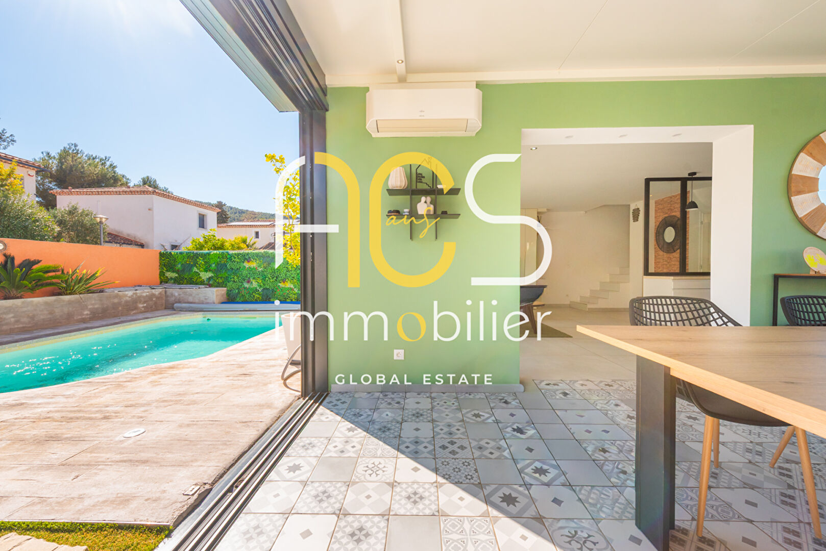 EN EXCLUSIVITE, ACS IMMOBILIER, vos Agences en Conseils et Services Immobilier, vous proposent à la vente, sur la commune de CHATEAUNEUF-LES-MARTIGUES, une maison de Type 4 de 104 m2 sur une parcelle de 202m2 avec piscine et une place de parking privative. Elle est composée d'une pièce à vivre spacieuse et lumineuse d'environ 36 m² avec une cuisine ouverte, le tout donnant sur une belle véranda récente de 17 m². Au Rez-de-chaussée; vous retrouverez également une chambre avec une salle d'eau, un wc et un cellier. L'étage est composé d'une salle de bains ,d'un water-closet, de deux chambres dont une avec dressing. Cette jolie maison présentant de belles prestations et avec de nombreux rangements ne nécessite aucuns travaux! (climatisation réversible, menuiseries en aluminium, volets roulants électriques, Domotique somfy, etc...) Vous pourrez profiter d'une belle piscine. Secteur calme, en impasse. Lotissement de 22 lots, charges annuelles courantes de 378 euros. Situé à 10min de l'aéroport Marseille-Provence et de Marseille à 15min de la gare TGV d'Aix-en-Provence et 25min d'Aix-en-Provence. Prix : 439.900 euros FA.I. Contactez-nous au 04.42.02.76.73 Copropriété de 22 lots - dont 22 lots habitation. Charges annuelles : 378 euros.