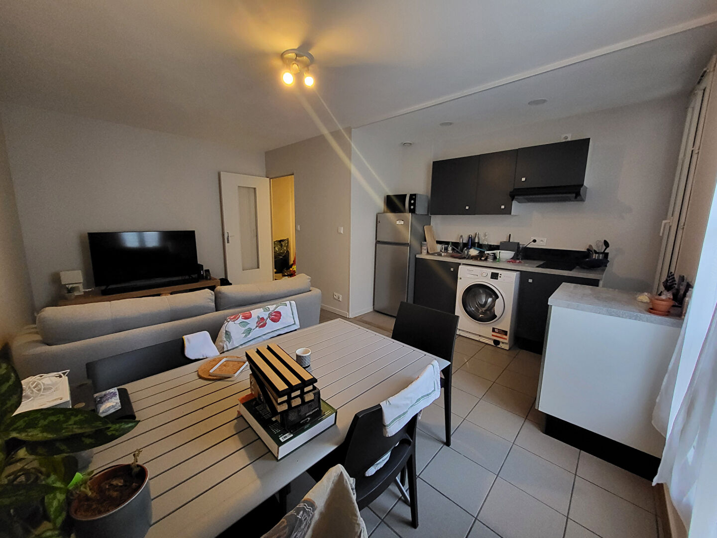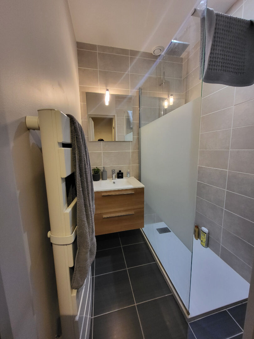 Appartement de type 2 à louer en centre ville, il comprend une entrée, un séjour avec cuisine ouverte, une chambre avec dressing, un débarras une salle d'eau et un WC séparé. Libre fin mars.
