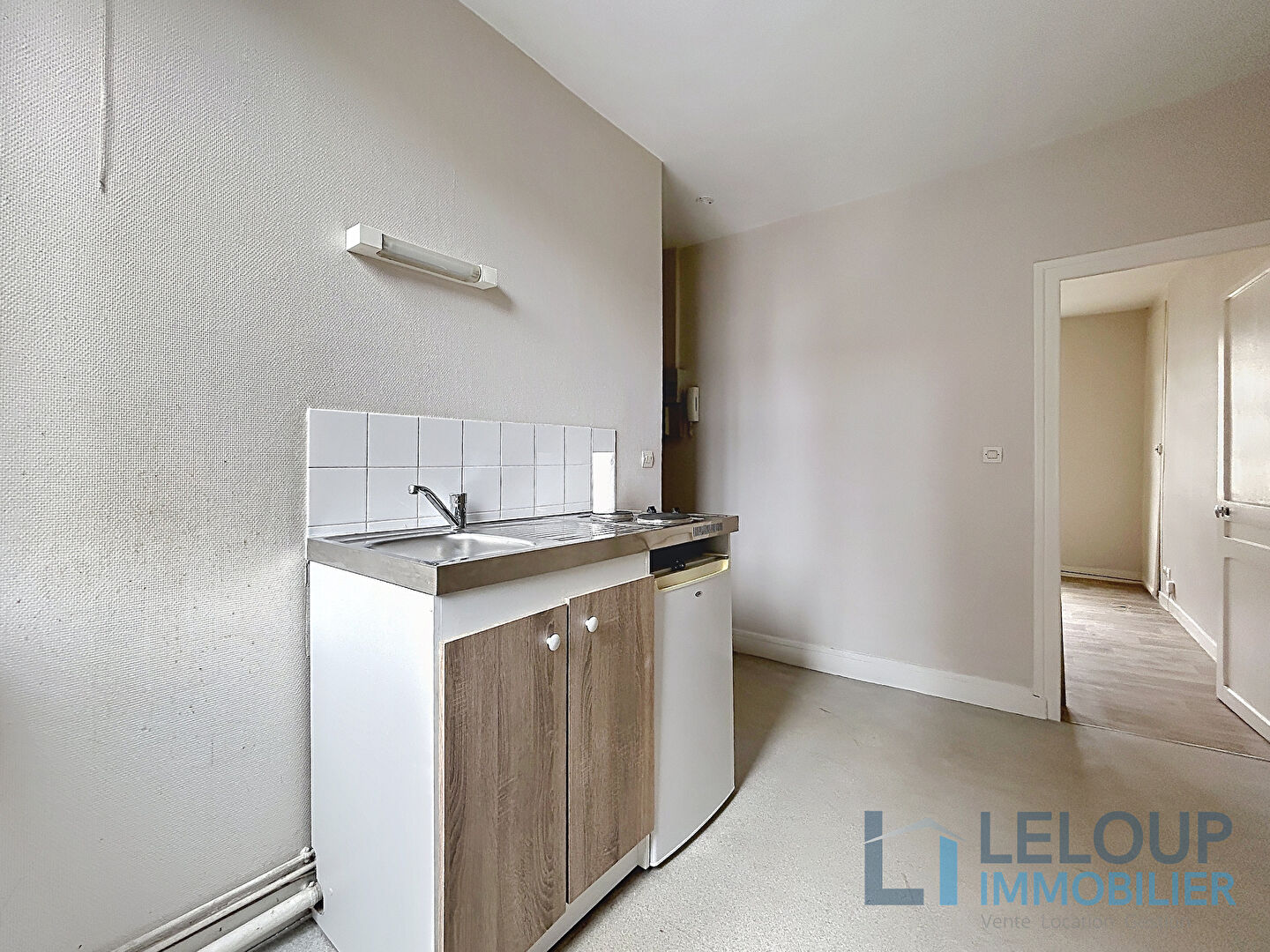 ROUEN - SECTEUR PLACE HENRI IV Appartement F1 au 2ème étage de 29 m² comprenant : une entrée desservant une cuisine séparée avec placard et une kitchenette équipée (plaque de cuisson, meuble évier, réfrigérateur, branchement machine), un séjour avec placard et une salle d'eau (douche, lavabo) avec WC. Chauffage individuel électrique. *Assurance habitation à 8.42 euros / mois.