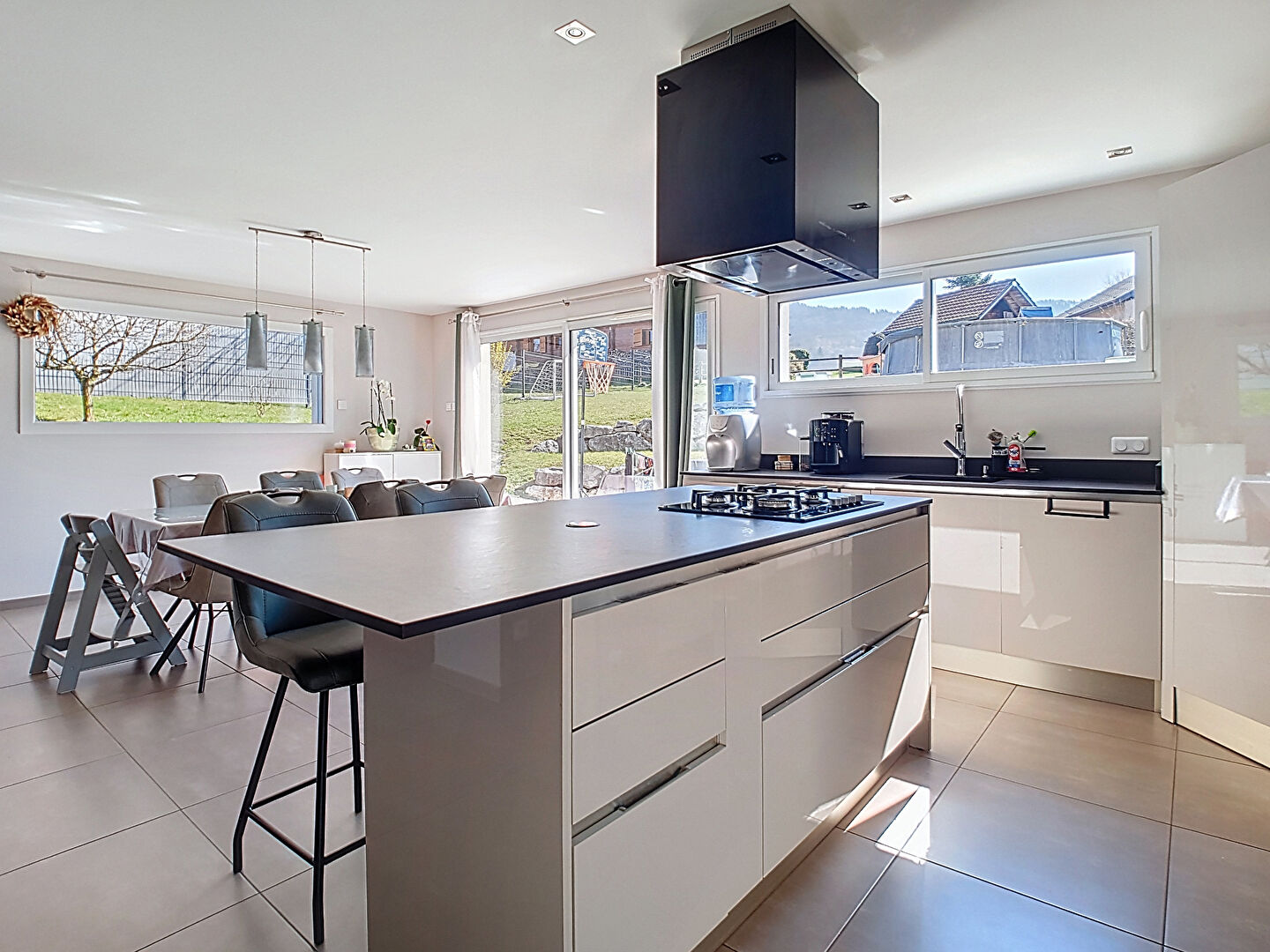 L'agence NESTENN Bons vous invite à découvrir cette magnifique réalisation de 2016 en briques, idéalement exposée Sud-Est sur un terrain de 903 m². Dès l'entrée, équipée de rangements fonctionnels et d'un WC visiteur, vous percevez la qualité des prestations de cette maison familiale. En gravissant quelques marches, vous accédez à une pièce de vie lumineuse de 44,50 m². La cuisine américaine, parfaitement aménagée et équipée d'un cellier intégré, s'ouvre sur un salon-séjour chaleureux bénéficiant d'un chauffage au sol par pompe à chaleur. Cet espace se prolonge naturellement vers l'extérieur grâce à une vaste terrasse de 50 m², protégée par un store banne sur toute sa longueur. Un demi-niveau plus haut, l'intimité est à l'honneur avec une suite parentale complète disposant de son propre dressing et d'une salle d'eau privative avec WC. Enfin, le dernier palier dessert trois chambres confortables et une salle de bains familiale, offrant à chaque membre de la famille son propre cocon. Pour les aspects pratiques, le sous-sol abrite un garage double spacieux avec un coin buanderie dédié. Outre son excellent état général, la maison bénéficie d'équipements modernes : fenêtres PVC double vitrage, volets roulants électriques Somfy, fibre optique et un conduit de cheminée déjà en place pour vos futures soirées au coin du feu. Idéalement située, vous profiterez de la proximité immédiate des écoles (maternelle, élémentaire et collège Jean-Marie Molliet) ainsi que des commerces et services essentiels de Boëge accessibles en quelques minutes. L'essentiel en un coup d'oeil : Surface : 129 m² (6 pièces, 4 chambres). Terrain : 903 m² avec terrasse de 50 m². Énergie : Pompe à chaleur air/eau (chauffage au sol et eau chaude). Annexes : Garage double et stationnement. Environnement : Calme, proche écoles et toutes commodités. Une opportunité rare sur le marché à saisir avec l'agence NESTENN Bons.