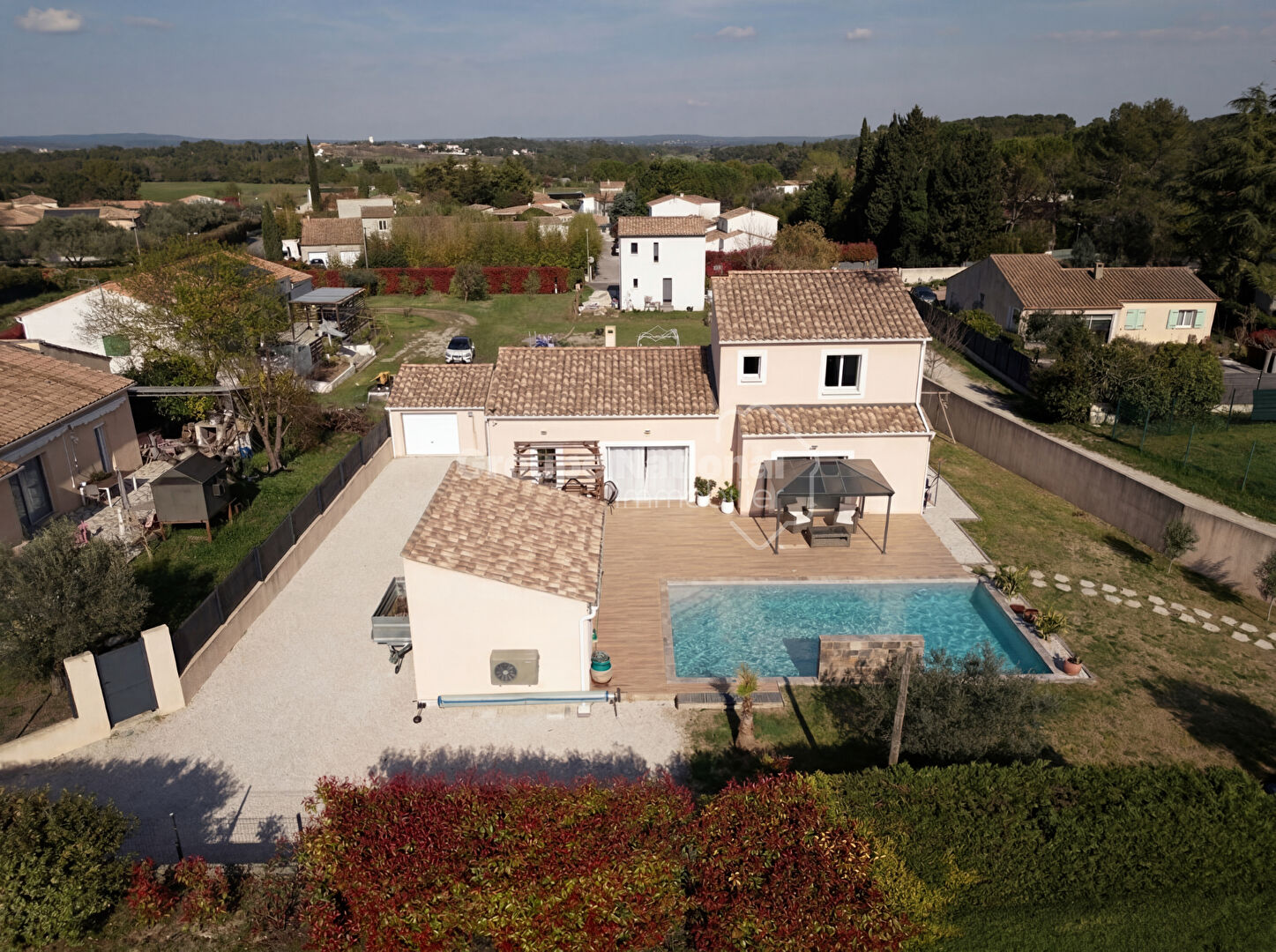EXCLUSIVITÉ à SAINT JEAN DE CORNIES Coup de coeur assuré pour cette superbe villa contemporaine de 167m² environ sur une jolie parcelle de 972 m² dans un environnement privilégié. Dès l'entrée, vous serez séduit par un vaste séjour de 60m² baigné de lumière, ouvert sur l'extérieur. La partie nuit propose 4 chambres, dont 2 de plain-pied, ainsi qu'une superbe suite parentale alliant confort et intimité et un bureau. A l'extérieur, tout a été conçu pour profiter pleinement du climat : grande terrasse, pool house et somptueuse piscine en pierre de Bali, créant un véritable esprit vacances au quotidien. Prestations de qualité, cadre de vie idéal, cette villa réunit tous les critères d'un bien rare sur le secteur.