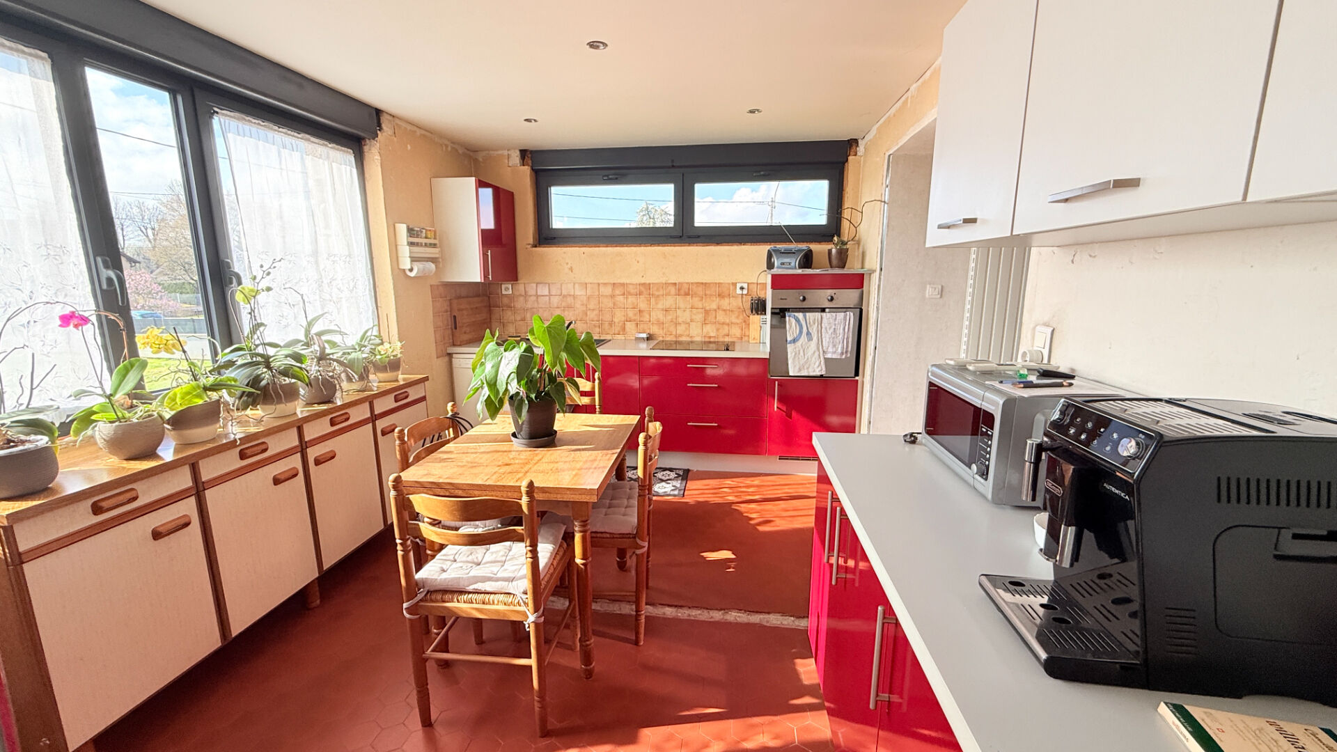 Maison individuelle avec sous-sol complet ? 101 m² habitables sur 750 m² de terrainSituée dans un environnement calme et agréable, cette maison individuelle élevée sur sous-sol vous séduira par ses volumes et son potentiel. D'une surface habitable d'environ 101 m², elle se compose au rez-de-chaussée d'une entrée desservant un lumineux salon-séjour, une cuisine indépendante, ainsi qu'une buanderie fonctionnelle. L'espace nuit comprend deux chambres confortables et deux salles de bain, et wc. Le sous-sol complet, accessible sur toute la surface de la maison, constitue un véritable atout : il dispose d'un garage, d'une chaufferie et d'une cave, offrant de nombreuses possibilités de rangement ou d'aménagement. Implantée sur un terrain de 750 m², la propriété permet de profiter d'un bel espace extérieur ! A visiter sans tarder