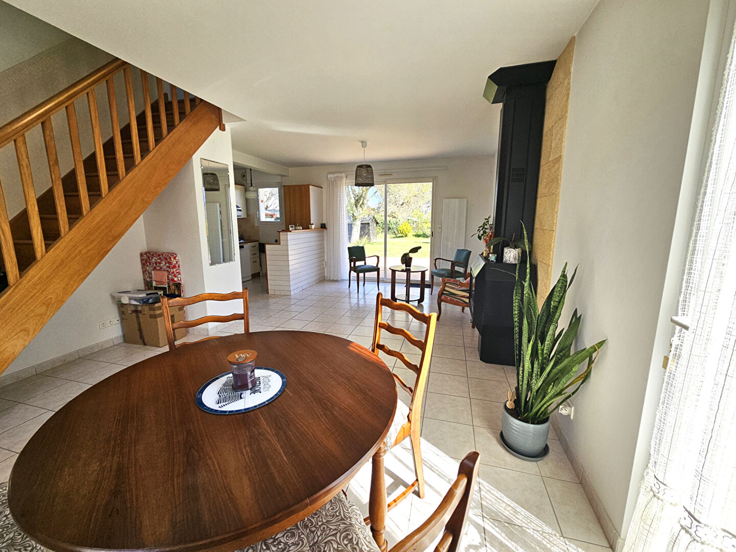 Emplacement idéal, au calme, à environ 600 mètres du centre et de la plage. Maison d'une superficie de 95 m² au sol comprenant au rez-de-chaussée un salon séjour avec cuisine ouverte équipée aménagée, une chambre, une salle d'eau, un WC, une buanderie/cellier, une véranda. A l'étage un dégagement desservant 2 chambres, une pièce bureau, une salle d'eau avec WC Un garage avec une cave Magnifique terrain arboré de 857 m², abri de jardin (5.00 % honoraires TTC à la charge de l'acquéreur.)