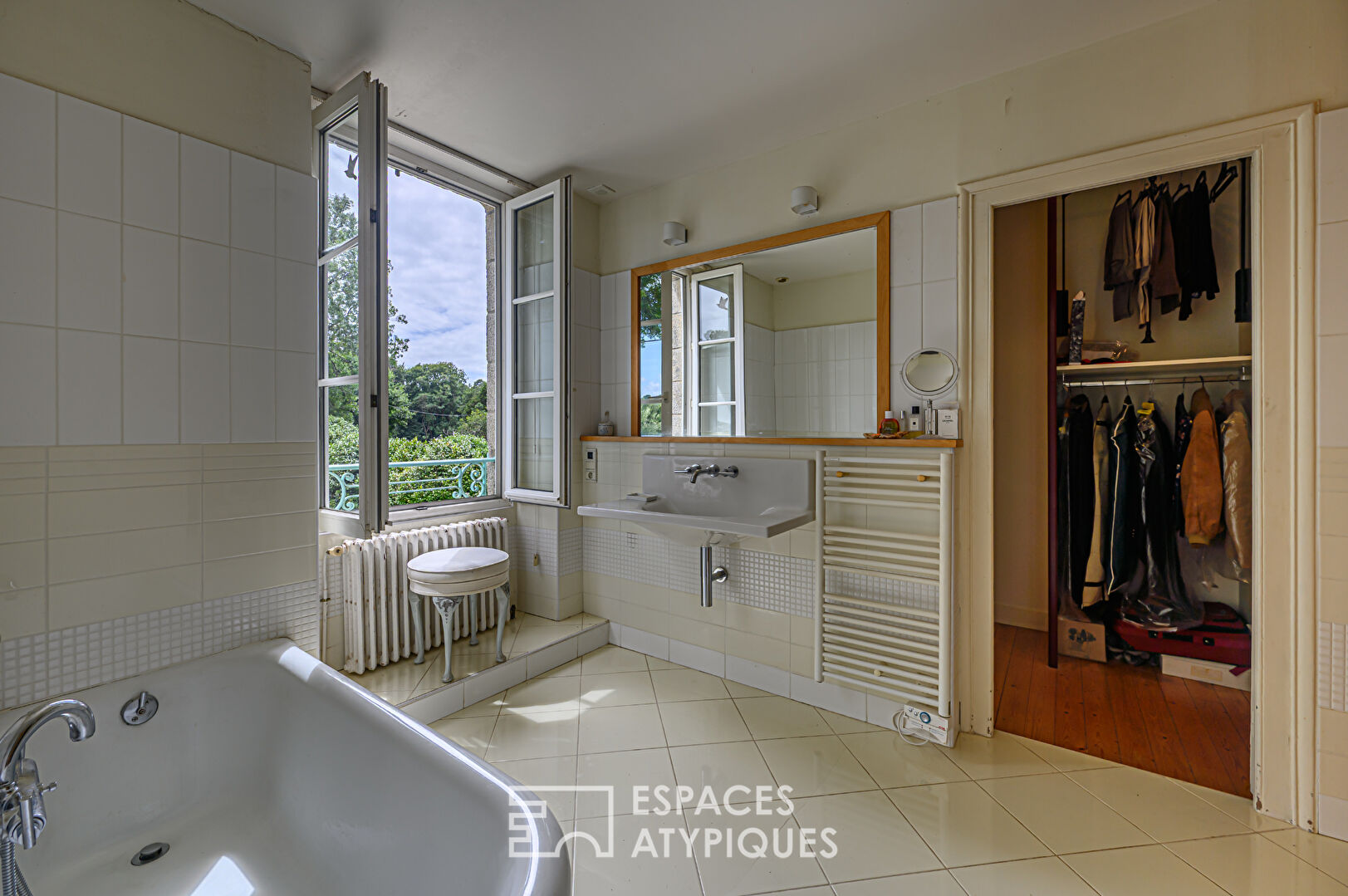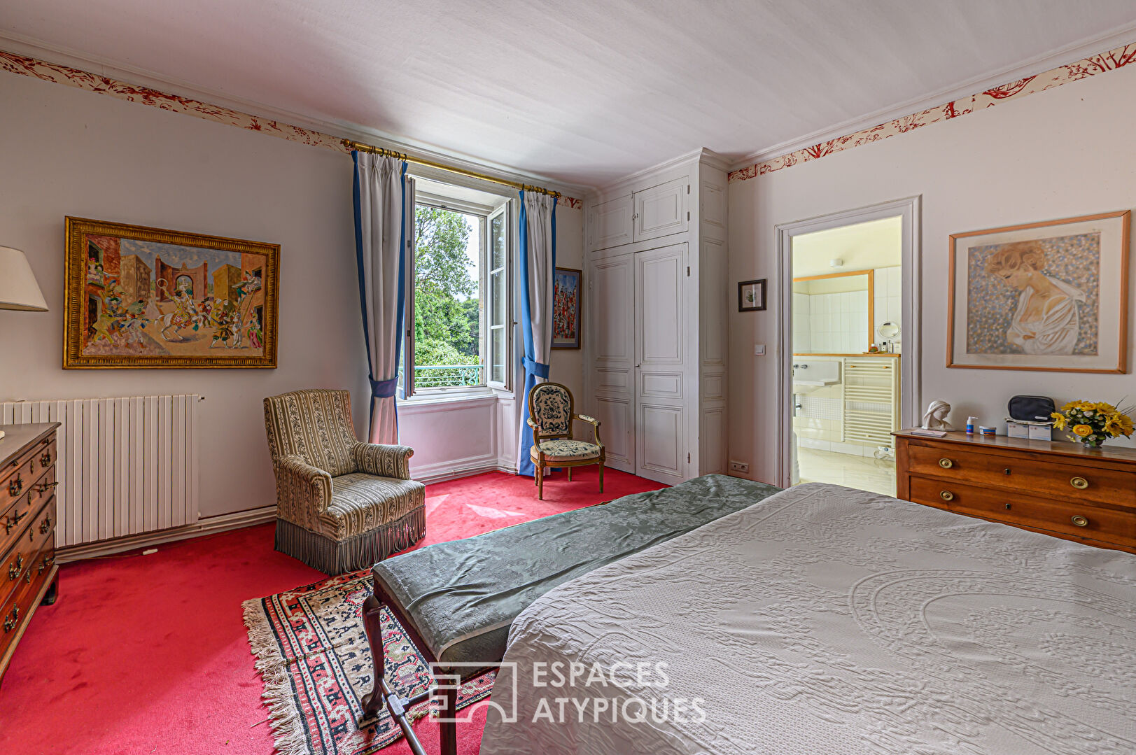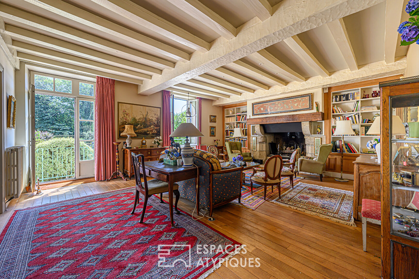 A Guidel, au coeur d'un environnement verdoyant, ce manoir de caractère édifié en 1870 déploie tout le charme de l'ancien au sein d'un parc paysager d'environ 2 hectares. Développant une surface habitable d'environ 301 m², cette propriété orientée plein sud offre des volumes généreux et un cadre de vie paisible à seulement quelques kilomètres des plages et des commerces. L'entrée chaleureuse du rez-de-chaussée ouvre sur une vaste pièce de réception, où le séjour et la salle à manger se prolongent harmonieusement. Parquet d'époque, poutres apparentes et cheminée en pierre rythment les lieux avec élégance. Une cuisine séparée vient compléter cet espace de vie. Un bel escalier en bois conduit à un demi-niveau desservant une première suite parentale avec salle de bain et toilettes séparées. Le premier étage accueille trois chambres supplémentaires, dont une seconde suite avec salle de bain privative et dressing. Le dernier niveau, aux volumes particulièrement généreux, propose un atelier ou un studio lumineux, ainsi qu'une chambre avec sa pièce d'eau. A l'extérieur, la terrasse suspendue à mi-étage permet de profiter pleinement de la quiétude du parc arboré, ponctué d'essences variées et de massifs fleuris. Une pergola et un espace repas en plein air viennent compléter cet écrin végétal. Une cave, un garage attenant à la maison, un second garage en bois pour trois véhicules, ainsi qu'un abri utilisé comme serre et espace de rangement pour le bois, apportent une fonctionnalité discrète mais précieuse. Le blockhaus, vestige du passé, abrite aujourd'hui la cuve à fioul. La propriété se situe dans un secteur recherché, à proximité des commodités, écoles et commerces. Les plages ne sont qu'à quelques kilomètres. Ce manoir à l'identité affirmée conjugue avec subtilité patrimoine, élégance et fonctionnalité. Une demeure singulière, empreinte d'histoire, idéale pour les amateurs d'authenticité et de nature. CLASSE ENERGIE : D / CLASSE CLIMAT : D Montant moyen estimé des dépenses annuelles d'énergie pour un usage standard établi à partir des prix Prix moyens des énergies indexés sur l'année 2021 : entre 3700 euros et 5070 euros. Prix FAI : 1 266 360 euros dont 3,80% honoraires TTC charge acquéreur (soit 46 360 euros) -1 220 000 euros net vendeur Guylaine PELLETIER - 0610388778 RSAC 834653214 Lorient Les informations sur les risques auxquels ce bien est exposé sont disponibles sur le site Géorisques: www.georisques.gouv.fr (3.80 % honoraires TTC à la charge de l'acquéreur.) Guylaine PELLETIER (EI) Agent Commercial - Numéro RSAC : 814653214 - LORIENT.