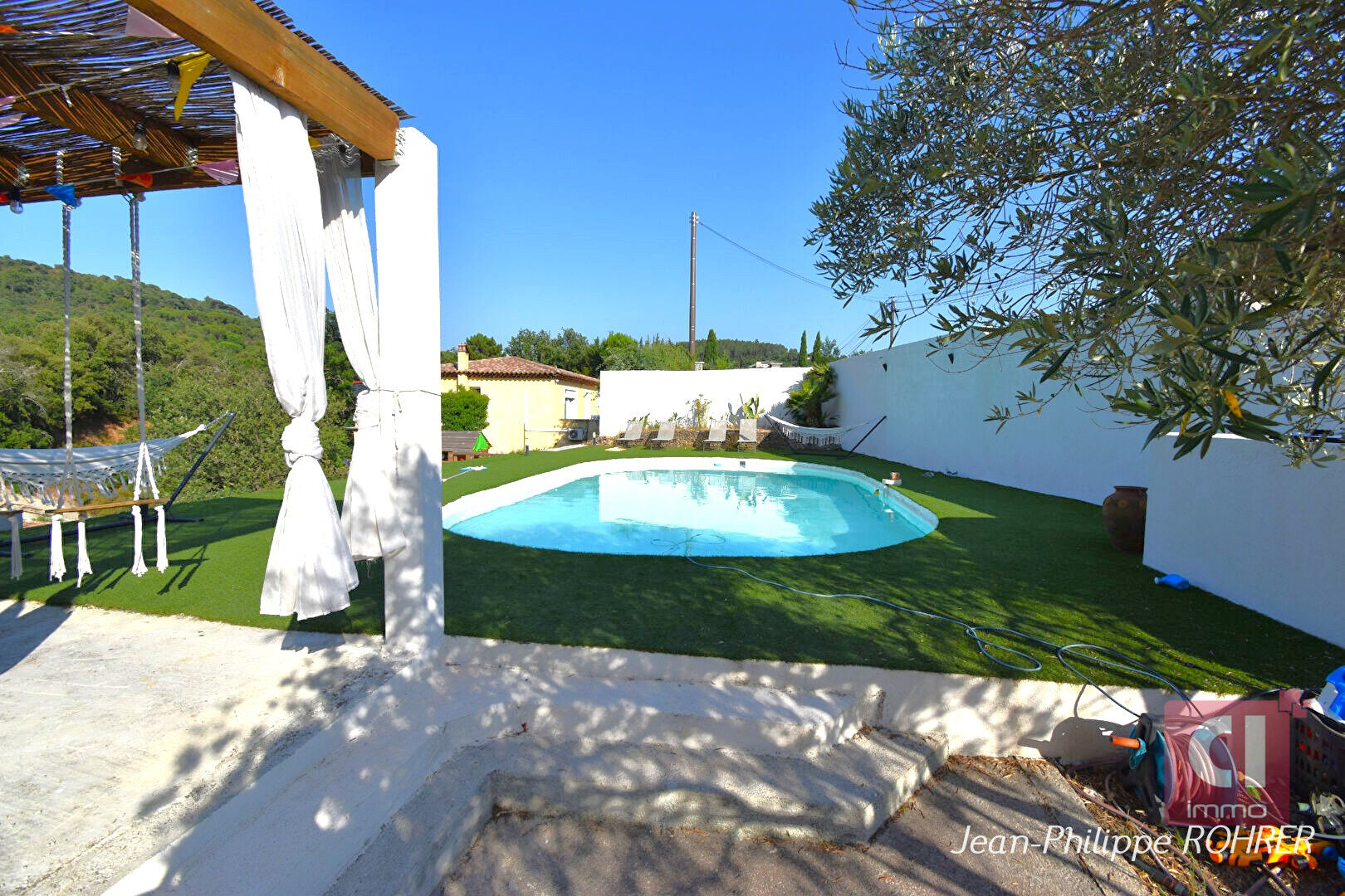 VIDAUBAN Villa indépendante d'environ 170 m² avec piscine, double espace de vie et fort potentiel Située à Vidauban, dans un environnement calme tout en restant à proximité des écoles, commerces et du centre, cette villa indépendante d'environ 170 m² offre un cadre de vie idéal pour une grande famille, une résidence secondaire ou un projet combinant habitation et activité professionnelle. Implantée sur un terrain d'environ 1 000 m², la propriété se développe sur deux niveaux indépendants, offrant une grande flexibilité d'usage et de multiples possibilités d'aménagement. Le rez-de-chaussée propose un espace de vie complet avec une grande pièce climatisée pouvant faire office de salon, une cuisine avec salle à manger ouvrant sur une terrasse couverte et un boulodrome, une chambre avec dressing, un bureau, une salle d'eau et un WC indépendant. Cet espace est idéal pour accueillir famille, amis ou envisager une activité indépendante. A l'étage, vous découvrirez un séjour lumineux climatisé avec poêle à granulés, ouvert sur une terrasse avec accès direct à la piscine, ainsi qu'une cuisine ouverte entièrement équipée. L'espace nuit comprend trois chambres avec placards, une salle de bain et un WC. A l'extérieur, tout est réuni pour profiter pleinement du cadre de vie provençal : piscine, terrasses, espace détente avec jacuzzi et spa, ainsi qu'un terrain permettant de partager des moments conviviaux en famille ou entre amis. La propriété dispose également de nombreux atouts pratiques : stationnements multiples, box pour vélos ou motos, cave d'environ 25 m², et équipements confortables tels que climatisation réversible, chauffage électrique, poêle à granulés, double vitrage bois et raccordement au tout-à-l'égout. Construite en 1987 et entretenue avec soin, cette maison offre un équilibre parfait entre confort, volumes et potentiel. Ce bien constitue une opportunité rare, aussi bien pour une résidence principale familiale, une résidence secondaire avec capacité d'accueil, ou un projet locatif ou mixte (habitation + activité). Honoraires à la charge du vendeur Les informations sur les risques auxquels ce bien est exposé sont disponibles sur le site Géorisques : www.georisques.gouv.fr Pour plus d'informations ou pour organiser une visite, contactez CI IMMO. Jean-Philippe ROHRER (EI) Agent Commercial - Numéro RSAC : 980 269 666 - Draguignan.