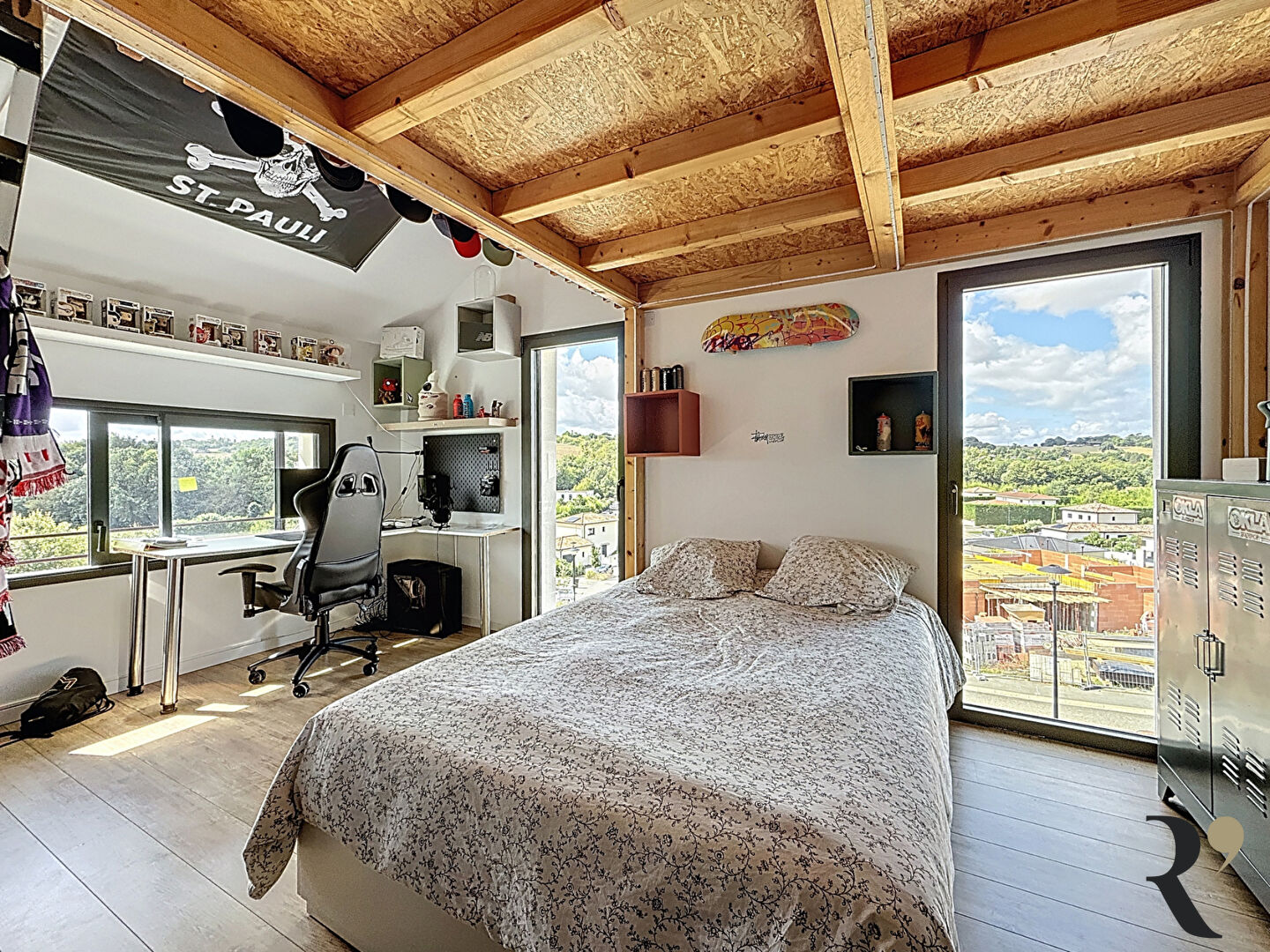 PIN-BALMA A seulement quelques minutes de Toulouse, découvrez cette magnifique villa contemporaine d'environ 190 m², nichée dans un environnement résidentiel privilégié, calme et verdoyant. Dès l'entrée, l'architecture moderne et les finitions raffinées séduisent. La pièce de vie spacieuse et très lumineuse, sublimée par un plafond cathédrale et de larges baies vitrées avec une magnifique vue dégagée, crée une atmosphère à la fois chaleureuse et spectaculaire. La maison se compose au rez de chaussée d'une chambre avec sa salle d'eau privative ainsi que d'une belle suite parentale d'environ 23 m2 pensée pour le confort quotidien, offre un véritable cocon avec une magnifique salle de bains avec baignoire ilot et d'un dressing . A l'étage, on retrouve une belle mezzanine avec une splendide vue sur la campagne, un espace détente ou salle de jeux ainsi que deux chambres avec rangements et salles d'eau privatives. A l'extérieur, la parcelle de près de 1 116 m², arborée, clôturée et paysagée propose un cadre idyllique. Véritable havre de détente, la piscine à débordement s'accompagne d'un élégant pool house avec cuisine d'été, idéal pour profiter de moments conviviaux en toute intimité, à l'abri des regards et dans un cadre paisible et avec une super vue dégagée . Nichée sur le secteur prisé de Pin-Balma, cette propriété rare conjugue élégance et raffinement pour offrir un cadre de vie d'exception. Alliant confort moderne, esthétisme soigné et douceur de vivre, elle bénéficie d'une situation idéale, à quelques instants seulement du dynamisme du centre-ville de Toulouse et des commodités. Une adresse exclusive, pensée pour ceux qui recherchent bien plus qu'une maison : un véritable art de vivre. Agence Rely'on Immobilier : 05 62 80 65 89