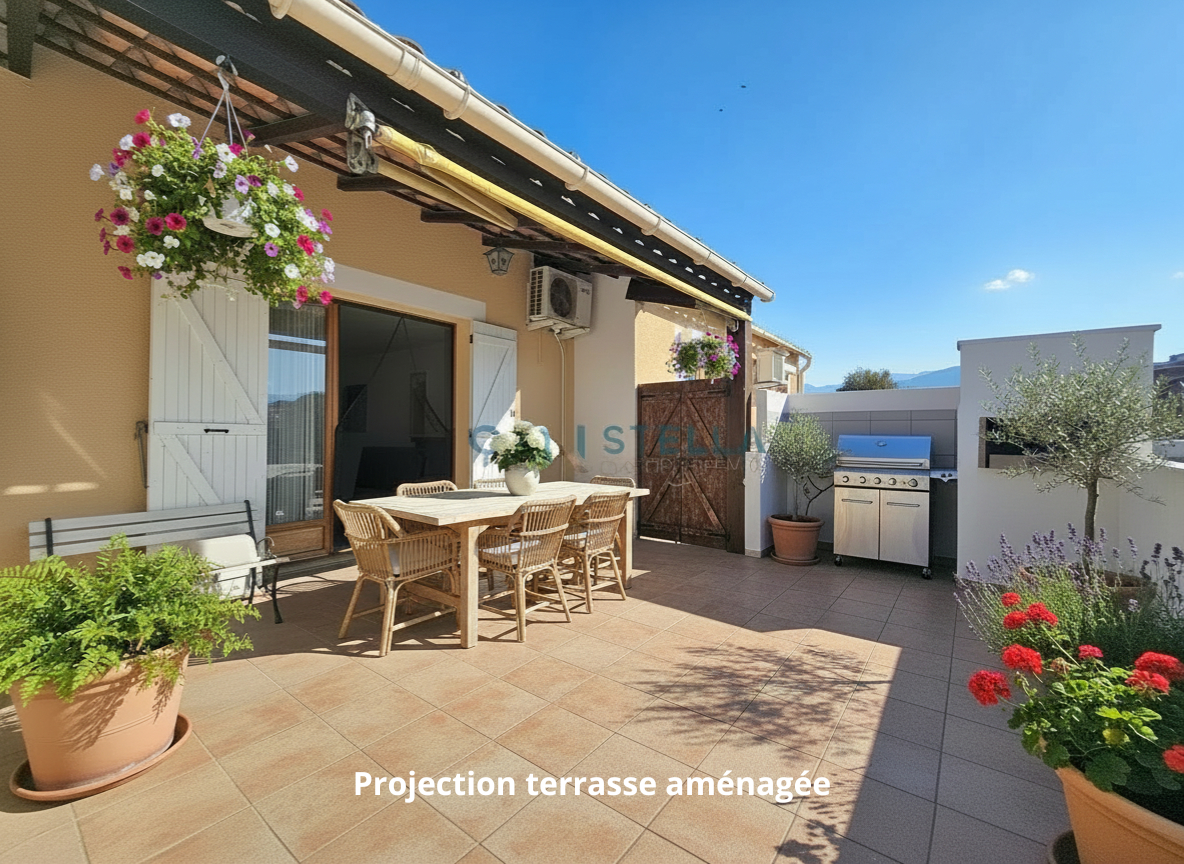 L'agence Stella Patr'Immo, spécialiste en immobilier à Ajaccio, a le plaisir de vous présenter en exclusivité cette charmante maison individuelle T4 de 77 m², idéalement située sur la commune de Sarrola-Carcopino, à proximité immédiate de toutes les commodités. Edifiée en 1991 sur un terrain plat et piscinable de 590 m², cette maison séduit par sa configuration traversante et sa belle luminosité. Elle se compose d'une agréable pièce de vie ouverte sur une terrasse de 26m2 exposée plein Sud, de trois chambres, d'une salle d'eau et d'un WC indépendant. Un garage de 18 m² ainsi qu'un atelier viennent compléter ce bien, avec un beau potentiel d'aménagement pour créer une pièce de vie supplémentaire ou agrandir la pièce principale. Vous profiterez d'un environnement ensoleillé, au calme et sans vis à vis, avec la possibilité de créer un véritable extérieur, idéal pour partager des moments en famille ou entre amis. Ne tardez pas pour une visite ! Honoraires à la charge du vendeur. Sandra PROST (EI) Agent Commercial - Numéro RSAC : 1 - .