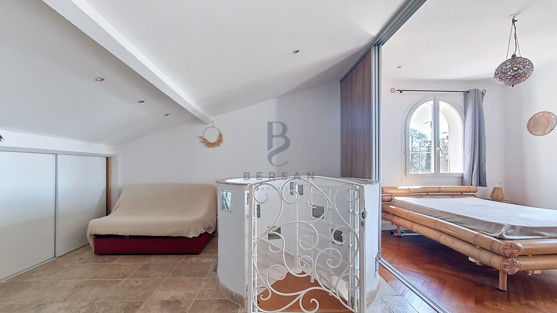 Votre agence BERSAN Immobilier vous propose cet appartement alliant charme, situation exceptionnelle, calme et vue mer. Situé, proche du centre de ST RAPHAEL à pied, au coeur d'un lotissement fermé par un portail, cet appartement offre un cadre privilégié au sein d'une villa d'époque. L'accès de plain pied, dispose d'un espace hall d'entrée avec son escalier d'accès à l'appartement. On dispose, à l'étage, d'un séjour/salle à manger, lumineux, avec balcon et terrasse surplombant la ville, d'une cuisine équipée, d'un WC indépendant ainsi que d'une spacieuse chambre avec sa superbe salle d'eau. Un second espace nuit possible sous mansarde avec un grand rangement complète ce bien. 1 place de parking devant l'appartement, plus des facilités pour les éventuels convives. Climatisation réversible. Toute l'équipe de l'agence BERSAN Immobilier reste à votre service pour vous apporter de plus amples informations. Copropriété de 6 lots - dont 4 lots habitation. Charges annuelles : 200 euros.