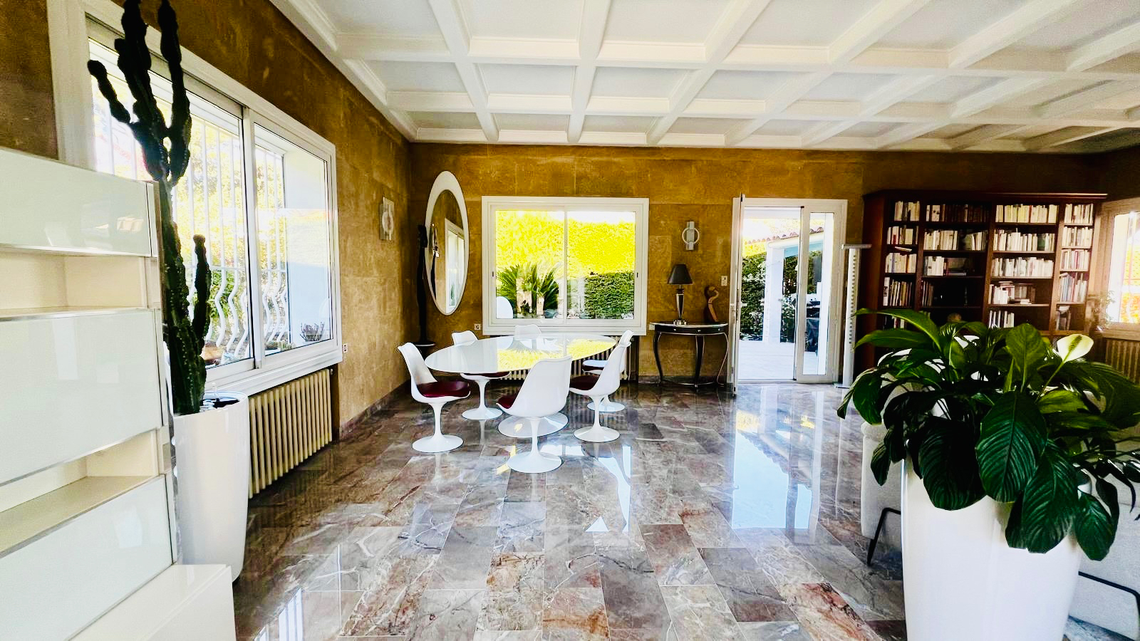 Coup de coeur pour cette belle maison familiale des années 50, située dans le secteur prisé de La Perussonne, offrant environ 220 m² habitables sur une parcelle arborée de plus de 1700 m², avec piscine et dépendances. Dès l'entrée, la maison séduit par son hall spacieux et lumineux, mettant en valeur le charme des lieux, les volumes et la qualité des matériaux. Le premier niveau propose une agréable cuisine dînatoire, une vaste pièce de vie baignée de lumière, une chambre, un espace dressing/buanderie, un bureau, une salle d'eau avec toilettes, ainsi que des toilettes séparées A l'étage, l'espace nuit se compose de deux chambres, d'un bureau et d'une salle d'eau avec toilettes. Chaque chambre bénéficie d'un accès direct à une terrasse offrant une vue dégagée sur le jardin et l'espace piscine. La maison se distingue également par ses nombreux carreaux de verre répartis à différents endroits, apportant une luminosité exceptionnelle et participant pleinement à son identité architecturale. Les extérieurs offrent plusieurs espaces de vie particulièrement agréables : une grande cuisine d'été, une piscine, un joli bassin à poissons, un jardin aménagé avec différentes ambiances ainsi qu'une cabane de rangement. Un garage de 39 m², actuellement aménagé en salle de musique avec point d'eau, offre de multiples possibilités d'usage. Une dépendance d'environ 20 m² complète l'ensemble. La propriété permet de stationner plusieurs véhicules grâce à ses accès pratiques ainsi qu'à son double abri voiture maçonné. Sols en marbre, cheminée, belles hauteurs, cachet préservé et environnement privilégié font de cette maison un bien particulièrement agréable à vivre. Proche de toute les commodité, tout en bénéficiant d'un environnement calme. A noter : le terrain offre également un potentiel intéressant avec possibilité de détachement de parcelle, selon projet et autorisations en vigueur. Pour tout renseignement complémentaire, Cathy Bongiorno reste à votre disposition 7J/7. Cathy Bongiorno (EI) Agent Commercial - Numéro RSAC : 912541620 - Marseille.