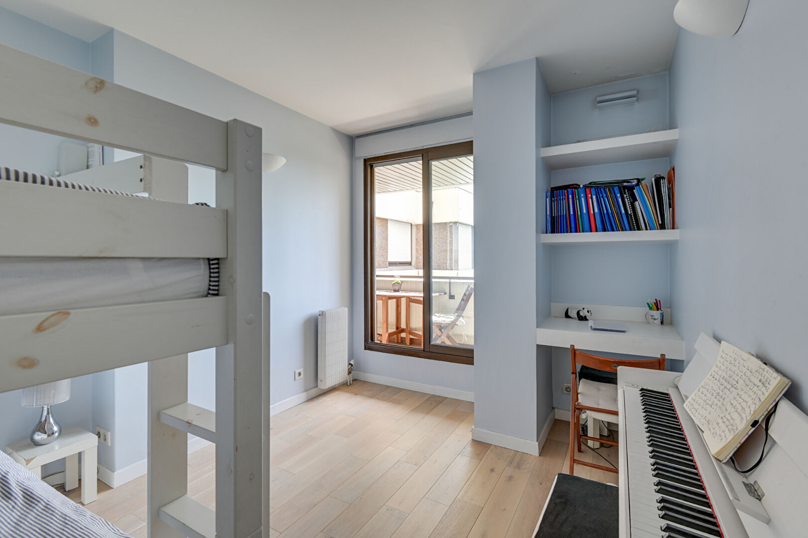 SURESNES - Coeur de ville Dans une copropriété avec gardien, appartement en excellent état de 5 pièces de 112m² situé au 2ème étage (équivalent du 4ème) comprenant : une entrée avec rangements, un double séjour de 45m² donnant sur un espace extérieur avec vue sur Paris et sur les quais, une cuisine américaine équipée, trois chambres dont une chambre parentale avec dressing (4ème chambre possible), une salle d'eau, une salle de bains avec WC et un WC indépendant. Une place de parking en sous-sol et une cave complètent ce bel ensemble. Appartement traversant, rénové avec de beaux matériaux. Proche de toutes commodités, des transports et des écoles. Proximité du Bois de Boulogne à quelques minutes à pieds. (3.66 % honoraires TTC à la charge de l'acquéreur.) Copropriété de 252 lots. Charges annuelles : 5592 euros.