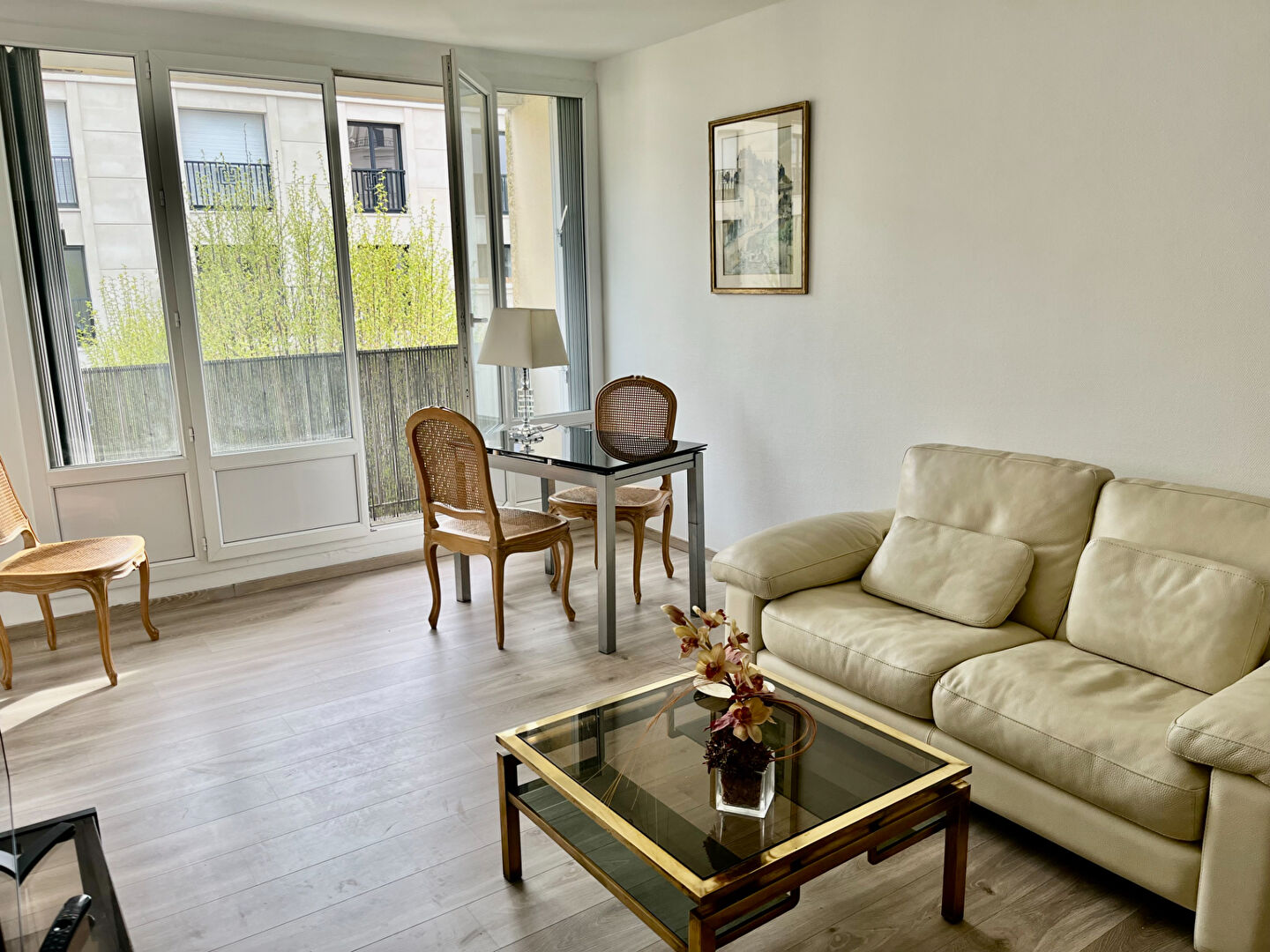 LE PLESSIS - SECTEUR PANORAMA En étage d'une résidence des années 1970 à proximité des commerces du Panorama et du Tram T6, très beau 3 pièces traversant de 55 m2 environ offrant une entrée avec dégagement et placards, une cuisine aménagée et équipée, un séjour ouvrant sur un balcon, deux chambres , une salle d'eau et des wc séparés. Un parking et une cave