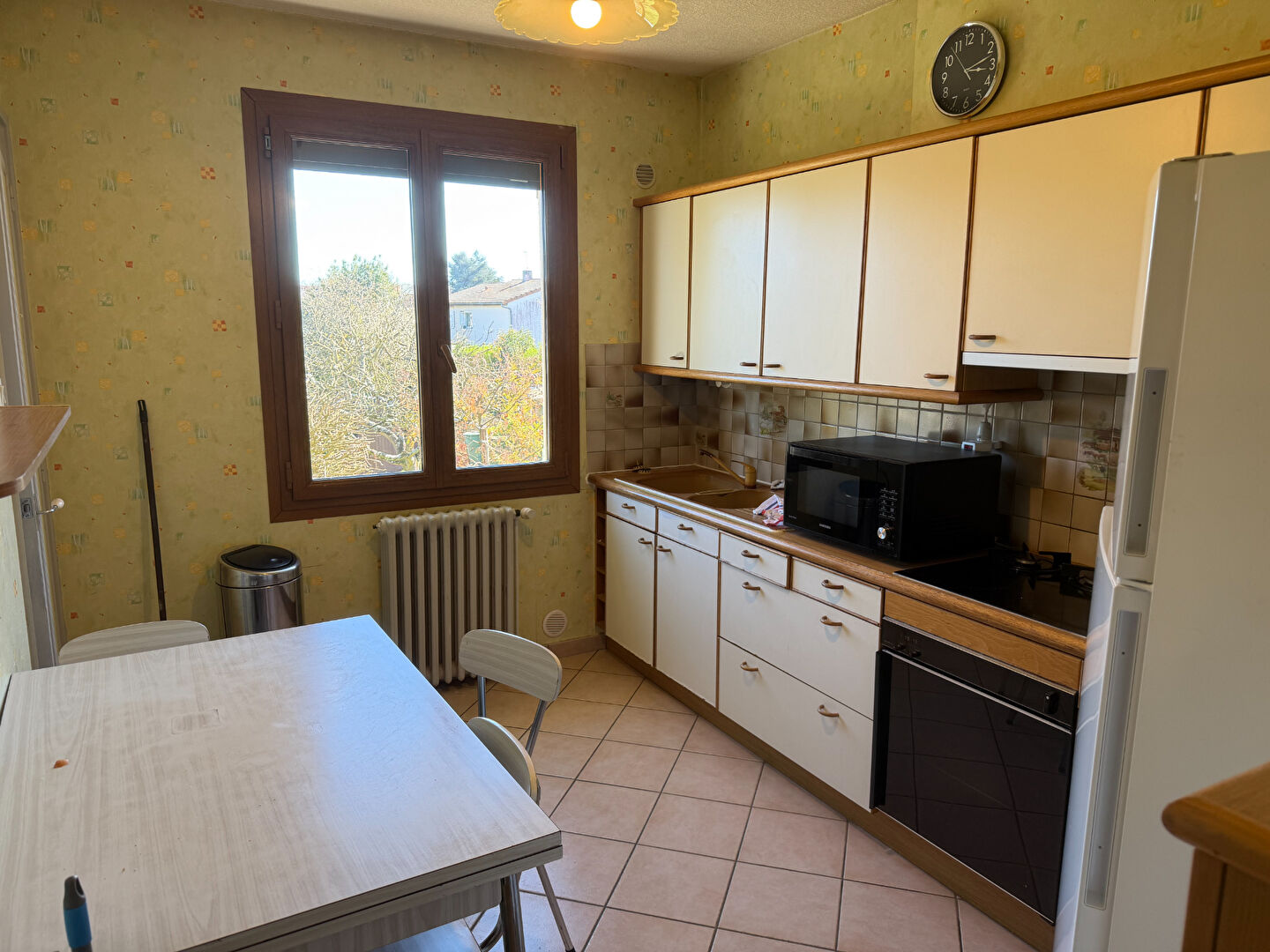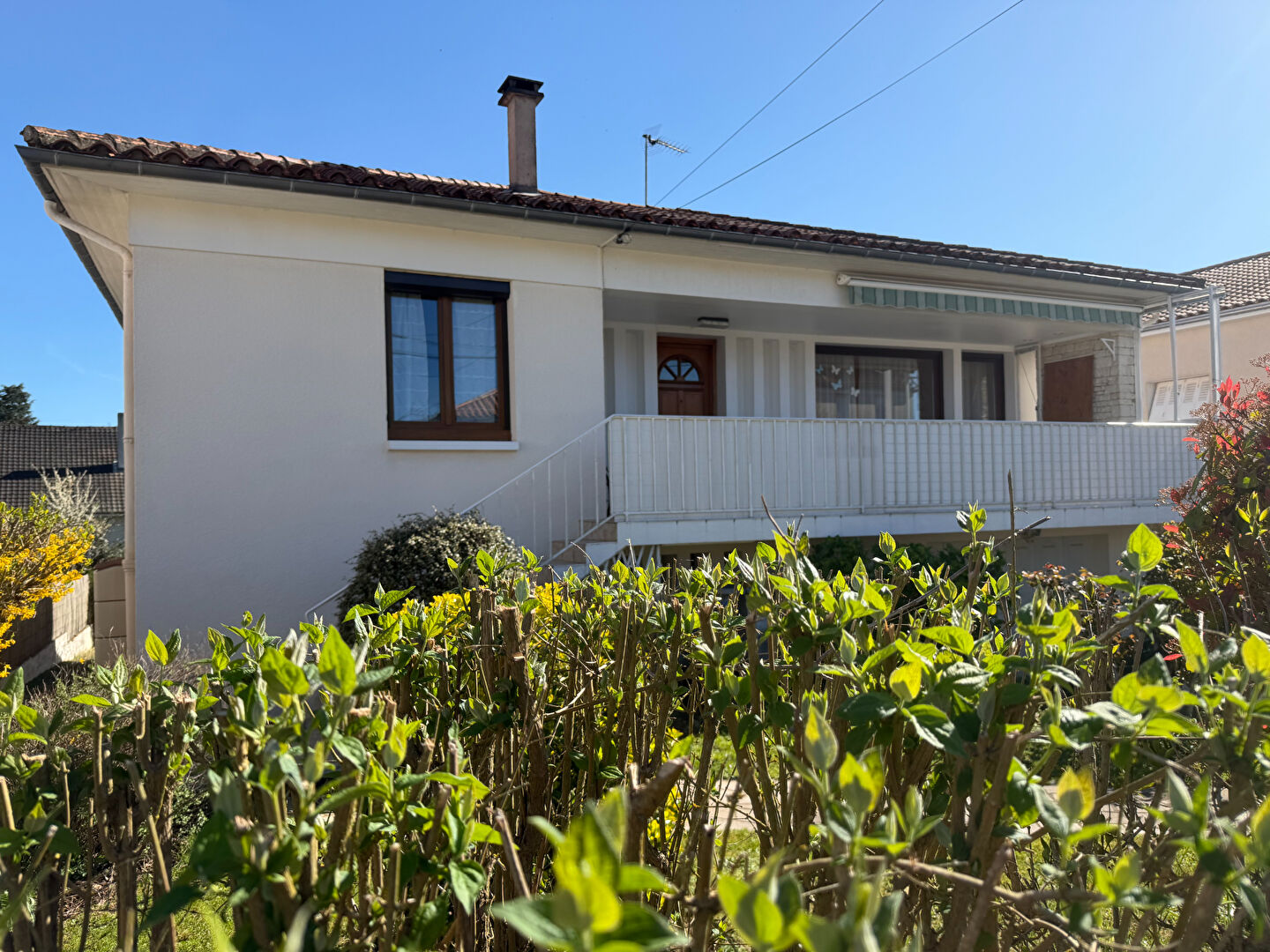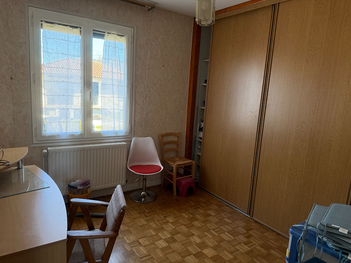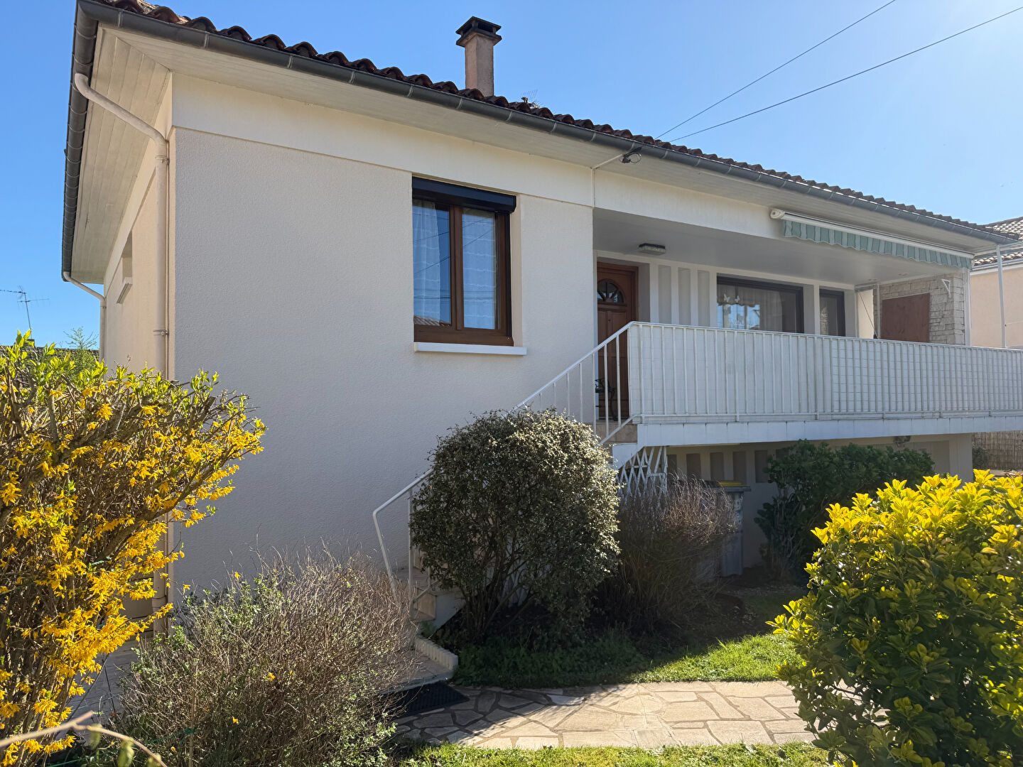 SAINT-BENOIT, ermitage. Jolie maison individuelle des années 1960 en bon état offrant 97 m² habitables composée comme suit : à l'étage (75 m²) : entrée avec placard, beau salon-séjour sur parquet de 24 m² avec jolie cheminée foyer ouvert ouvrant sur une belle terrasse avec store, cuisine aménagée, couloir, salle d'eau, wc, deux chambres de 11 m² et 14 m² avec placards ; en rez de jardin : une chambre de 13 m², un bureau de 8.5 m², une salle d'eau avec wc ; garage, chaufferie gaz de ville, buanderie, atelier (60 m² en tout). Beau terrain arboré de 627 m² avec cabanon. Double vitrage PVC. Volets roulants et porte de garage électrique. Tout à l'égout. Panneaux solaires pour l'eau chaude. Emplacement recherché : écoles sur place, bus de ville et accès gare / centre ville de Poitiers à proximité. A visiter sans tarder avec Vincent Giraud, agent immobilier de l'agence Labell depuis 2001. (6.67 % honoraires TTC à la charge de l'acquéreur.)