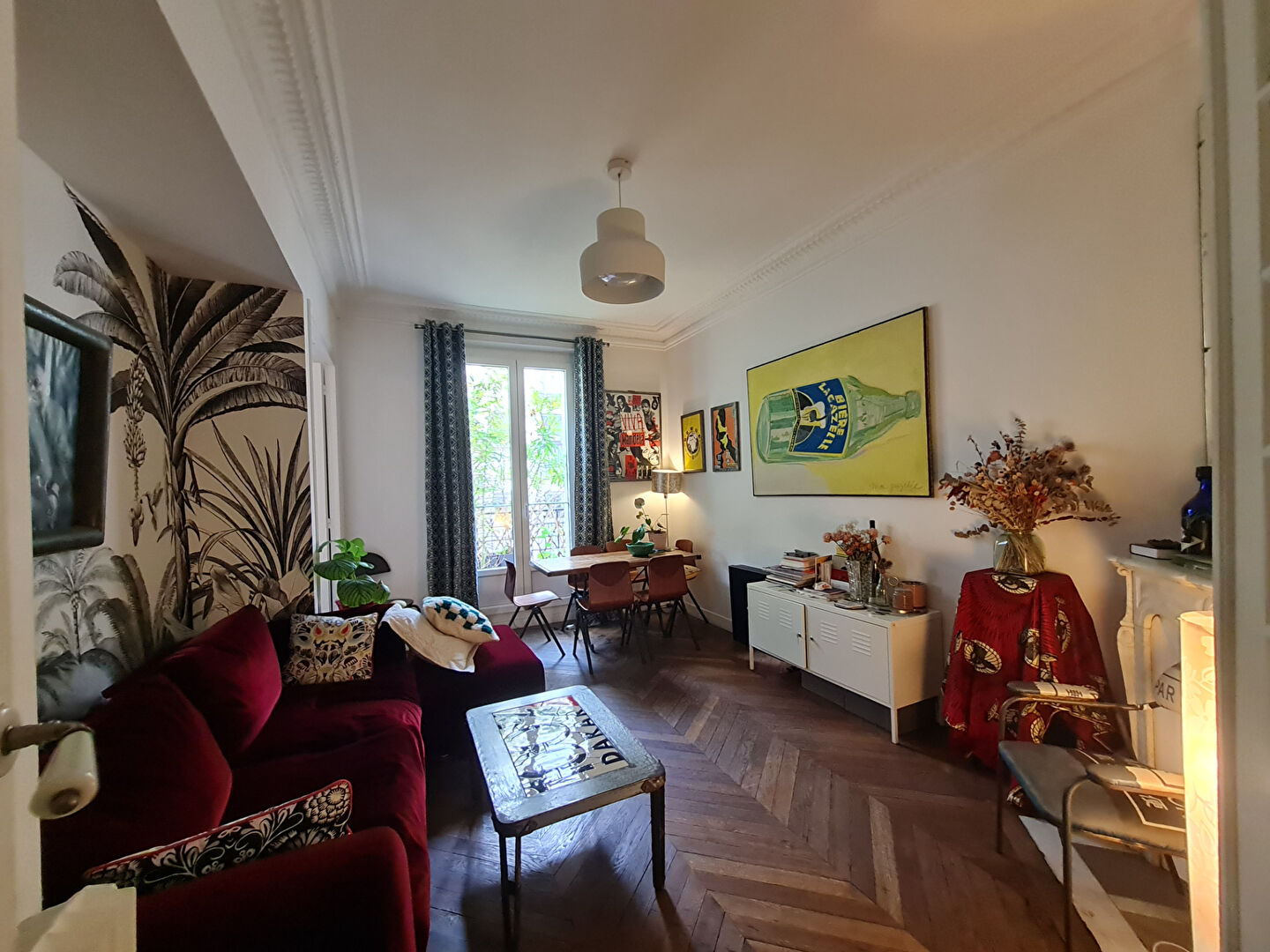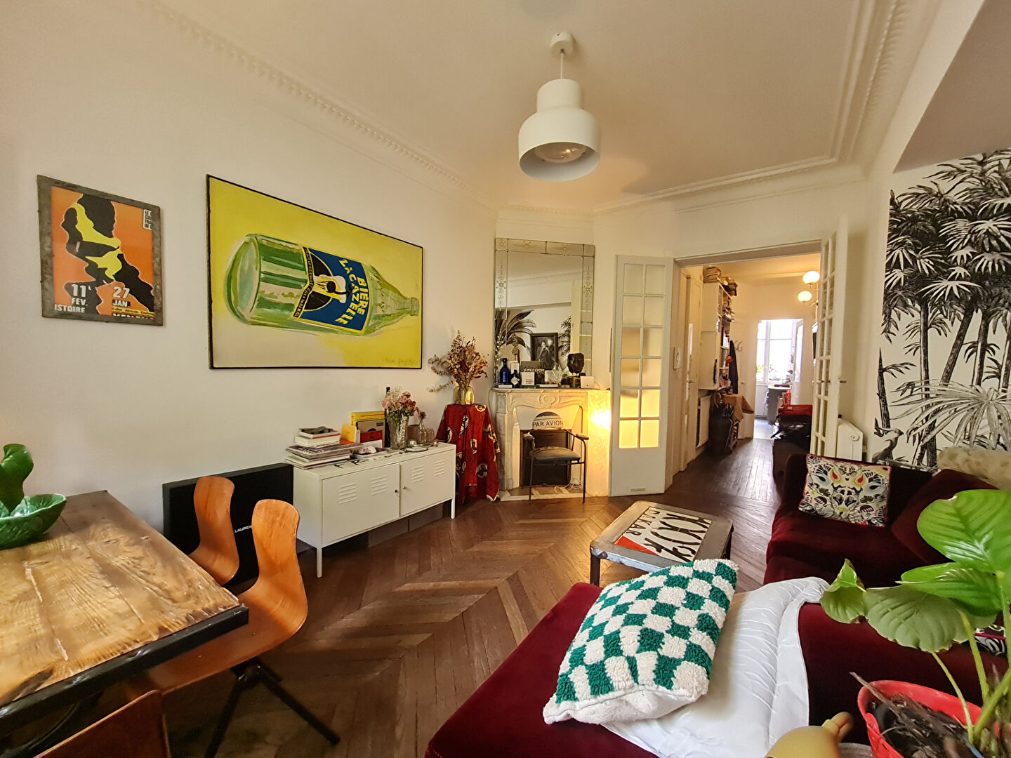 Un bien coup de coeur au cachet rare, idéalement situé à deux pas du Parc des Buttes-Chaumont. Dans un environnement particulièrement recherché, cet élégant appartement haussmannien séduit immédiatement par la qualité de ses volumes, sa luminosité et son atmosphère chaleureuse. Situé au 2ème étage avec ascenseur d'un immeuble de standing, parfaitement entretenu et sécurisé, il bénéficie d'une belle hauteur sous plafond et d'une distribution harmonieuse. Le charme de l'ancien s'exprime pleinement à travers ses moulures d'époque, son parquet ancien et ses belles ouvertures. L'entrée dessert un séjour lumineux, agrémenté de grandes portes-fenêtres en double vitrage, prolongé par un agréable balcon filant de 6 m², offrant une véritable ouverture sur l'extérieur. L'espace nuit se compose de deux chambres, toutes deux dotées de grandes portes-fenêtres en double vitrage : l'une sur rue, avec accès direct au balcon, l'autre, plus spacieuse, donnant sur une cour arborée d'un calme absolu, offrant un véritable esprit de campagne au coeur de Paris. Au sein de cette grande chambre sur cour, un espace peut être aisément aménagé en bureau, grand dressing ou espace nuit d'appoint (idéal pour un jeune enfant), offrant une modularité appréciable. Une cuisine indépendante, fonctionnelle et bien agencée, ainsi qu'une salle de bains et un WC séparé viennent parfaire cet agencement. Immeuble sécurisé avec digicode, interphone et système de vidéosurveillance. Chauffage et eau chaude individuels au gaz. Une cave de 10 m² complète ce bien. Un bien rare, réunissant charme de l'ancien et cadre de vie privilégié au coeur de Paris. (2.04 % honoraires TTC à la charge de l'acquéreur.) Copropriété de 17 lots. Charges annuelles : 3700 euros.