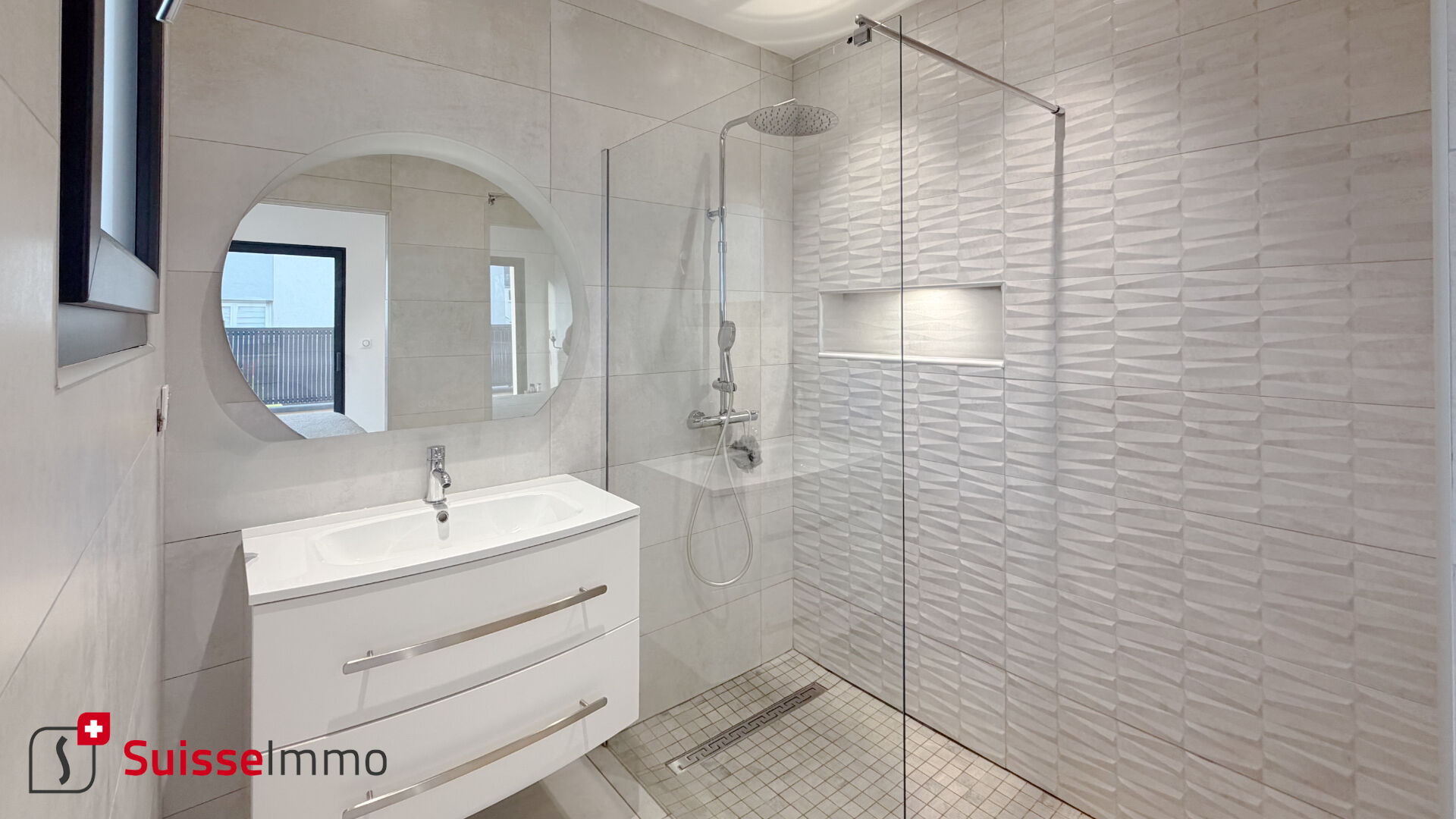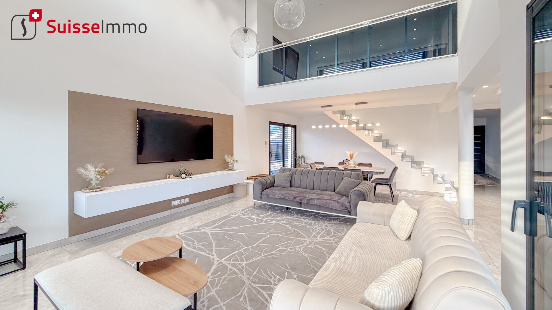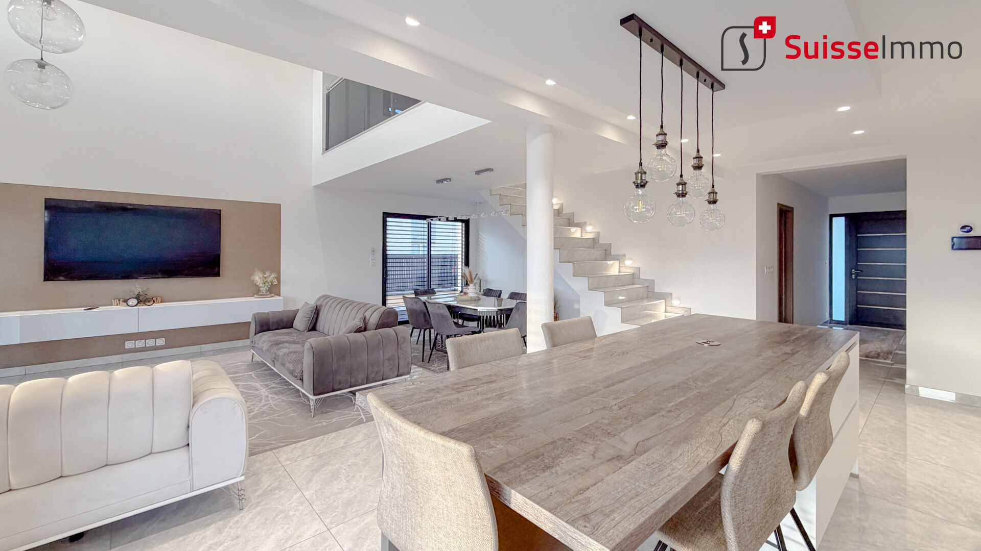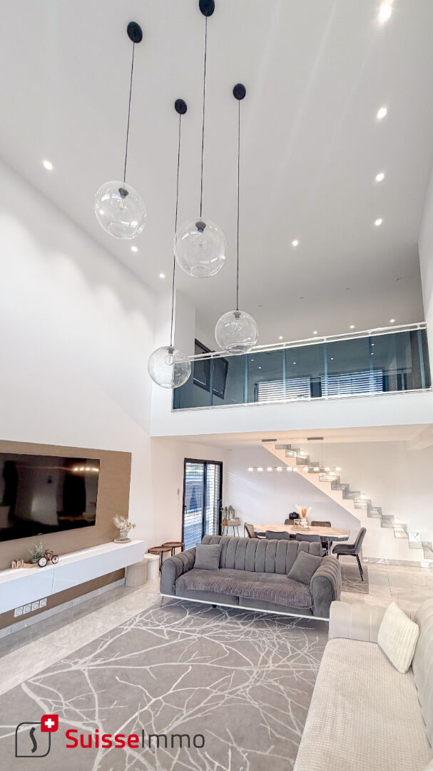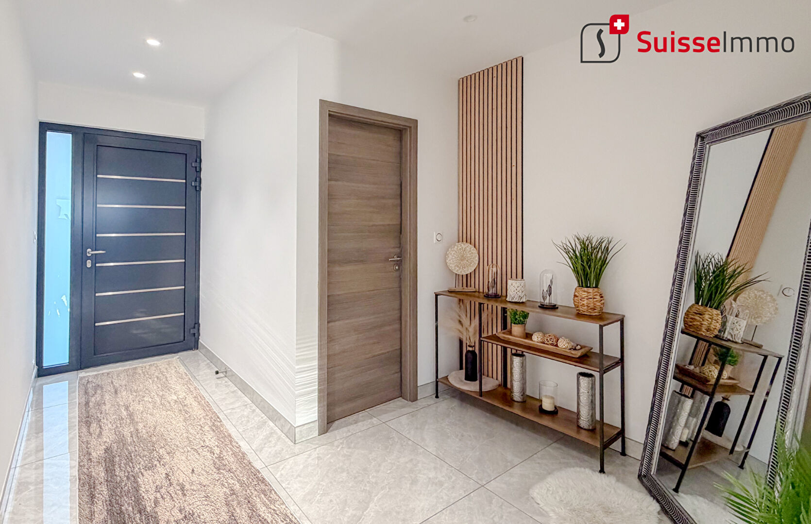 - Grand Charmont - Découvrez cette superbe maison de 2022, sur près de 5,75 ares de terrain plat. Les +: - Construction de 2022 - Prestations haut de gamme - DPE en A Au RDC : - Hall d'entrée - Cuisine équipée ouverte sur une pièce de vie de 60 m2 avec accès terrasse - Chambre parentale avec salle d'eau et dressing (24 m2) - Toilettes - Cellier - Garage A l'étage : - Mezzanine bureau - 3 chambres dont une avec salle d'eau (19, 14 et 12,5 m2) - Salle de bains Mitoyenneté par le garage, Chauffage au sol par PAC sur les 2 niveaux, fenêtres alu et PVC avec BSO et volets électriques, thermostat dans toutes les chambres, adoucisseur.