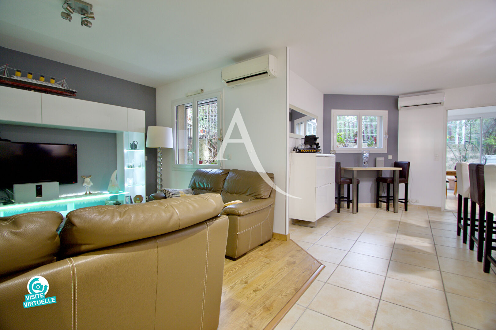 RARE - MONTPELLIER ESTANOVE - DUPLEX T4 CLIMATISÉ - 91 M2 UTILES (77,94 M2 CARREZ) - 2 CHAMBRES - JARDINET - VERANDA- GARAGE - 1 PLACE DE STATIONNEMENT Dans un quartier résidentiel calme de Montpellier, ce duplex avec 55 m² de jardinet, situé dans une résidence récente et sécurisée en impasse, offre un cadre de vie idéal, à proximité immédiate de 2 arrêts de la ligne 5 du tram. Au rez-de-chaussée, l'entrée avec placards mène à une magnifique cuisine aménagée et équipée constituant le coeur de la maison, et ouverte sur un salon ainsi que sur une véranda de 14 m2, qui prolonge l'espace de vie. A ce niveau, se trouve également une salle d'eau avec WC. Depuis la véranda, on accède à un jardin privatif, actuellement terrassé, idéal pour se détendre et tenir compagnie aux écureuils du parc voisin... A l'étage, 2 chambres dont une avec placard, ainsi qu'une salle de bains et un WC complètent utilement le bien. Possibilité de créer une 3e chambre au rez-de-chaussée. L'extérieur dispose d'une grande terrasse permettant de profiter des beaux jours, et d'un accès direct au garage attenant. Une place de stationnement fait également partie du bien. La résidence dispose d'un local à vélos LES ATOUTS DE CE BIEN : - Résidence récente - Petite copropriété de 7 logements seulement (et faibles charges) - Jardinet privatif - Garage - Climatisation - Place de parking privée et sécurisée - Proche de 2 arrêts de la ligne 5 du tram - A proximité des commerces, des écoles et d'une crèche Ce bien rare est idéal pour une famille ou un couple de jeunes actifs en recherche d'un cadre de vie calme et connecté à Montpellier, dans un quartier en "plein renouvellement". * VISITE IMMERSIVE 360° DISPONIBLE * Copropriété de 20 lots - dont 7 lots habitation. Charges annuelles : 1130 euros.
