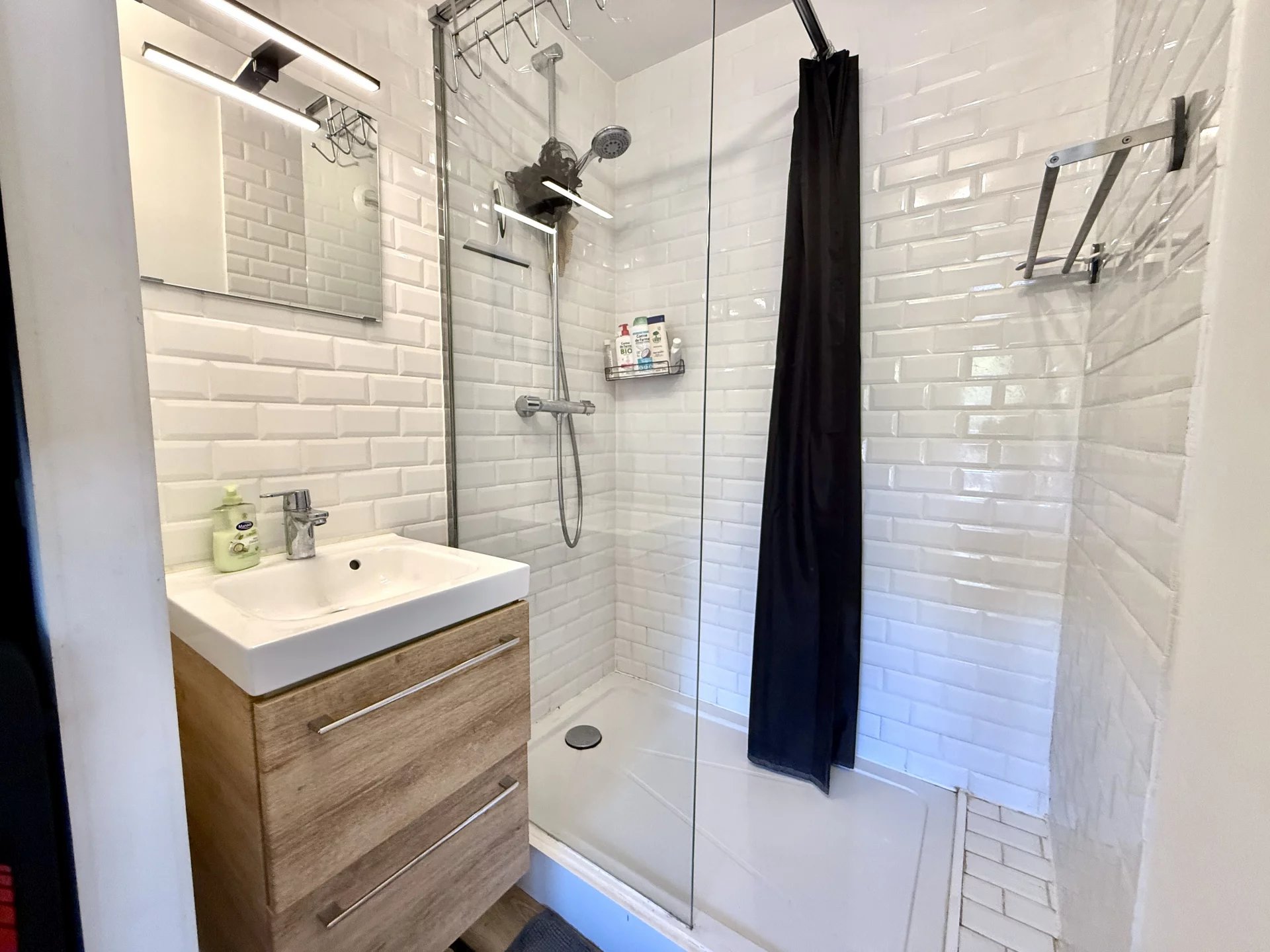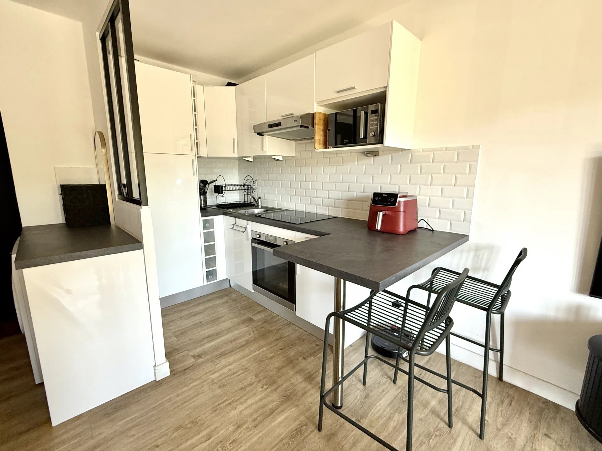 Appartement T2 – Vallauris – Terrasse – Rénové – Faibles charges Situé dans un secteur recherché de Vallauris, au sein d’une copropriété calme et bien entretenue, à proximité immédiate des commodités (bus, commerces, supermarché…), découvrez ce T2 de 26 m², parfaitement optimisé et sans travaux à prévoir. Implanté au 2ᵉ étage, l’appartement bénéficie d’une exposition sud-est, offrant une belle luminosité tout au long de la journée ainsi qu’une vue dégagée. L’espace de vie se compose d’un salon avec cuisine ouverte, moderne et fonctionnelle, donnant accès à une agréable terrasse de 8 m², également accessible depuis la chambre. La partie nuit propose une chambre avec rangements intégrés, une salle d’eau et des WC séparés. Entièrement rénové il y a 3 ans, le bien dispose de prestations récentes et de qualité : * Climatisation installée l’an dernier * Chauffage par radiateurs électriques à inertie * Chauffe-eau récent Performances énergétiques optimisées : DPE B / GES A Faibles charges de copropriété. Possibilité d’acquérir un garage en sus. Un bien idéal pour un investissement locatif, un pied-à-terre ou un premier achat, alliant confort, fonctionnalité et emplacement stratégique.