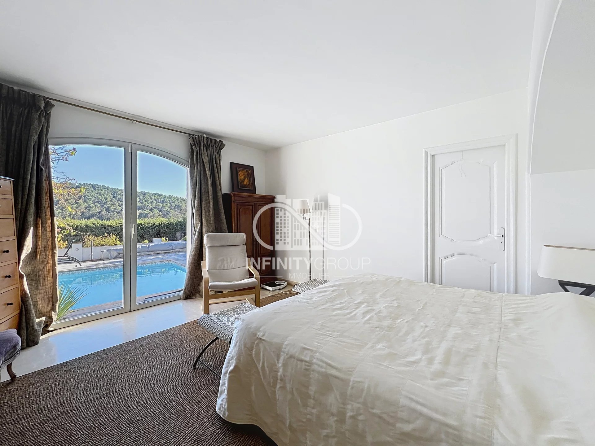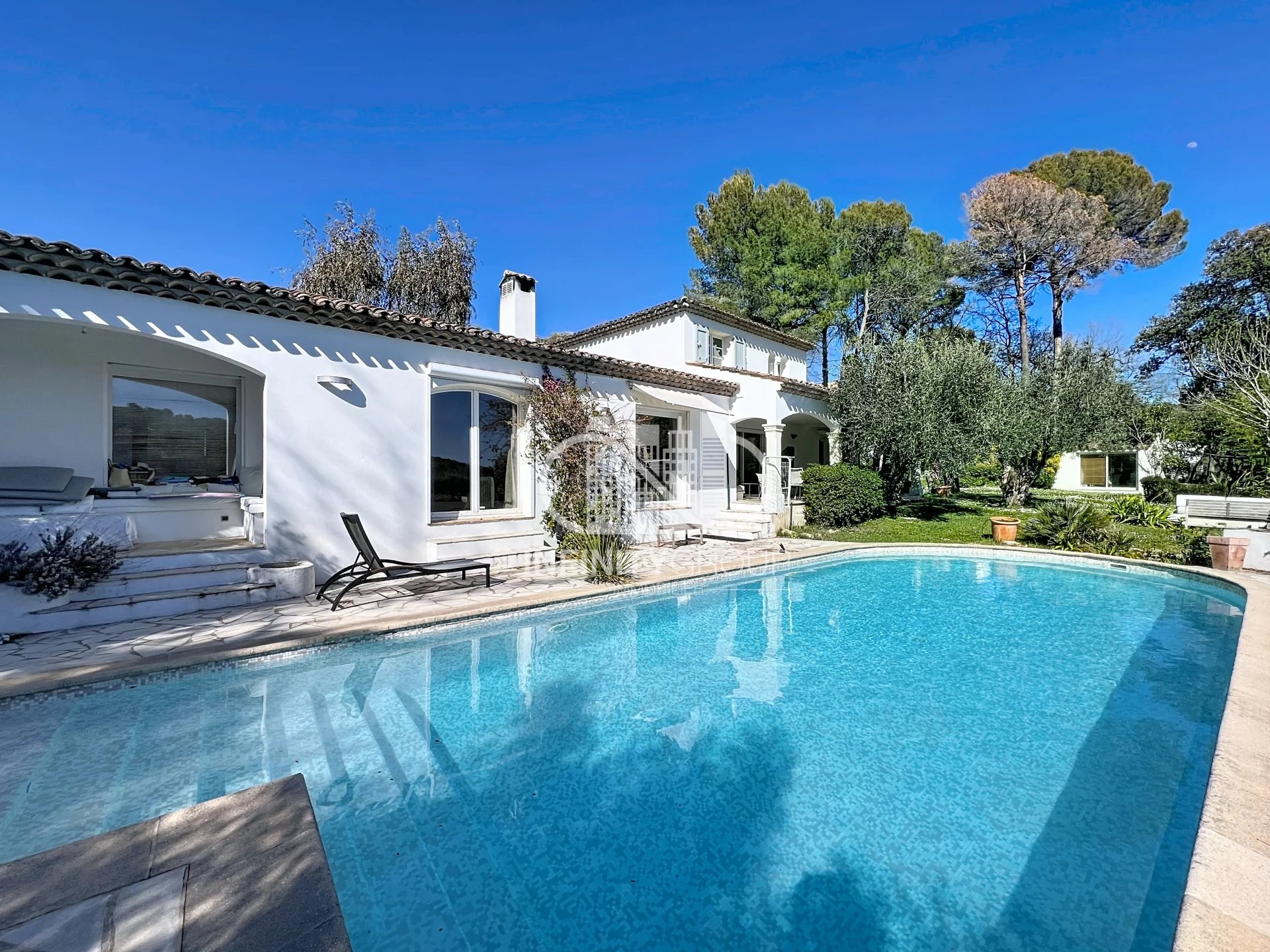 Belle villa familiale dans les quartiers recherché d’Opio, calme à proximité des commerces ! 2 dépendances équipées de SDB sur un grand terrain de 2666 m2 avec grande piscine ! Habitation principale de 145 m2 de plain pied, grand séjour cathédrale, salon avec cheminée, cuisine indépendante, 1 master , 1 suite dont une à l’étage.