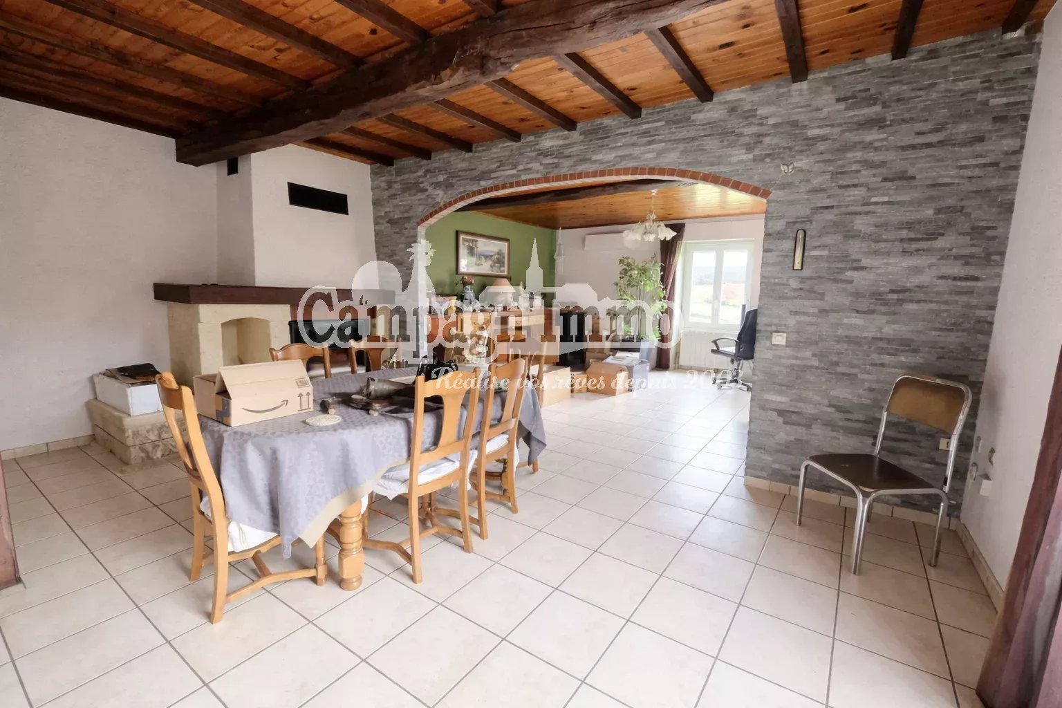 D’une surface d’environ 130 m² sur deux niveaux, il comprend une cuisine, un séjour avec cheminée insert, une salle d’eau, deux grandes chambres et un vaste espace à l’étage offrant des possibilités d’aménagement.