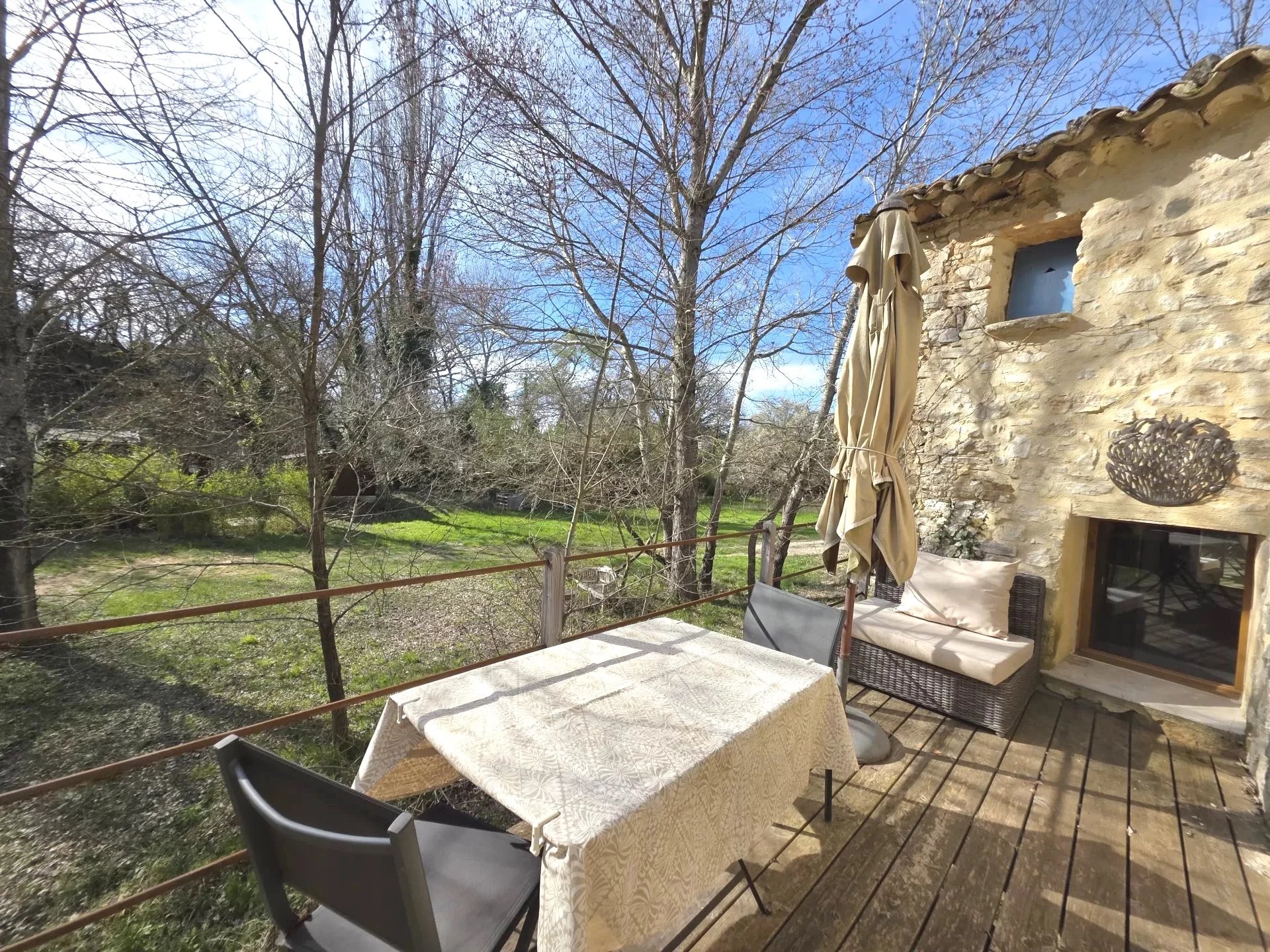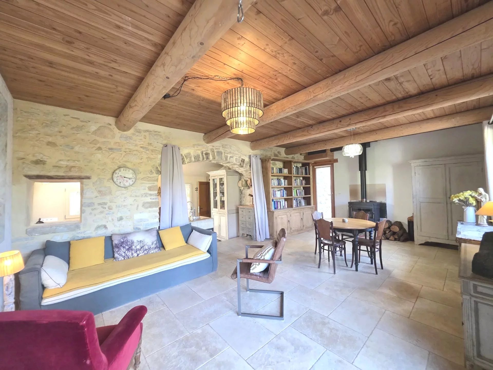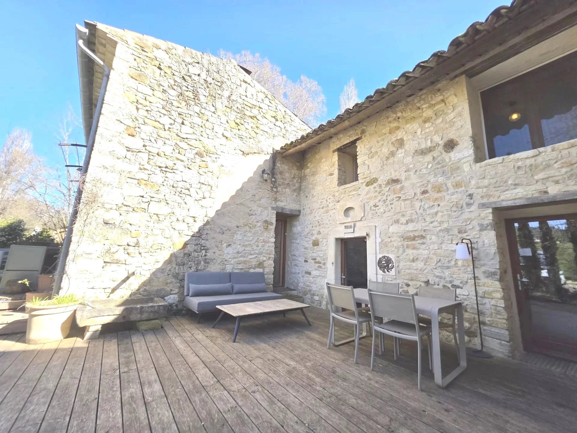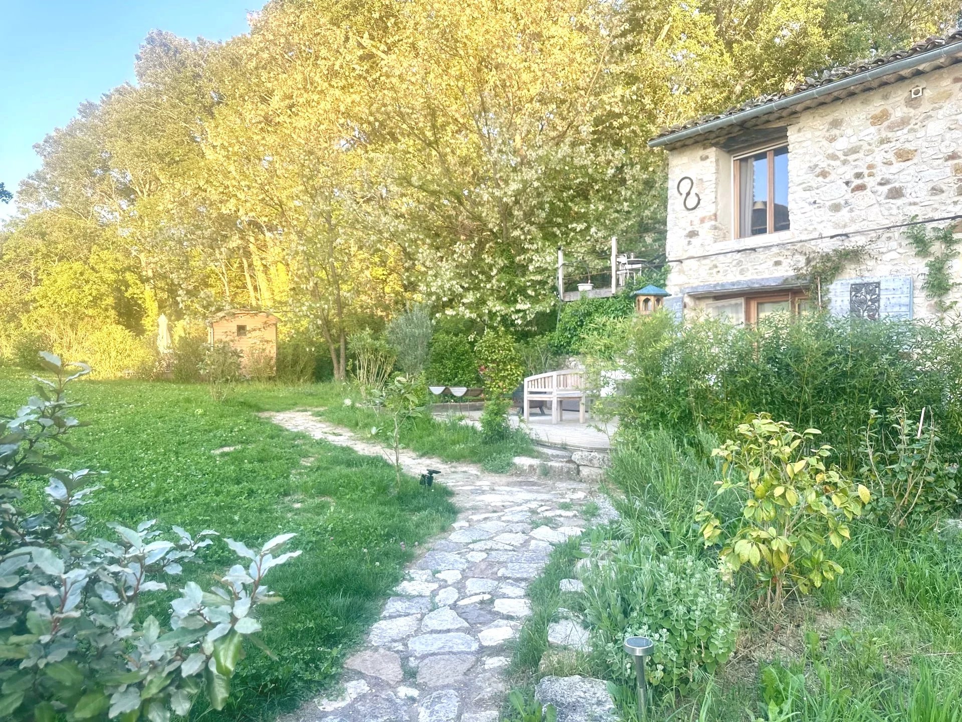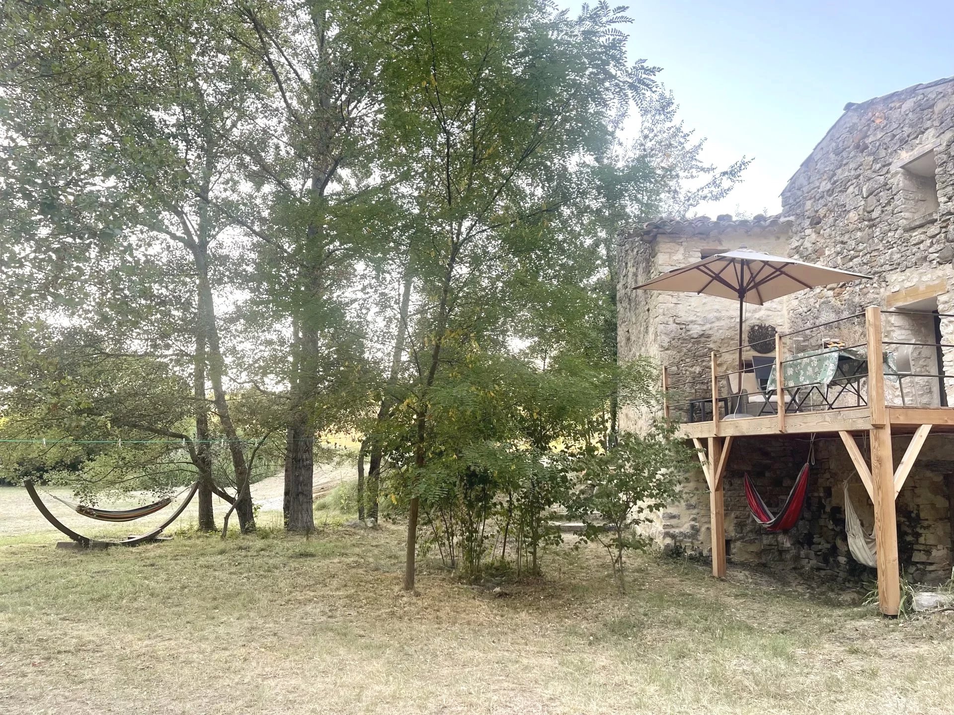 Dans le Parc naturel régional du Luberon, à 10 km d’Apt, découvrez cette belle maison en pierre ancienne entièrement rénovée (années 2010), posée sur un terrain arboré de 8000 m² avec source dans laquelle il est possible de ce rafraichir l'été et un ruisseau à Rustrel (petit village plein de charme), porte d'entrée du Colorado Provençal. Le cachet de la pierre, la vue sur les monts du Vaucluse et la modularité des espaces en font un bien rare qui peut être utilisé comme résidence principale, maison de vacances ou investissement type gîte et chambres d’hôtes. La maison principale dispose d'une pièce de vie agréable ouvrant sur deux terrasses avec une belle vue sur les Monts de Vaucluse, d'une cuisine semi-ouverte et équipée donnant sur une terrasse plein sud (côté forêt), ainsi que d'un salon secondaire avec kitchenette et une chambre de plain pied avec terrasse, une douche aménagée dans un ancien pigeonnier et un toilette indépendant. L'étage quant à lui dispose de trois chambres (dont une avec toilettes privatives et point d’eau), d'une salle de bain avec douche et baignoire, de toilettes séparés et d'un dressing. Deux des chambres de la maison principale bénéficient d’une terrasse privative avec un accès direct de l'extérieur. Actuellement divisible en gîte indépendant (séjour + coin cuisine, chambre au rez-de-chaussée et deux chambres à l’étage); le reste demeure privatif. L’ensemble de la maison principale est modulable selon vos projets. Sur le terrain vous serez charmés par deux cocons supplémentaires permettant d'ajouter deux chambres supplémentaires à la maison principale. Vous trouverez une roulotte toute équipée comprenant un coin nuit, une douche, une kitchenette et une terrasse. Et un chalet indépendant type studio, disposant d'un espace chambre, d'un coin cuisine, d'une douche, d'une belle terrasse et de toilettes sèches. Ces hébergements sont idéaux pour les amis, la famille ou de la location insolite. Cette maison saura vous séduire par son charme, sa vue dégagée, ses multiples expositions et son usage flexible au pied du Colorado provençal.