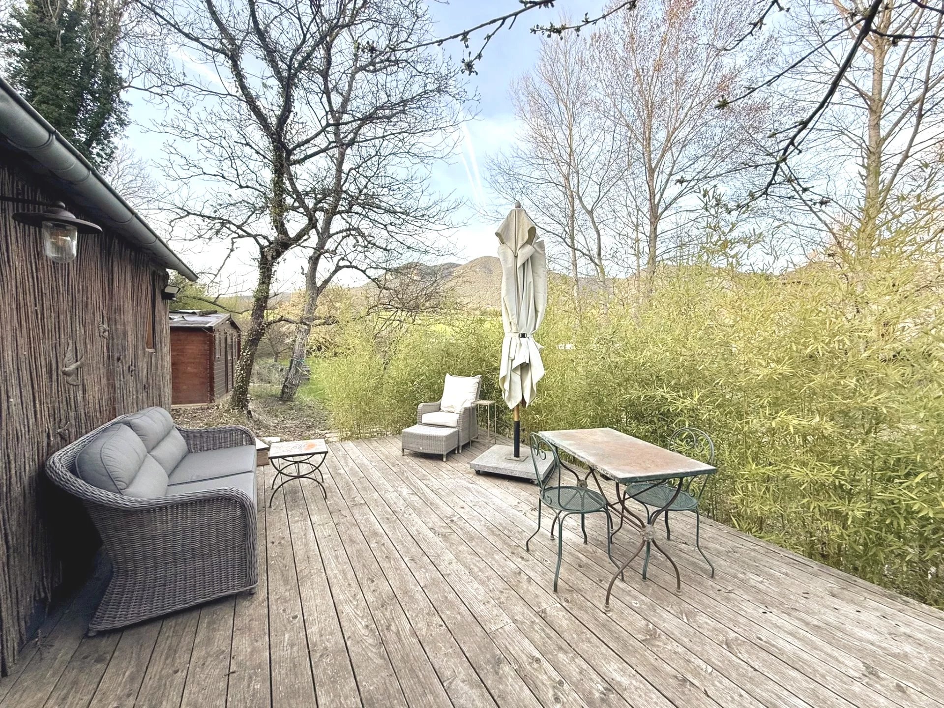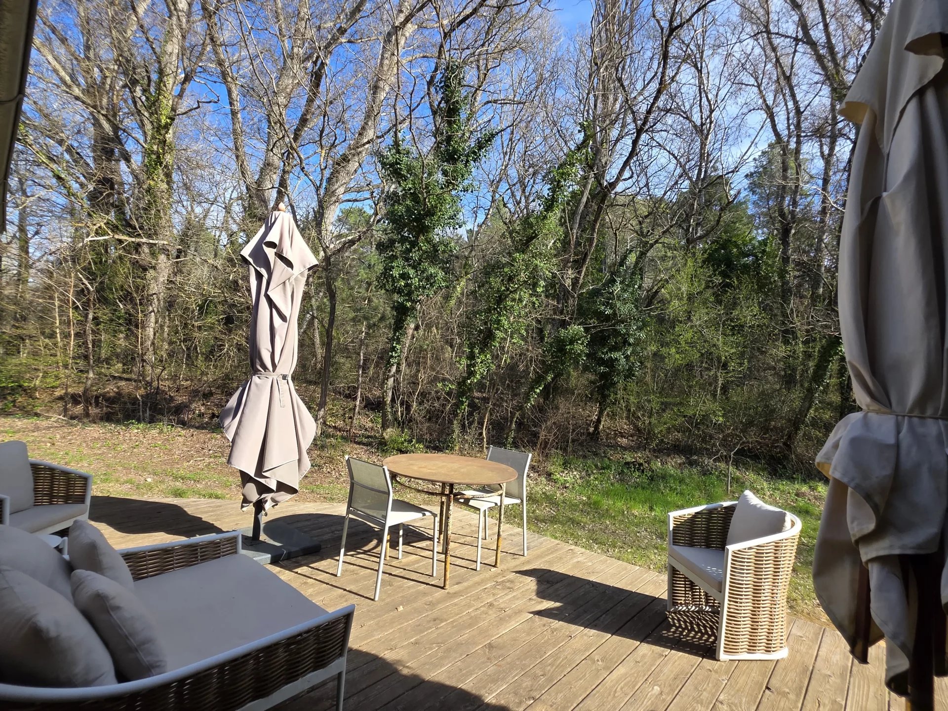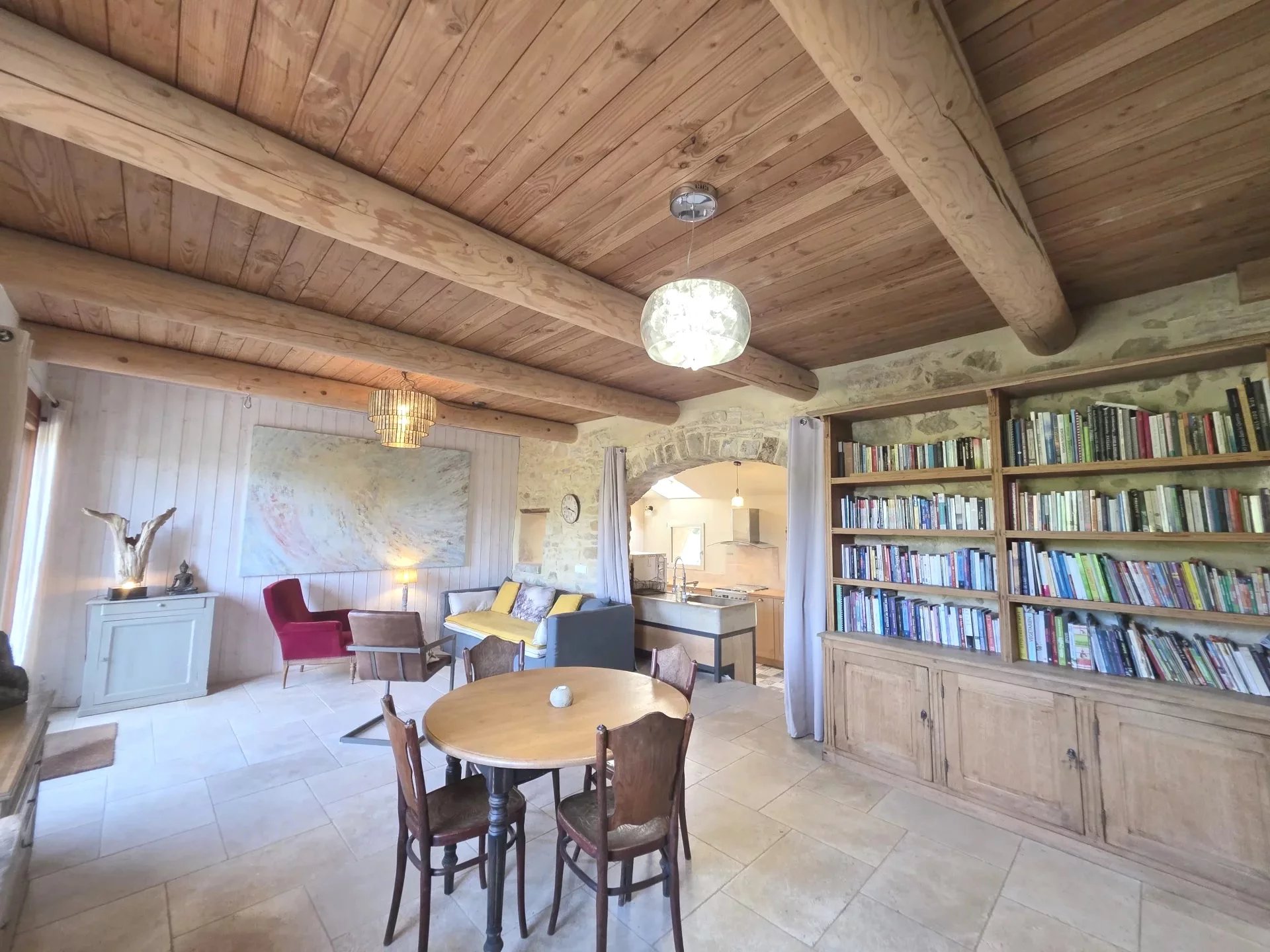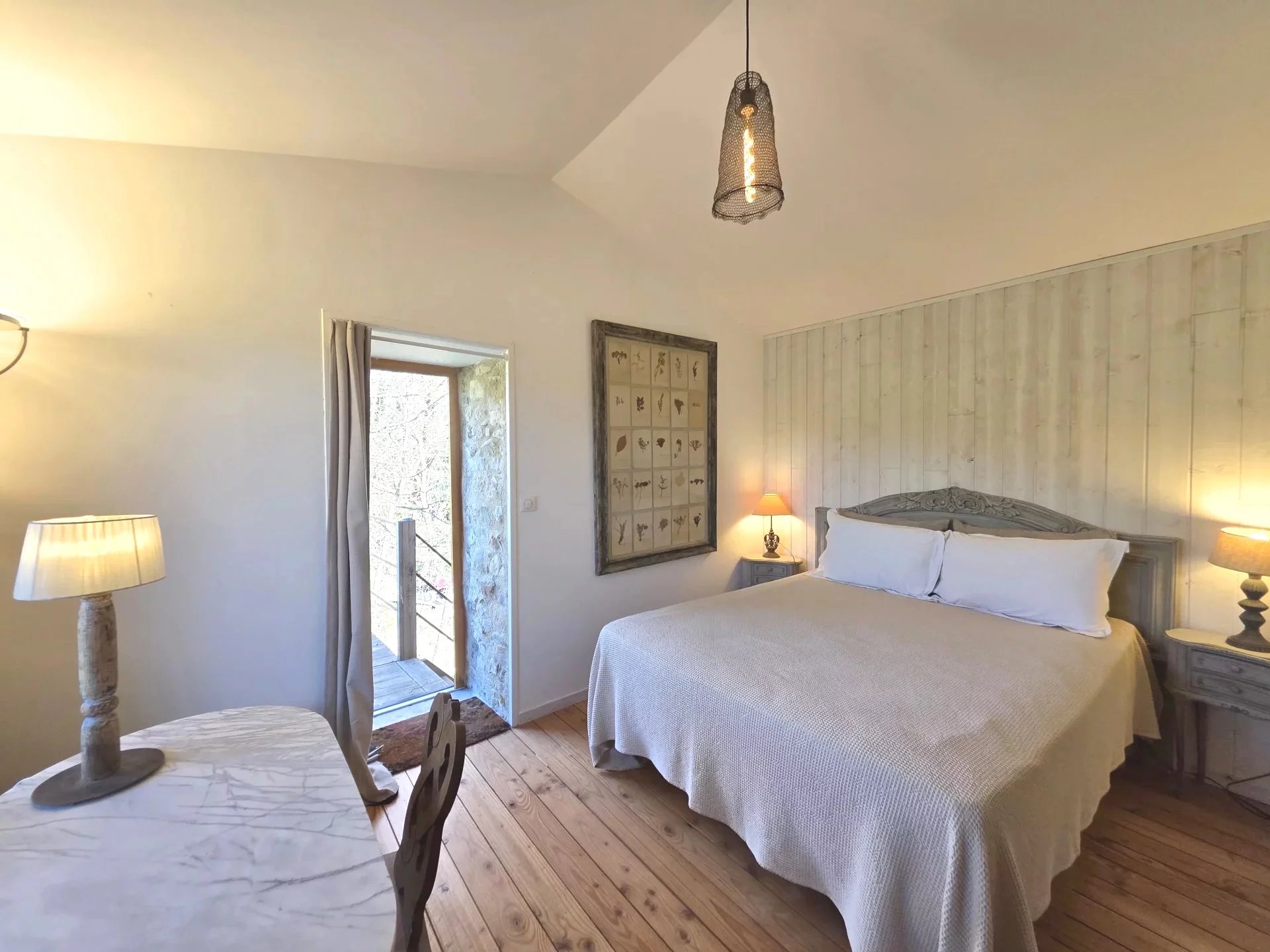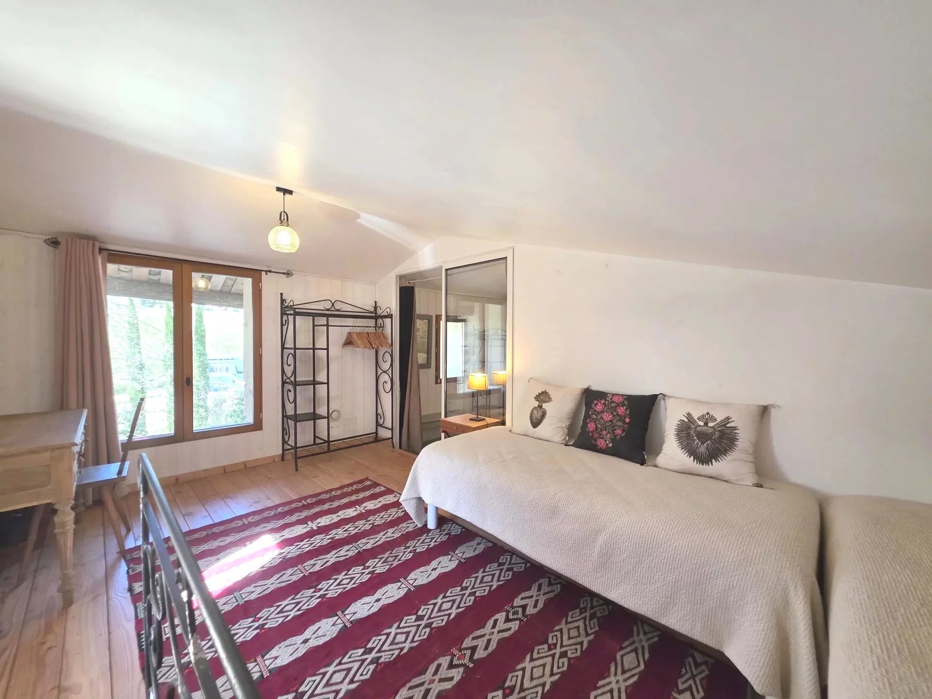 Dans le Parc naturel régional du Luberon, à 10 km d’Apt, découvrez cette belle maison en pierre ancienne entièrement rénovée (années 2010), posée sur un terrain arboré de 8000 m² avec source dans laquelle il est possible de ce rafraichir l'été et un ruisseau à Rustrel (petit village plein de charme), porte d'entrée du Colorado Provençal. Le cachet de la pierre, la vue sur les monts du Vaucluse et la modularité des espaces en font un bien rare qui peut être utilisé comme résidence principale, maison de vacances ou investissement type gîte et chambres d’hôtes. La maison principale dispose d'une pièce de vie agréable ouvrant sur deux terrasses avec une belle vue sur les Monts de Vaucluse, d'une cuisine semi-ouverte et équipée donnant sur une terrasse plein sud (côté forêt), ainsi que d'un salon secondaire avec kitchenette et une chambre de plain pied avec terrasse, une douche aménagée dans un ancien pigeonnier et un toilette indépendant. L'étage quant à lui dispose de trois chambres (dont une avec toilettes privatives et point d’eau), d'une salle de bain avec douche et baignoire, de toilettes séparés et d'un dressing. Deux des chambres de la maison principale bénéficient d’une terrasse privative avec un accès direct de l'extérieur. Actuellement divisible en gîte indépendant (séjour + coin cuisine, chambre au rez-de-chaussée et deux chambres à l’étage); le reste demeure privatif. L’ensemble de la maison principale est modulable selon vos projets. Sur le terrain vous serez charmés par deux cocons supplémentaires permettant d'ajouter deux chambres supplémentaires à la maison principale. Vous trouverez une roulotte toute équipée comprenant un coin nuit, une douche, une kitchenette et une terrasse. Et un chalet indépendant type studio, disposant d'un espace chambre, d'un coin cuisine, d'une douche, d'une belle terrasse et de toilettes sèches. Ces hébergements sont idéaux pour les amis, la famille ou de la location insolite. Cette maison saura vous séduire par son charme, sa vue dégagée, ses multiples expositions et son usage flexible au pied du Colorado provençal.