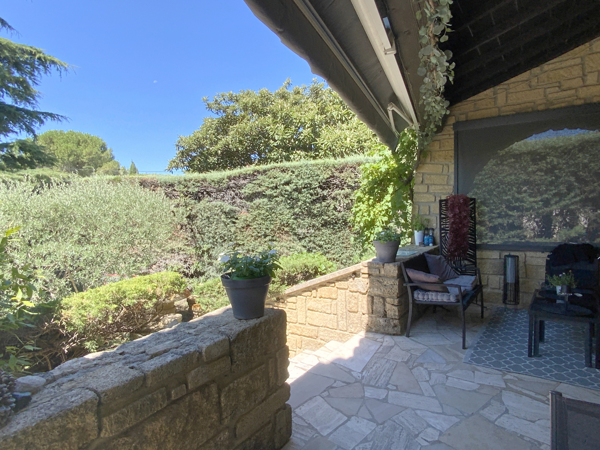 L'agence Sindy Micots Immobilier vous propose à Uzès, une villa de 150 m2 sur un terrain arboré de 1434 m2 avec piscine. Cette maison de construction traditionnelle de plain pied bénéficie d'un très bel ensoleillement qui illumine chaque pièce. Une pièce de vie entièrement ouverte sur l'exterieur avec accès sur la terrasse, cheminée et climatisation gainable. Une spacieuse cuisine équipée. 3 belles chambres avec placards, se partagent une grande salle de bains avec baignoire et douche ainsi qu'une seconde salle d'eau .Une buanderie et une pièce pour du rangement complètent les espaces de la maison. Une chambre d'appoint se trouve dans la tour de la maison à l'étage avec un accès aux combles aménageables. Portail automatique, adoucisseur, arrosage automatique, abri voiture,