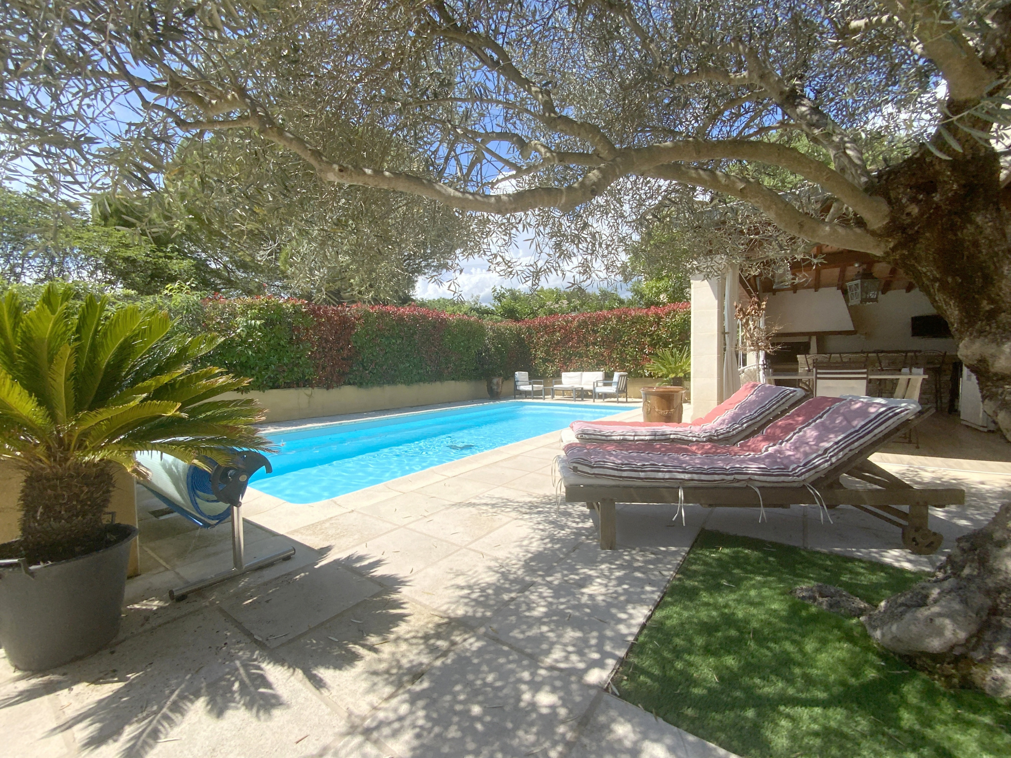 A quelques minutes d'Uzès, l'agence Sindy Micots Immobilier vous propose dans un environnement au calme et dans un village avec commodités, une villa cossue implantée sur un terrain de près de 1700 m2 paysagé avec piscine et pool house. Conçue de façon traditionnelle avec des materiaux de qualité, cette maison bénéficie de beaux volumes. En rez de chaussée, les espaces de vie perçoivent une lumière sud/est et un accés direct sur l'exterieur permet de profiter de belles terrasses. Une suite parentale composée d'un dressing et d'une salle d'eau, ainsi qu'un spacieux bureau. A l'étage, une chambre avec salle d'eau, ainsi qu'une grande salle de jeux, pouvant devenir une chambre. En empruntant un accès exterieur, un appartement indépendant d'environ 60m2. 2 garages, buanderie. Portail automatique, visiophone, fibre, pompe à chaleur,terrain de pétanque...